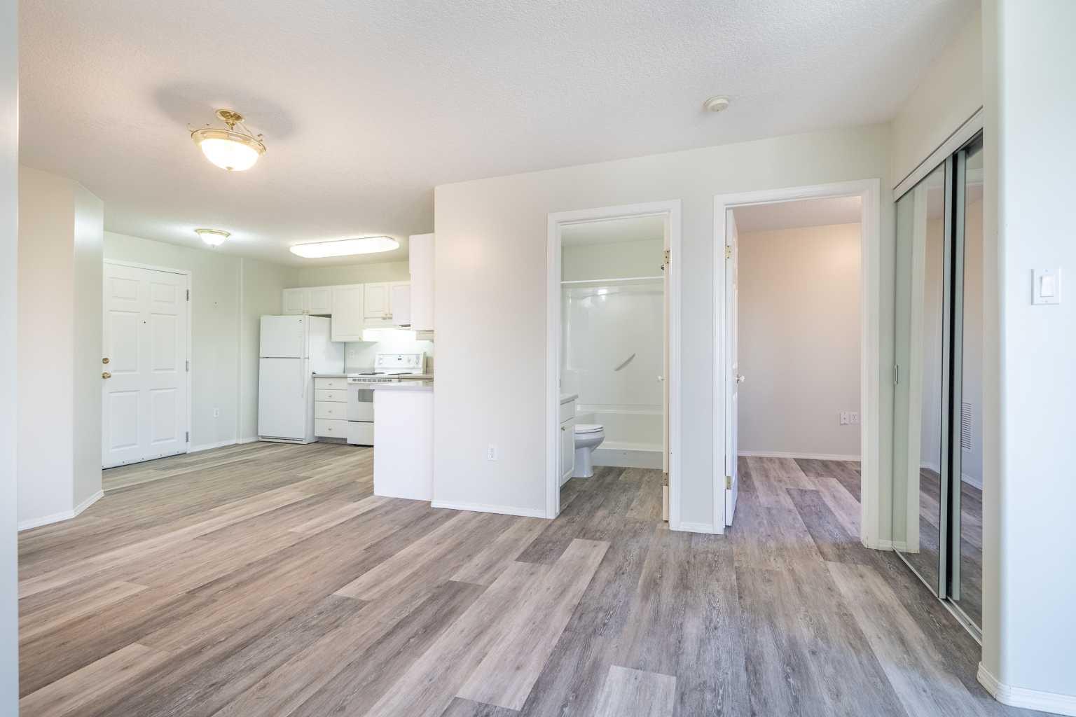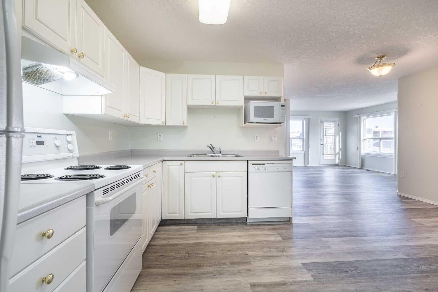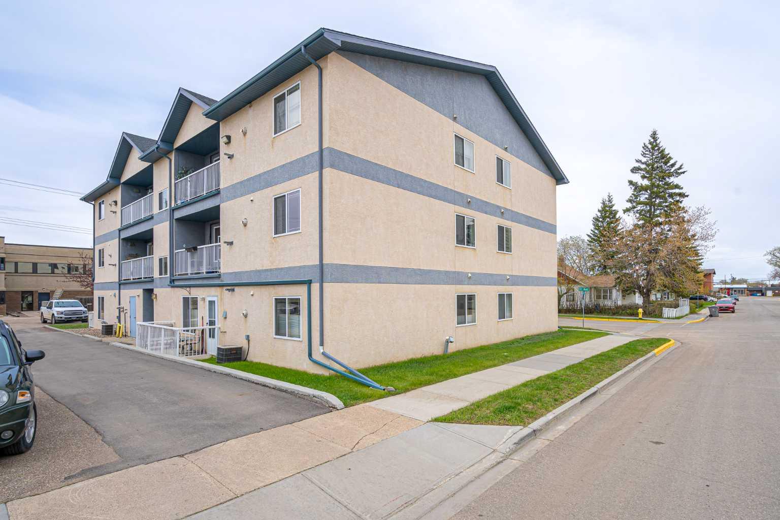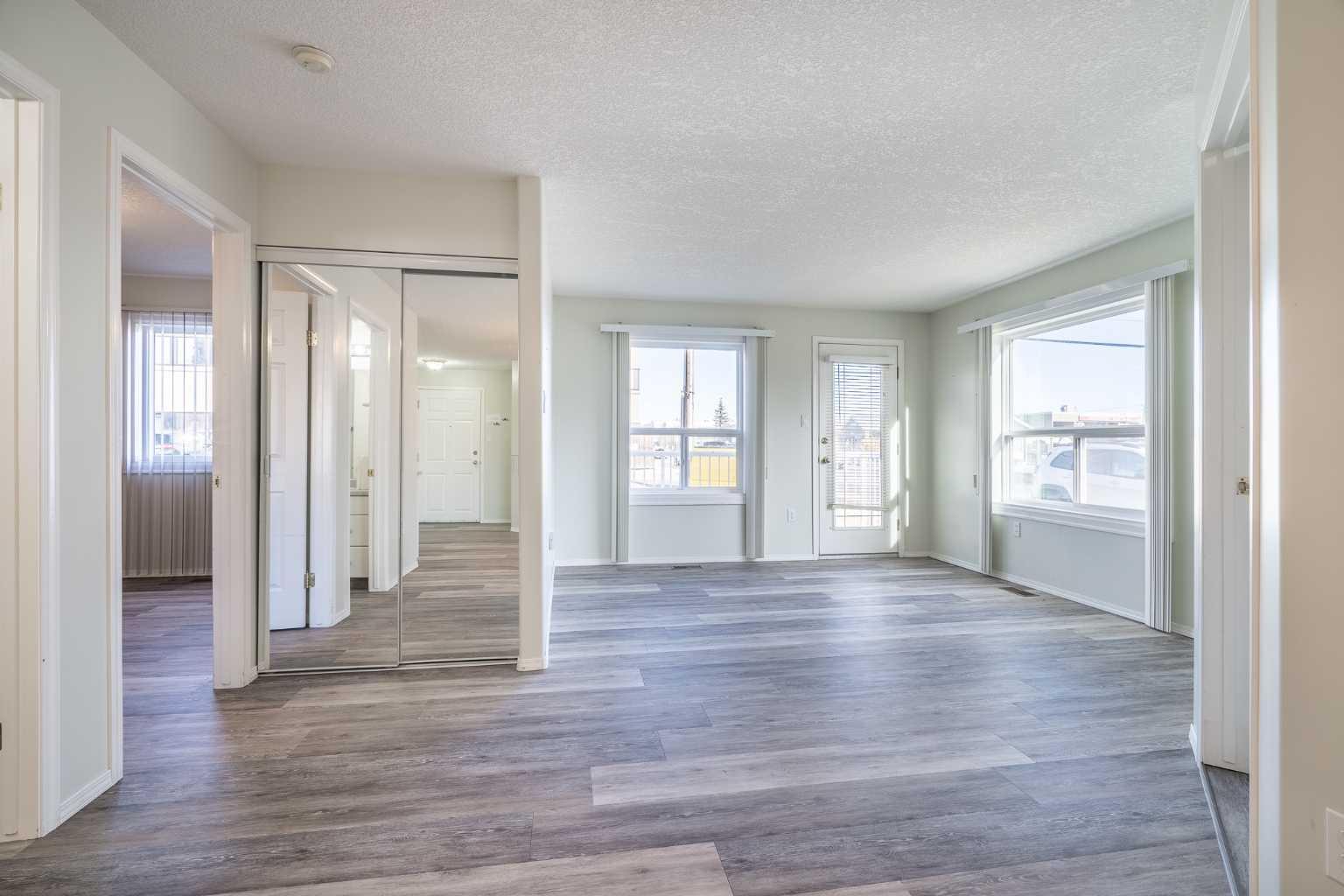 If affordability is what you are looking for, then look no further than this immaculate main floor condo!! You will have NO STAIRS to be able to access this unit, making it a great option for anyone who is mobility challenged. The unit comes with one parking stall which is clearly visible from the grade level balcony which faces north. There is an abundance of windows in this unit which floods the interior space with natural light. Newer vinyl plank flooring makes cleaning and caring for this unit especially easy- in this unit you have two bedrooms, one bathroom and an open concept living room, dining room and kitchen. There is no age restriction in this building as a bylaw amendment was initiated making this exceptional unit available for purchase by both new home owners and empty nesters alike!!