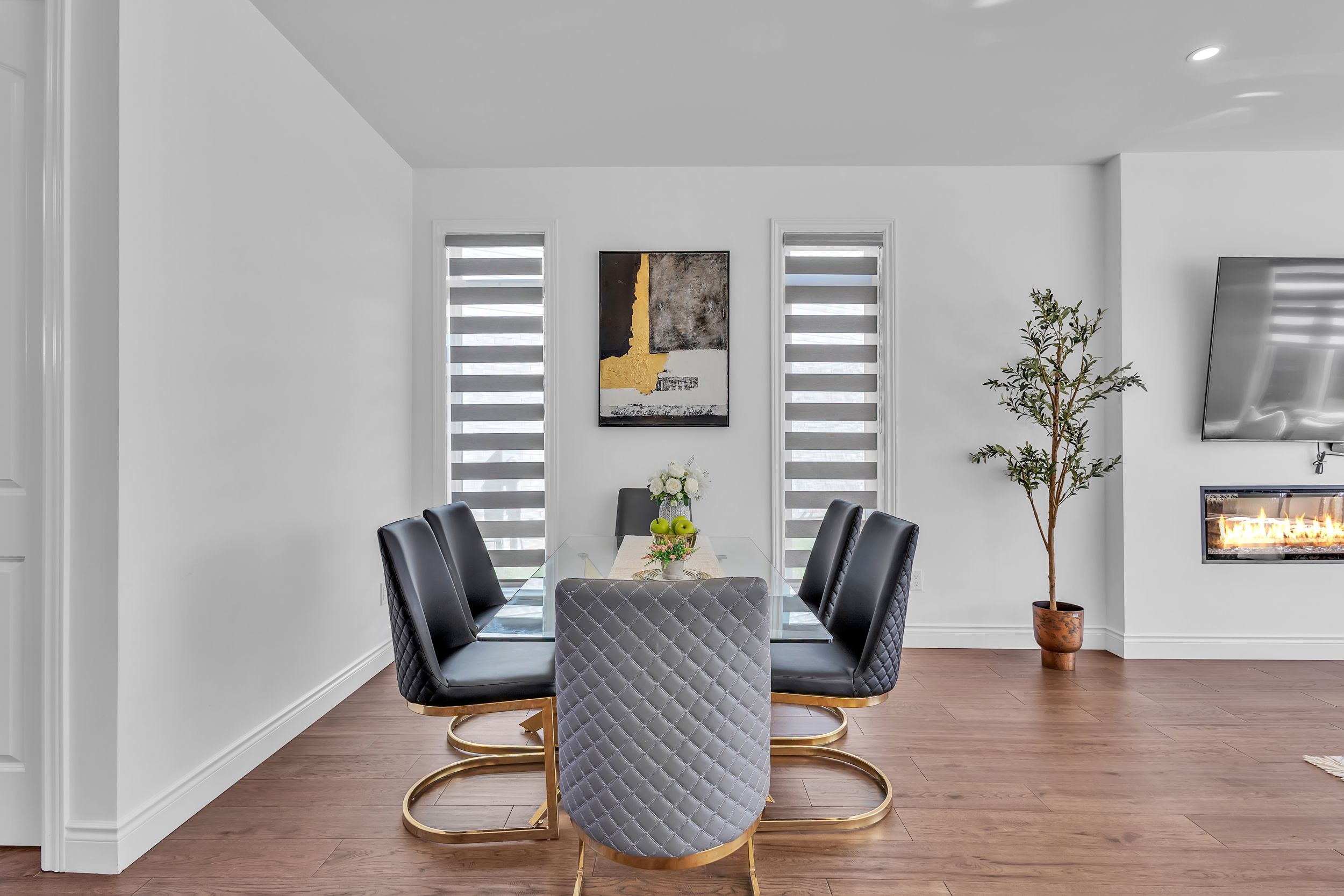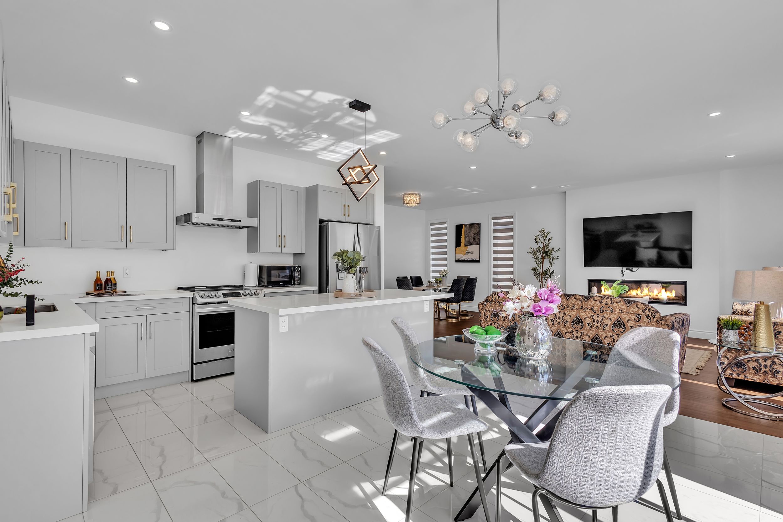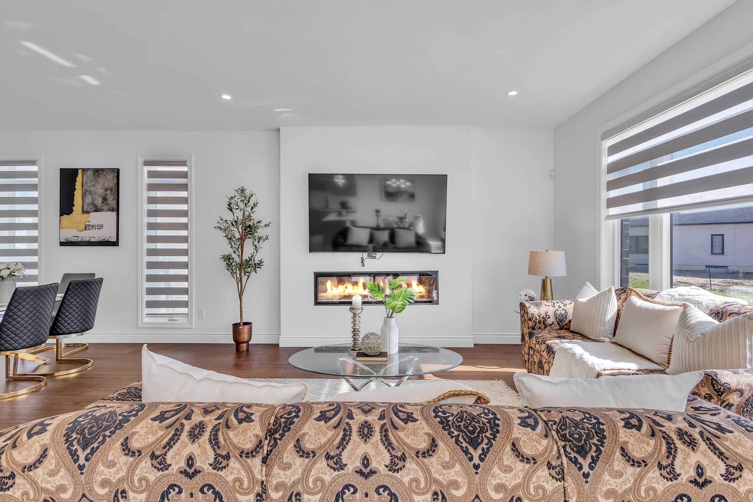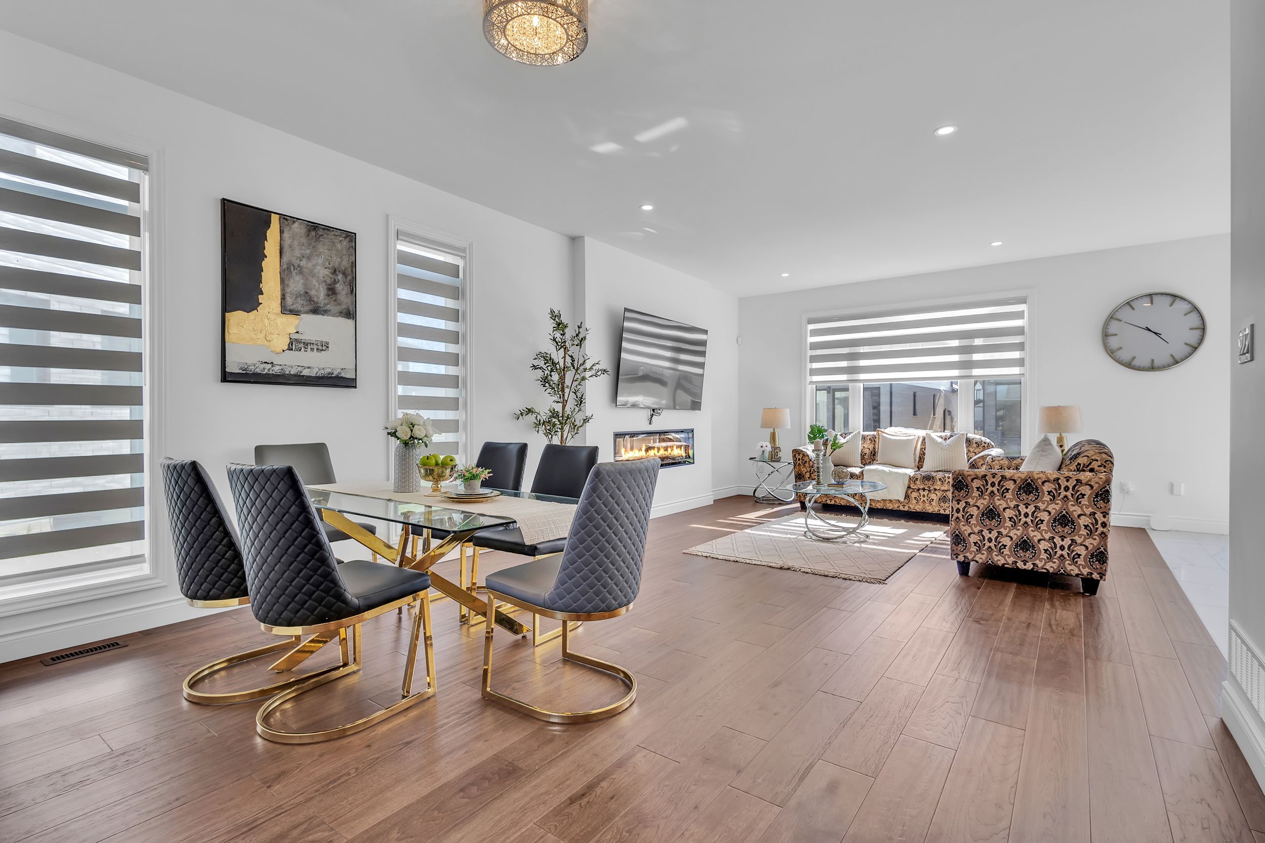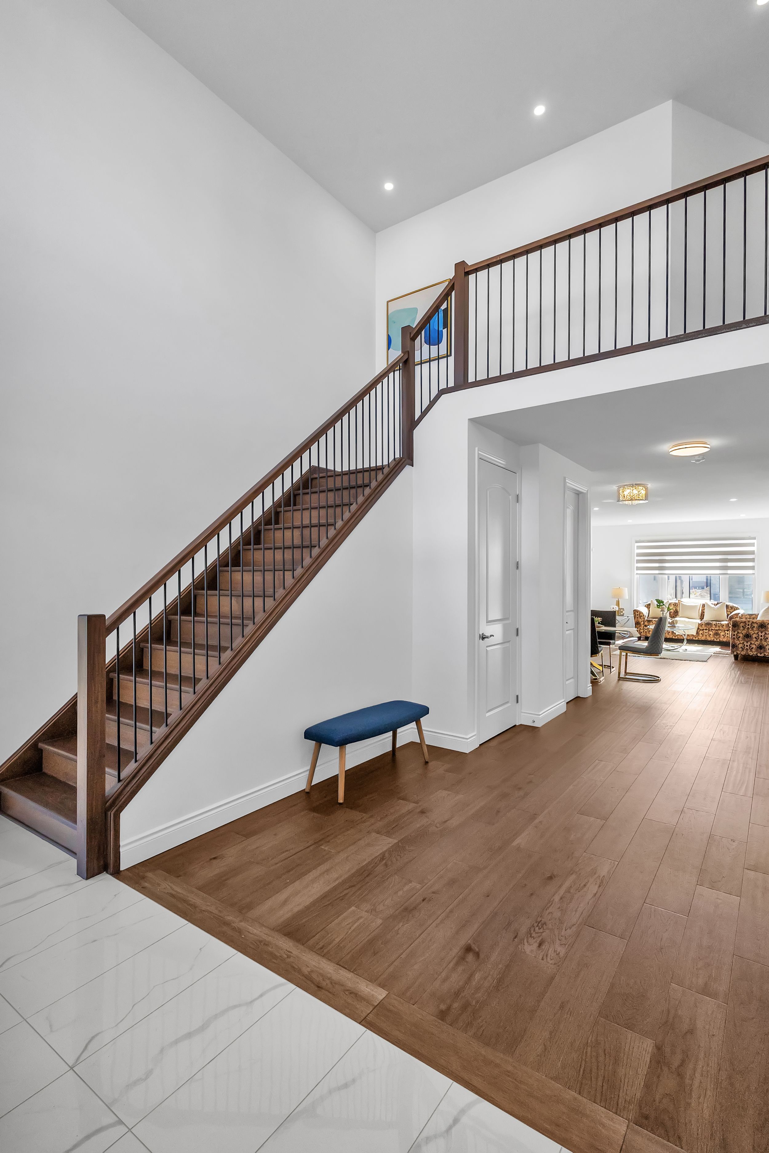 室内采用开放式主层设计,9英尺挑高天花板、工程实木地板、超大窗户、筒灯照明一应俱全,配有电动壁炉的舒适客厅堪称聚会理想之选。厨师级厨房配备石英台面、定制橱柜、不锈钢电器及底柜照明系统。全屋安装高端卷帘,兼顾格调与私密性。二层主卧套房配备步入式衣帽间及水疗风格套间浴室,卧室2与3共享Jack & Jill双门浴室,卧室4则享有独立套卫。未装修地下室设有合法独立侧门,为未来出租收入或姻亲套房提供绝佳改造空间。双车位车库及总计六车位泊车配置,为这处伦敦顶级社区的非凡物业锦上添花。