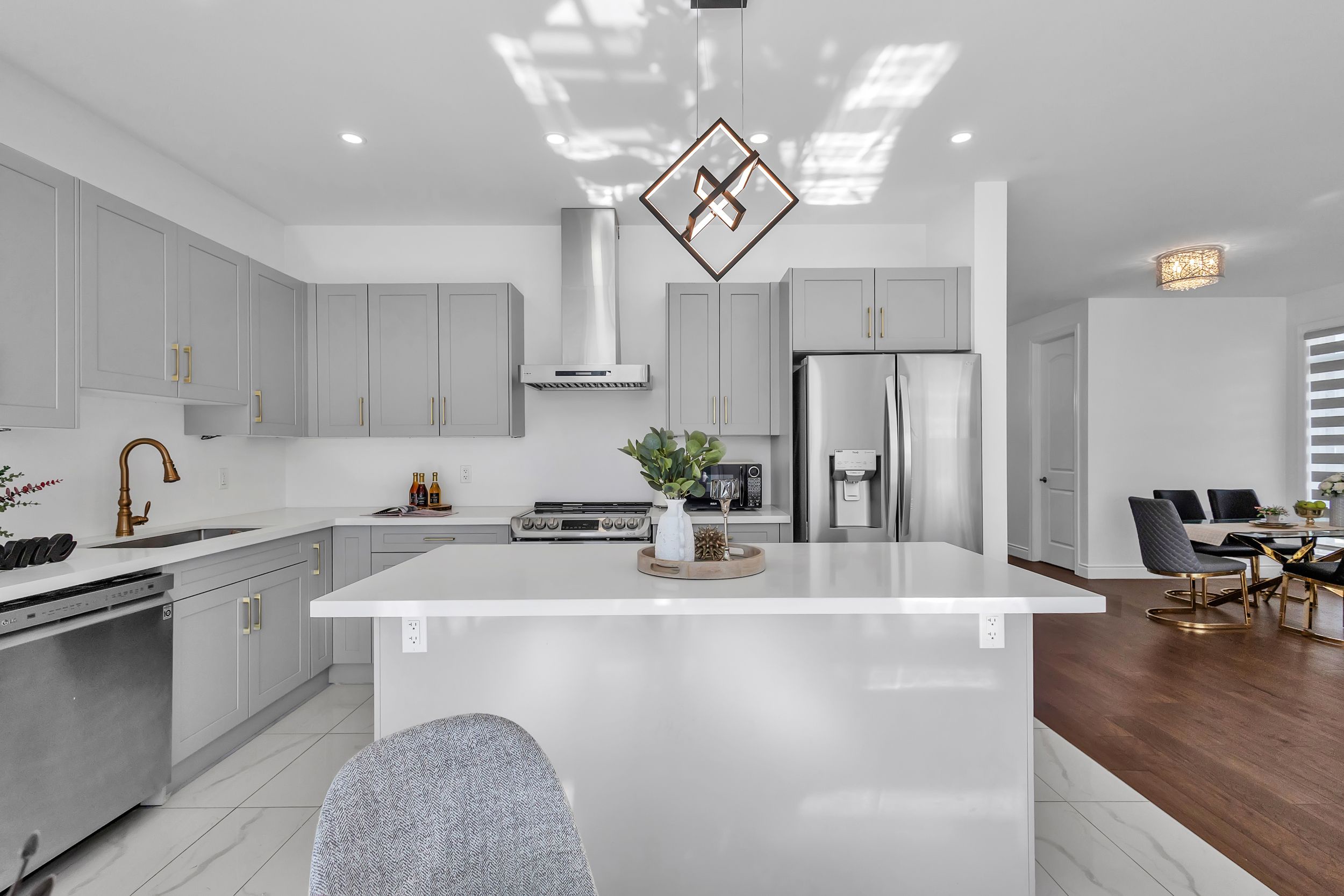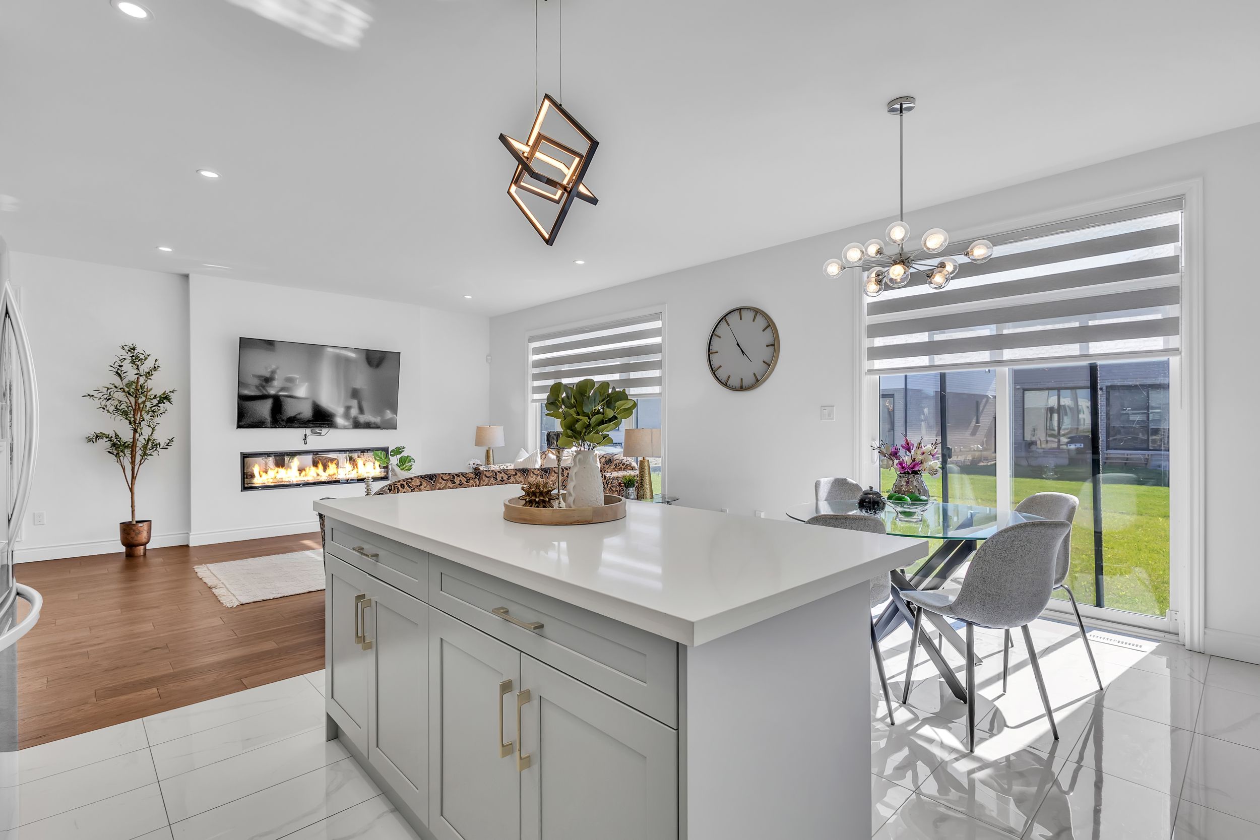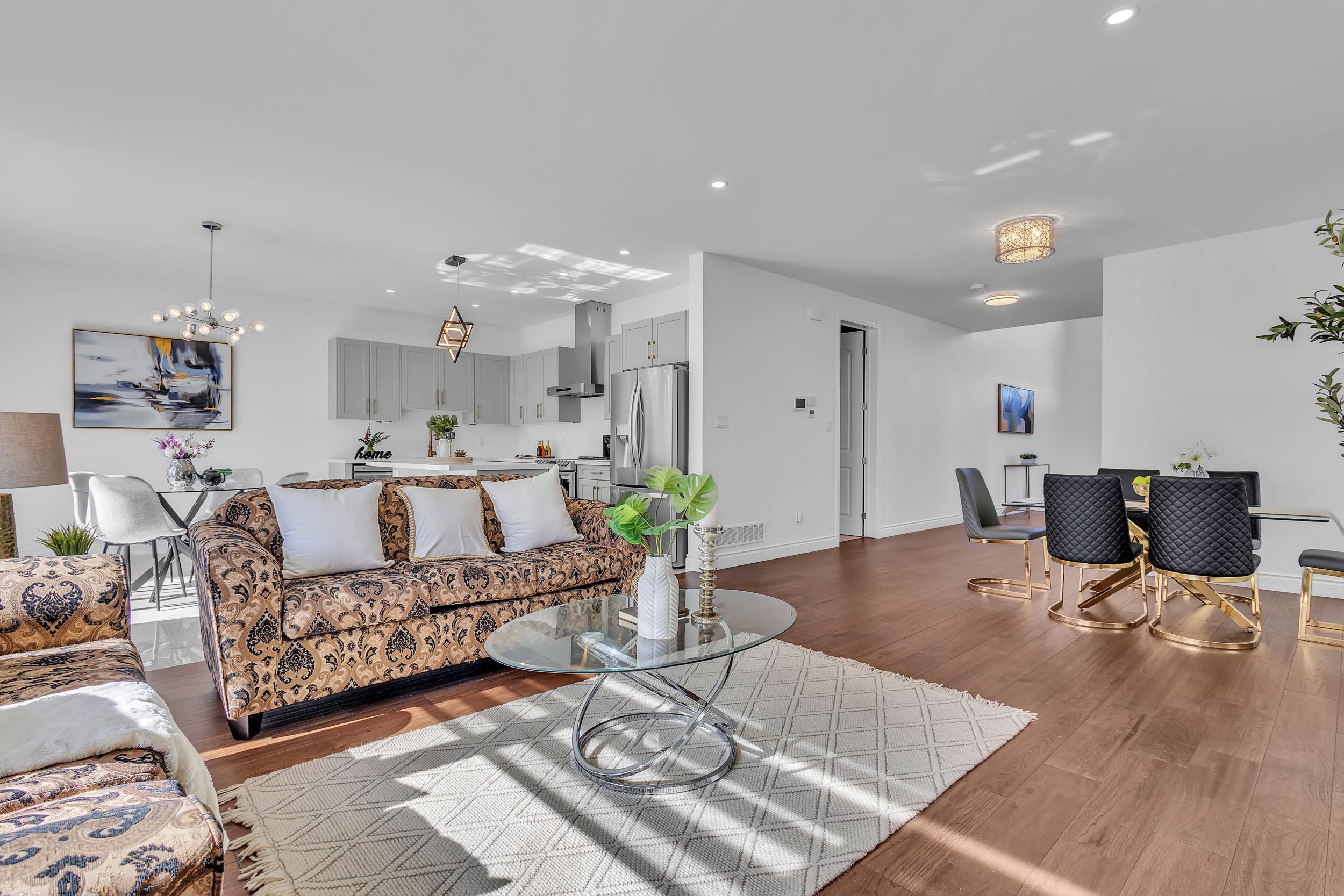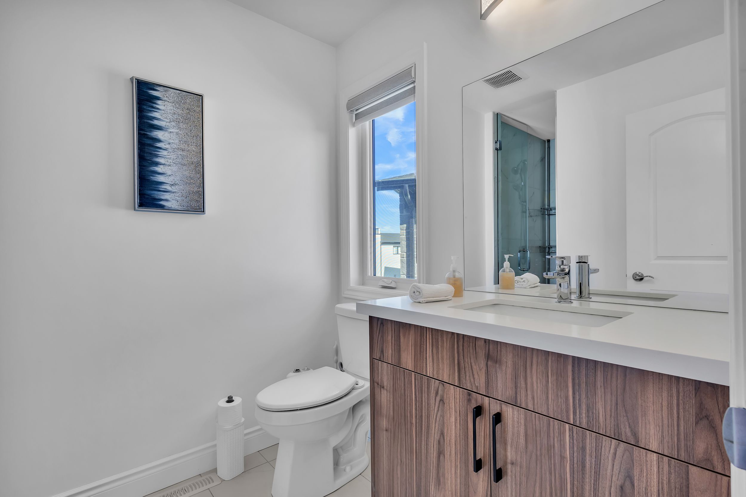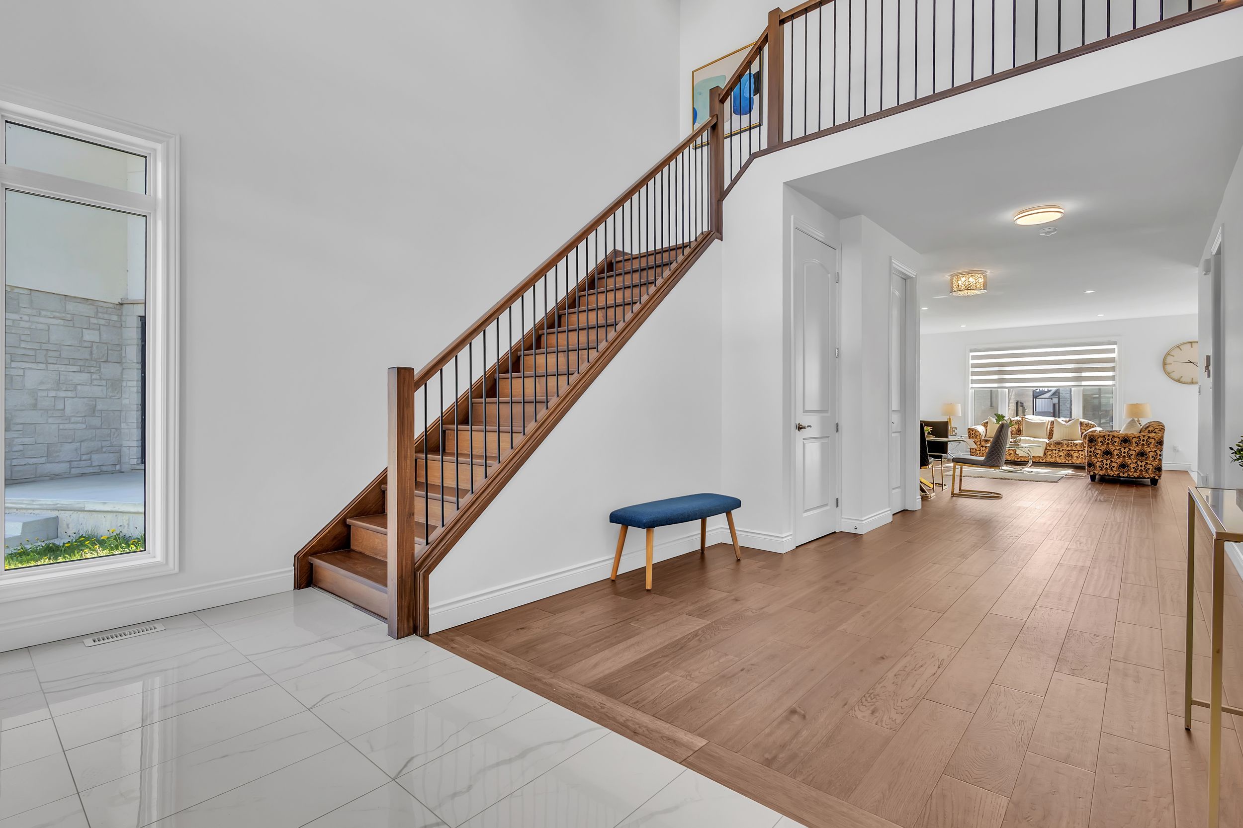 室内采用开放式主层设计,9英尺挑高天花板、工程实木地板、超大窗户、筒灯照明一应俱全,配有电动壁炉的舒适客厅堪称聚会理想之选。厨师级厨房配备石英台面、定制橱柜、不锈钢电器及底柜照明系统。全屋安装高端卷帘,兼顾格调与私密性。二层主卧套房配备步入式衣帽间及水疗风格套间浴室,卧室2与3共享Jack & Jill双门浴室,卧室4则享有独立套卫。未装修地下室设有合法独立侧门,为未来出租收入或姻亲套房提供绝佳改造空间。双车位车库及总计六车位泊车配置,为这处伦敦顶级社区的非凡物业锦上添花。