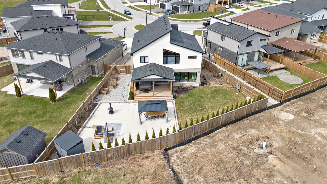 A rare opportunity to own an architecturally striking executive home in one of North Londons most sought-after communities. Set on a premium pie-shaped lot, 2211 Wateroak Drive is a statement of modern elegance, offering a seamless blend of design, comfort, and exclusivity. Floor-to-ceiling windows flood the open-concept main level with natural light, enhancing the airy sophistication of this custom-built residence. A chefs kitchen anchors the heart of the home, featuring high-grade quartz countertops, a waterfall island, upgraded cabinetry, a walk-in pantry, and a dedicated coffee and bar area. The seamless flow between the dining, living, and outdoor spaces makes this home ideal for both grand entertaining and intimate evenings. A striking fireplace with a ceramic tile surround creates a dramatic focal point, while light oak engineered hardwood flooring extends throughout, adding warmth and refinement.The second level is equally breathtaking, with soaring 19-foot vaulted ceilings in the loft, easily convertible into an additional bedroom. Double doors lead to the serene primary suite, complete with an expansive walk-in closet and spa-like ensuite featuring a freestanding tub, oversized glass shower with pebble stone flooring, and a quartz double vanity. Two additional bedrooms, a four-piece bath, and a second-floor laundry room complete the upper level.Designed for outdoor enjoyment, the landscaped backyard is a private retreat. A covered deck extends to a meticulously crafted oasis with stamped concrete, a jacuzzi, custom vegetable boxes, and lush cedars for added privacy. The oversized insulated garage provides ample space, while the unspoiled basement with 9-foot ceilings and oversized windows presents limitless potential. Just minutes from Masonville Place, top-rated schools, and the serene trails of Medway Valley Heritage Forest, this is an exclusive offering in a prime location that seldom becomes available.
