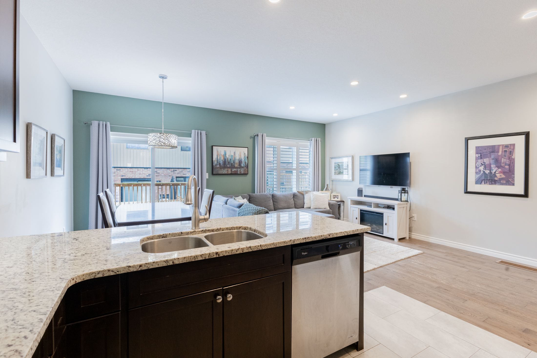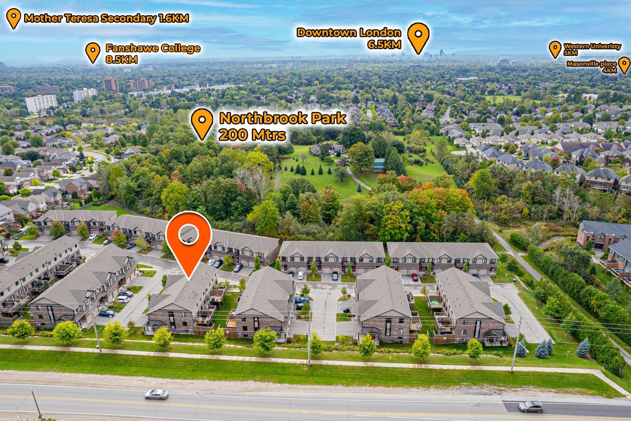 SPECTACULAR WALK-OUT TOWNHOUSE IN SOUGHT AFTER NORTH LONDON NEIGHBORHOOD / BEST PRICE IN COMPLEX! The generous space in this 3+1 bedroom/4 bathroom townhome will surprise you, from the open-concept main level below 9 ft ceilings to the lower level walk-out & its separate entrance fostering obvious potential to be 4th sleeping area for in-laws, students back at home, etc. These young IRONSTONE-built luxury townhomes are a scarce offering, especially the WALK-OUT units w/ the separate entrance below your large sun-deck. This rare opportunity will get you into one of the best units in the complex w/ enhanced privacy tucked away from Sunningdale Rd. Plus, the principal rooms (main level living/kitchen/dining leading to large balcony/sun-deck & the walk-out family room in lower level) facing west is ideal for sunsets & an abundance of natural light. The overall layout in this modern 5 level home is brilliant. Everyone has their own space! Upon entry through the garage or front door, theres a roomy foyer w/ coat closet & powder room. Up a few steps is the open concept main level. Next level up is a generous master bedroom w/ walk-in closet & a stunning ensuite bath w/ glass & tile shower + laundry facilities. On the top floor, you get 2 more generous bedrooms + a 4pc/2 ROOM bathroom (ideal for kids w/ the toilet/shower in one room & sink in the other). Then, the walk-out ground level w/ its separate entrance & full bath w/ tile surround & a drop-in tub is worthy of another reminder that this could serve as an ideal suite for the in-laws or kids returning home. Finally, you get 1 more level in the basement offering ample storage space. All this, yet youre still just minutes to ALL of your shopping needs in North London/Masonville, schools, parks, Stoney Creek Community Centre/YMCA & other community amenities + youre not far to Western University or Fanshawe College & the buses will pick up your students just around the corner from this family/pet friendly home!