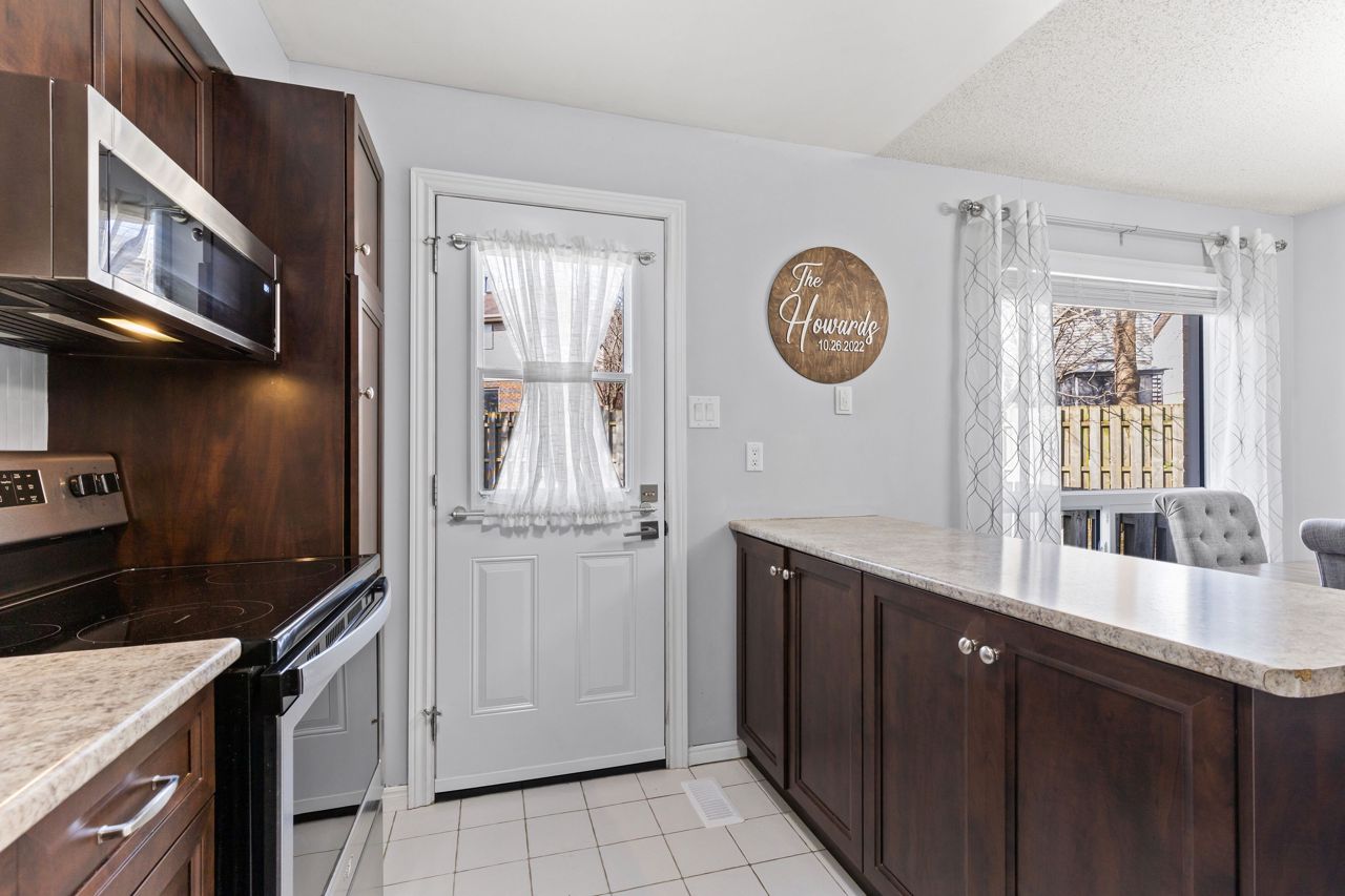Welcome to this beautifully updated unit in desirable North London. Situated in a quiet corner of the complex this end unit boasts 3 spacious bedrooms, 2.5 Bathrooms and a finished basement. Enter through the front door into the generous open concept main level featuring bright living room with electric fireplace; dining area; convenient 2-piece bathroom; and updated kitchen with peninsula and breakfast bar with direct access to the rear patio. The upper level haas 3 bedrooms and updated main bathroom. The finished lower level has spacious family room with gas fireplace, 3-piece bathroom and large utility/storage room. This unit has been well maintained and has updated flooring throughout (2020); fridge, dishwasher, OTR Microwave (2020); furnace and A/C with new heat pump system (2023); new sump pump with backup battery (2021); roof shingles (2020). Don't miss out! Situated close to shopping, restaurants and LTC.
