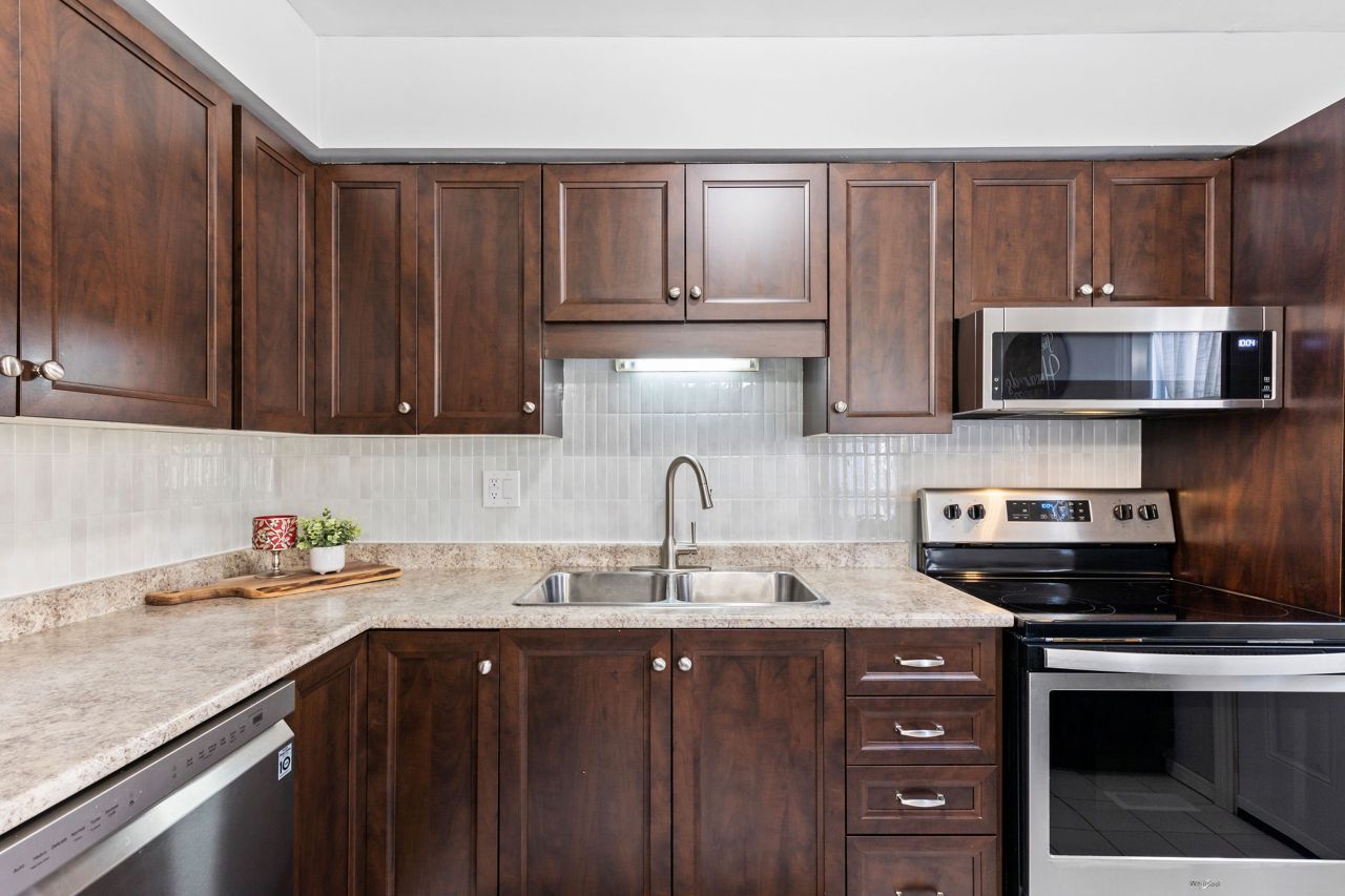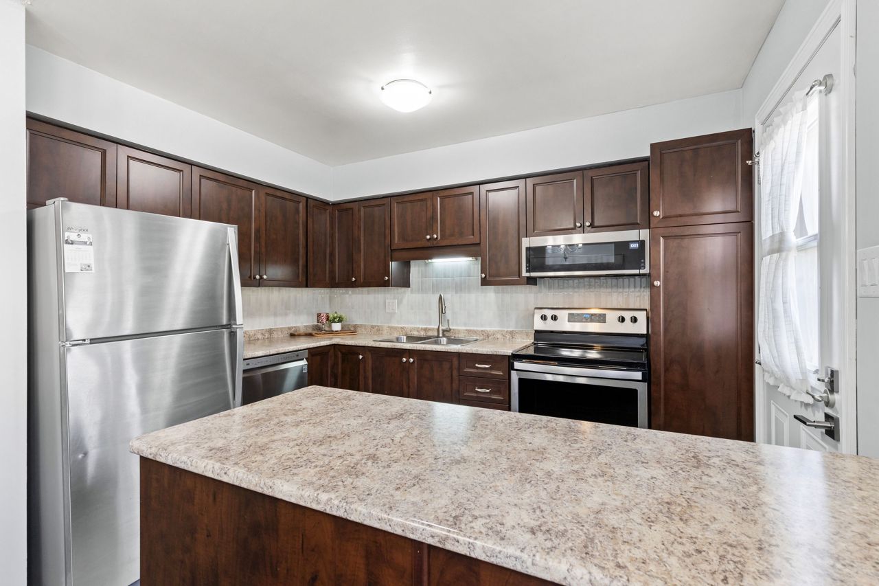 欢迎来到这间位于令人向往的北伦敦地区的精美翻新单元。这套位于小区静谧角落的边户单元拥有3间宽敞卧室、2.5间浴室及装修完善的地下室。从前门进入,开放式主层空间开阔,设有带电子壁炉的明亮客厅、用餐区、便利的两件套卫生间,以及配备半岛式早餐吧的升级厨房,并直通后院露台。上层分布着3间卧室和翻新的主浴室。装修完善的地下室包含带燃气壁炉的宽敞家庭活动室、三件套卫生间及大型储物/设备间。该单元维护良好,全屋地板(2020年)、冰箱/洗碗机/微波炉(2020年)、配备新型热泵系统的暖通空调(2023年)、带备用电池的新污水泵(2021年)及屋顶沥青瓦(2020年)均已更新。毗邻购物中心、餐厅及LTC交通枢纽,机不可失!
