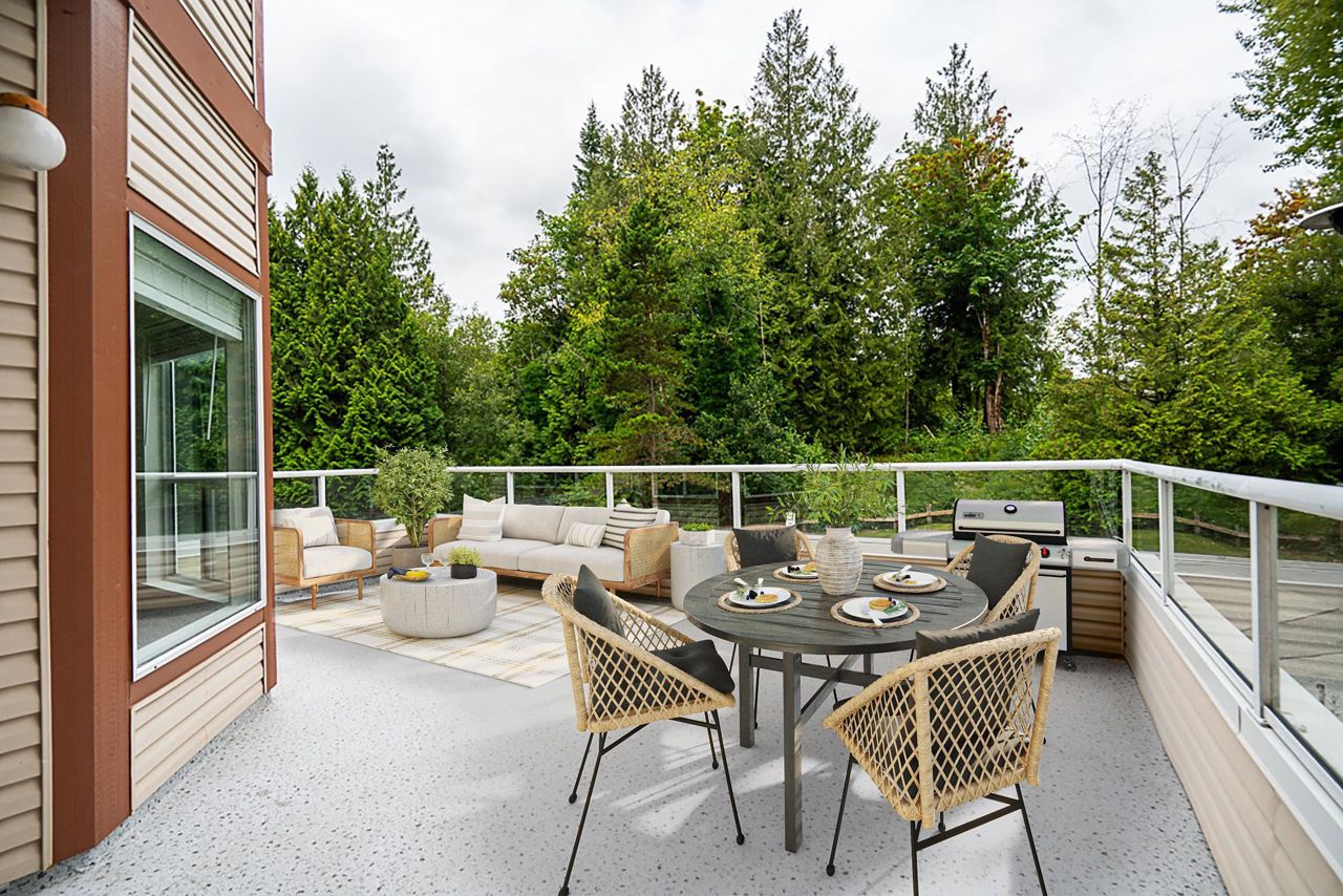 Easy living for the whole family! Over 2,200 sqft. of living space, 9'ft ceilings, and a two-car garage! Fully renovated, this 4-bed corner unit townhouse is perfect for big families or multigenerational living. West facing with tons of natural light and an incredible balcony! Brand new kitchen, bathrooms, floors, blinds, paint, and lighting! Primary bedroom overlooks green space with a walk-through closet + 4pc ensuite. TONS of storage space, gas fireplace & central vac. True laundry room with brand new washer & steam dryer. New front landscaping + low-maintenance turf! Located near schools, the West Coast Express Commuter Rail, shopping, & outdoor space. Among the largest homes at Stoneridge Estates, this is a perfect opportunity to settle into a welcoming, family-friendly community!