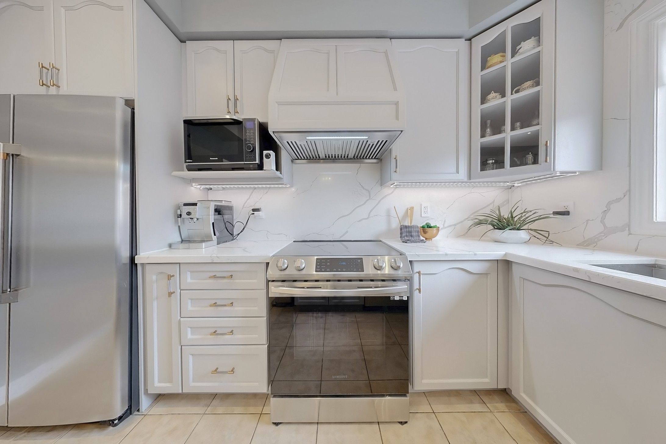 万锦市 Greensborough 区域中心地带的迷人住宅,这是一栋经过精美升级的 1,870 平方英尺的住宅,位于 Greensborough 区域内。这座明亮宽敞的住宅拥有全区硬木地板,配备石英台面的现代厨房,以及配有按摩浴缸和步入式衣帽间的主人套房。所有卫生间都配备定时排风扇。所有浴室台面均已升级 – 主人套间使用花岗岩,二楼第二个浴室使用石英。客卫于 2022 年全面翻新,包括新的马桶、灯具和梳妆台。专业装修的地下室包括一个大型休闲室、办公室和三件式卫生间,增加了生活空间的灵活性。这座可以随时入住的住宅配备了现代生活所需设施,包括全屋软水器和反渗透(RO)饮用水过滤系统,连接到厨房水槽和冰箱,为全区提供清洁、高品质的饮用水。除了住宅本身,地理位置同样令人印象深刻:步行 10 分钟可到达 Mount Joy Lake Park 和 Swan Lake Park;开车 5 分钟可到达 Bur Oak Secondary School;步行 5 分钟可到达 St. Julia Billiart C. S.;开车 3 分钟可到达 Mount Joy GO Station;靠近社区中心和 Markville Mall、Walmart 和 Main Street Markham 的商店。大量新升级: 新屋顶(2020); 新 Carrier 热泵(2023); 新 Carrier 炉子(2023); 新 Cafe 冰箱(2022); 新 Samsung 电感炉(2022); 新抽油烟机(2022); 新 Bosch 洗碗机(2023); 厨房升级,橱柜/台面/护墙板(2023); 新车库门和开启器(2024); 新自有热水器(2024)。