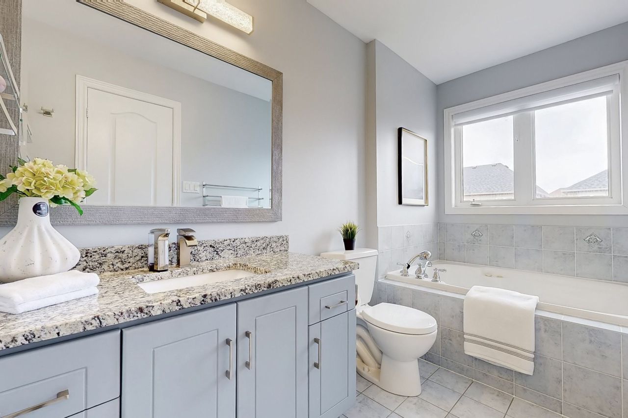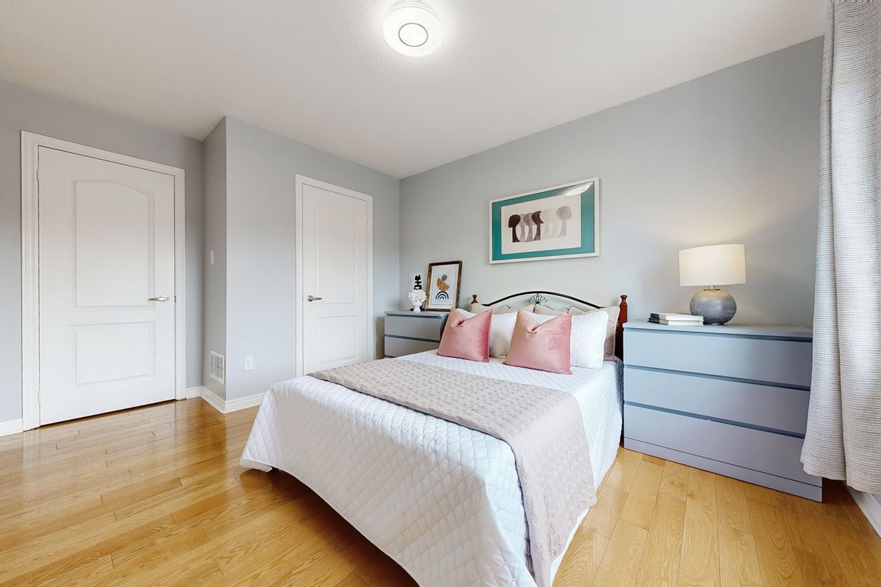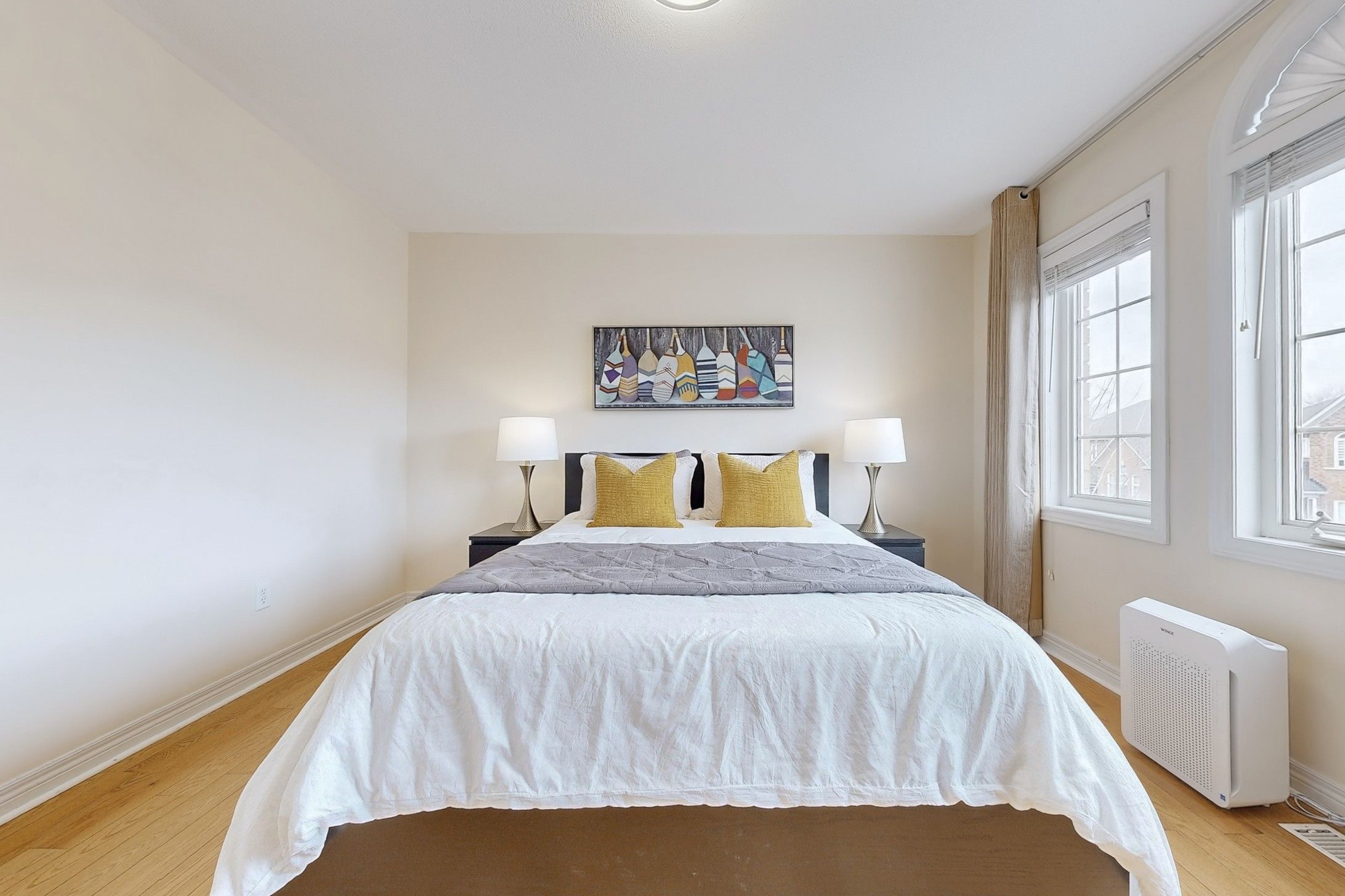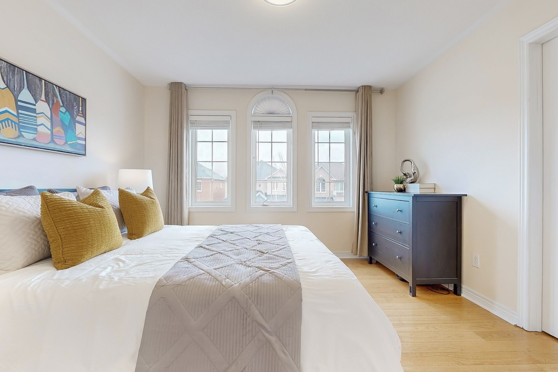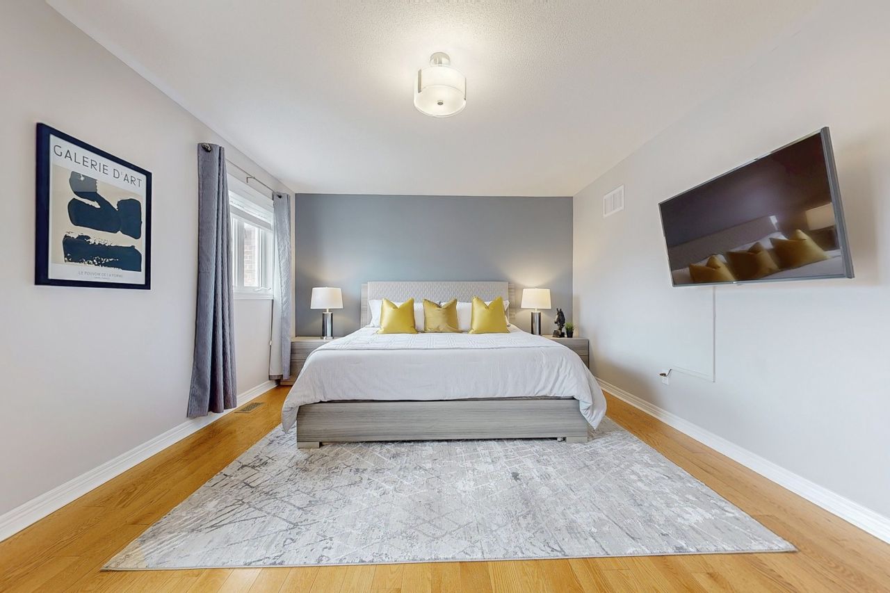 Stunning Home in the Heart of Greensborough, Markham, a beautifully upgraded 1,870 sq. ft. home on in sought-after Greensborough. This bright and spacious residence features hardwood floors throughout, a modern kitchen with quartz countertops, and a primary suite with a 4-piece ensuite with a Jacuzzi tub and walk-in closet. All washrooms are equipped with timer fans. All bathroom countertops have been upgraded - granite in the primary ensuite and quartz in the second upstairs bathroom. The powder room was fully renovated in 2022, a new toilet, light fixture, and vanity. The professionally finished basement includes a large rec room, office, and 3-piece bath, adding versatility to the living space. This move-in ready home is equipped for modern living, featuring a whole-house water softener and a reverse osmosis (RO) water filtration system connected to both the kitchen sink and fridge, providing clean, high-quality drinking water throughout the day. Beyond the home itself, the location is equally impressive: 10-minute walk to Mount Joy Lake Park and Swan Lake Park; 5-Minute Drive to top-rated Bur Oak Secondary School, 5-Mintue Walk to St. Julia Billiart C.S.; 3-Minute Drive to Mount Joy GO Station; Close to community centres, and shopping at Markville Mall, Walmart, and Main Street Markham. Lot of Newly Upgrades :New Roof(2020)New Carrier Heatpump (2023)New Carrier Furnace (2023)New Cafe Fridge (2022)New Samsung Induction Range (2022)New Range Hood (2022)New Bosch Dishwasher (2023)Kitchen Upgrade, Cabinet/countertop/ backsplash (2023)New Garage Door and Opener (2024)New owned water heater (2024).