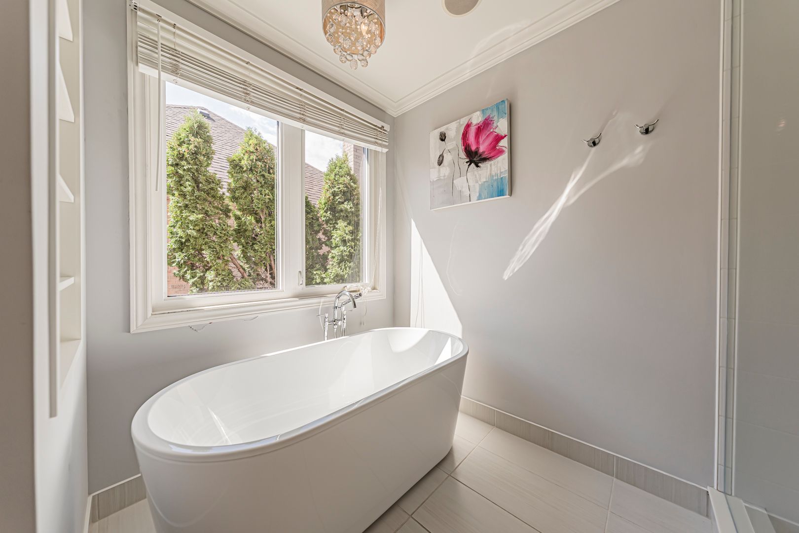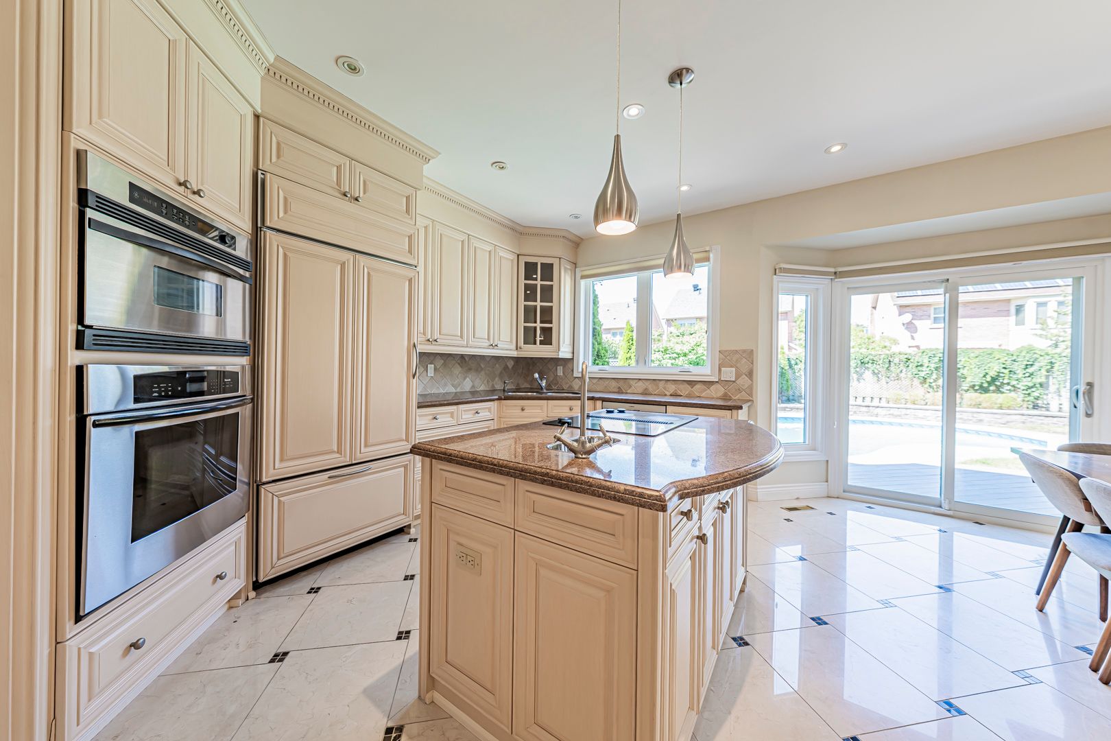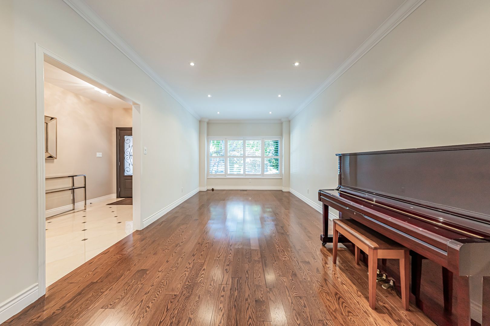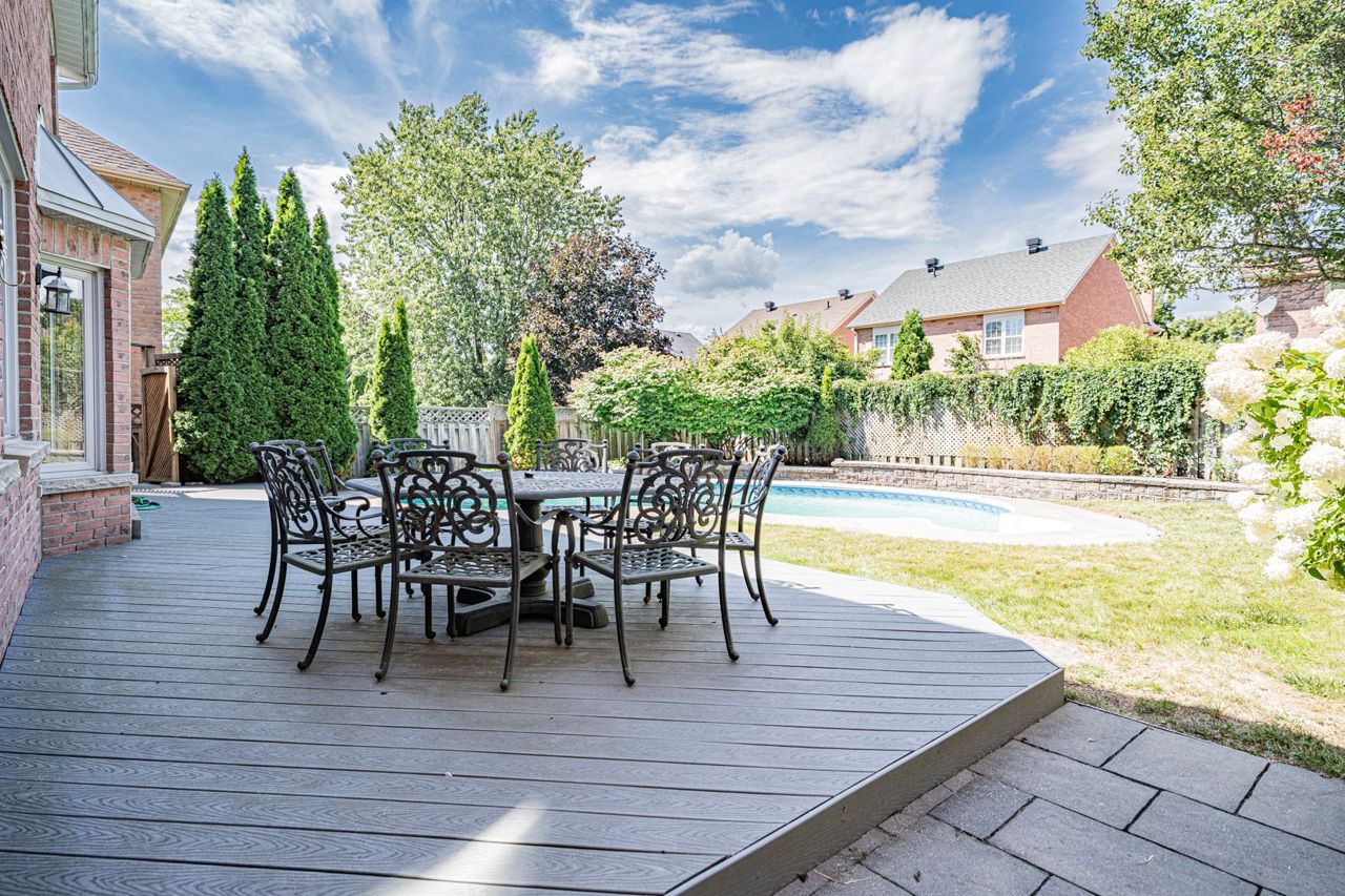Nestled in a quiet neighborhood, just steps from Unionville Main Street, top-ranked schools and public library, this beautifully maintained home offers both comfort and elegance. Main Floor: Open-concept living and dining area with crown moulding. Renovated gourmet kitchen, center island, and built-in appliances. Inviting family room with fireplace, plus a main-floor office with hardwood flooring and bow window. Skylight brings in abundant natural light throughout. Second Floor: Large primary bedroom with hardwood flooring and a stunning 5-piece ensuite. A total of 5 spacious bedrooms and 3 bathrooms on this level provide ample space for the whole family. Basement: Professionally finished with a recreation area, 6th bedroom with 3-piece ensuite. Outdoor Living: Enjoy a nicely shaped salt water pool, custom cedar deck, and beautifully landscaped front and backyards, perfect for family gatherings and summer entertaining. Partially furnished.