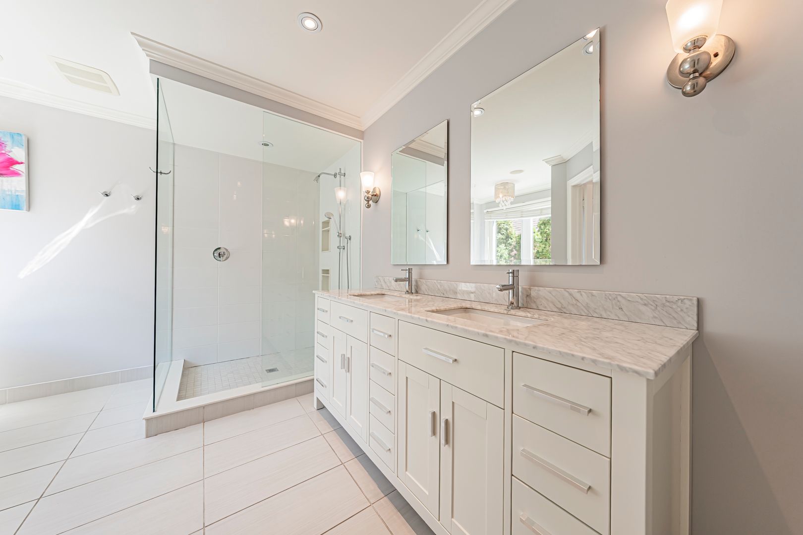 二楼:宽敞的主卧室,铺有硬木地板,并设有一个令人惊叹的五件套浴室。本层共有五间宽敞的卧室和三间浴室,为全家提供充足的空间。