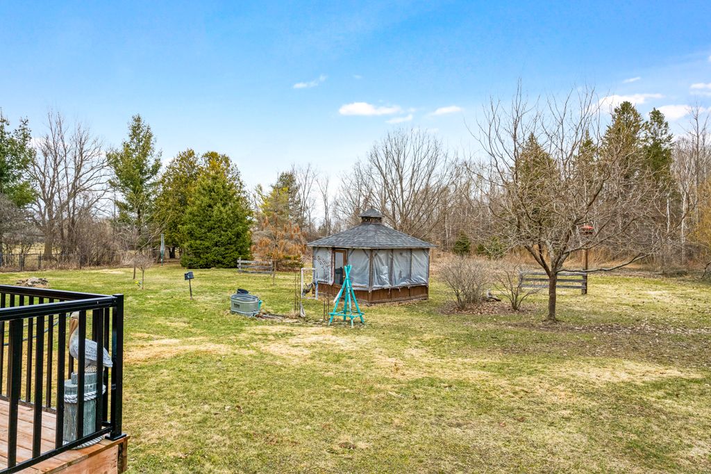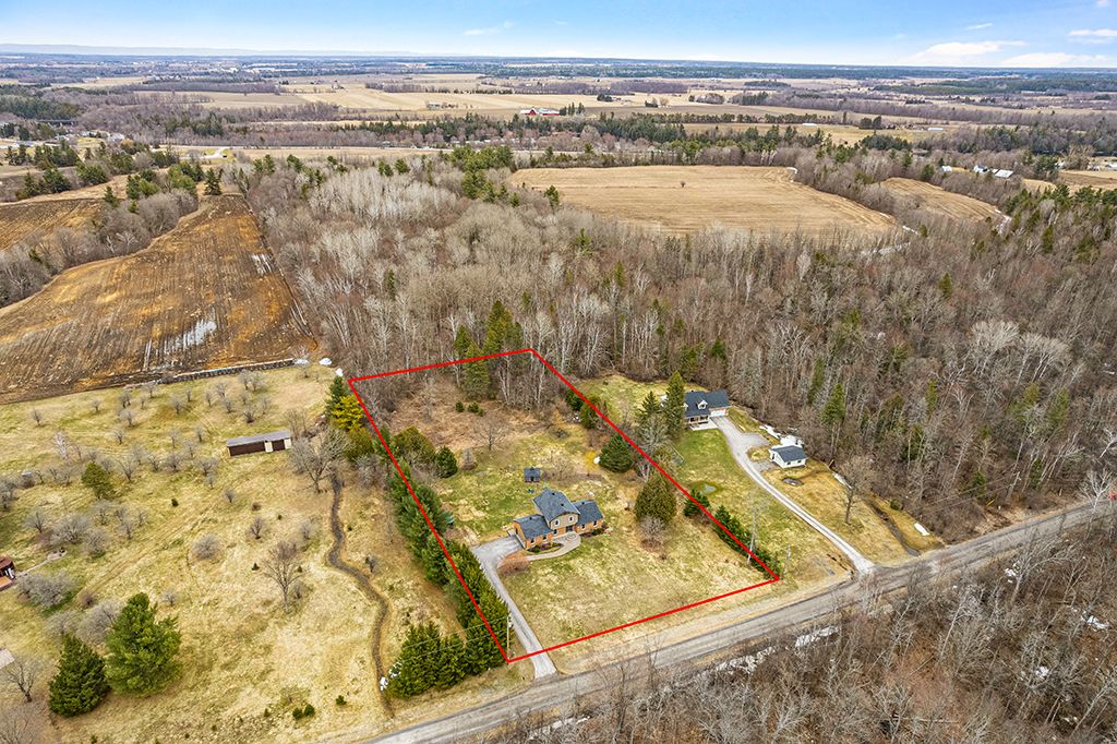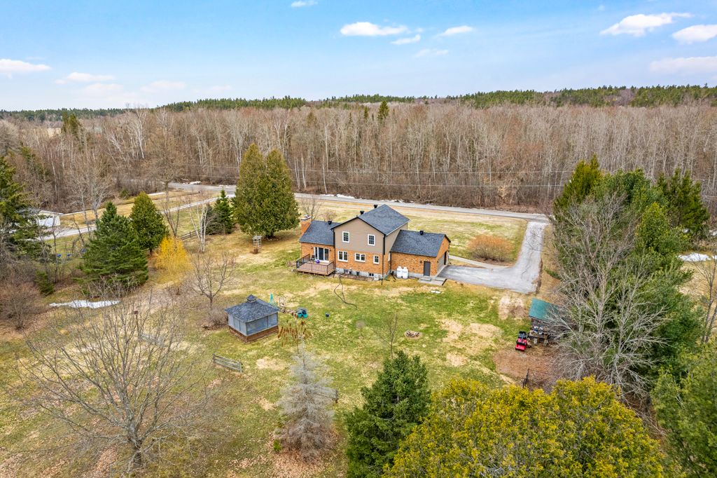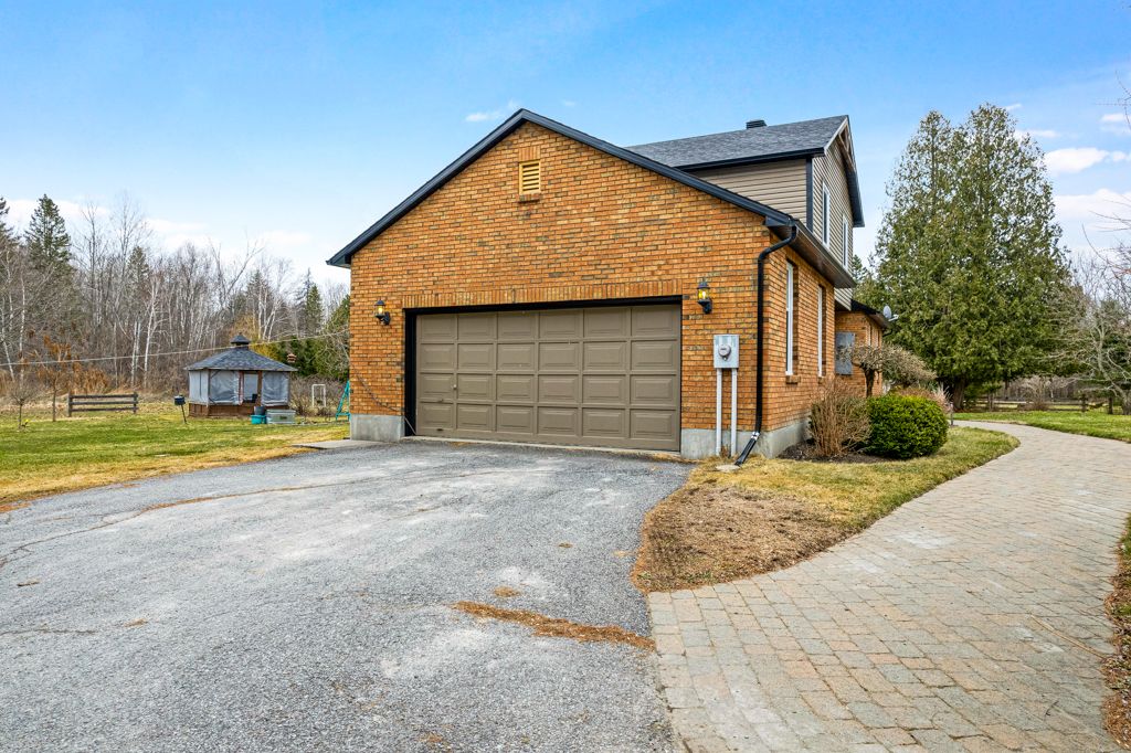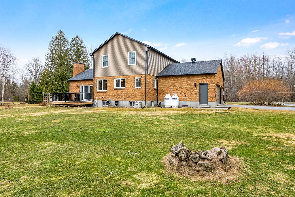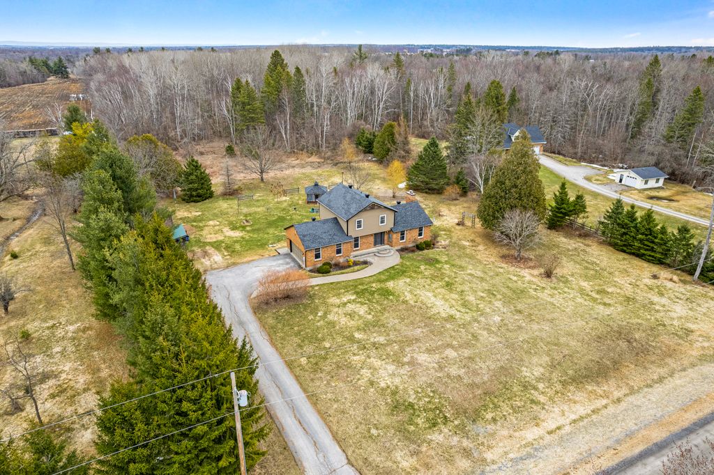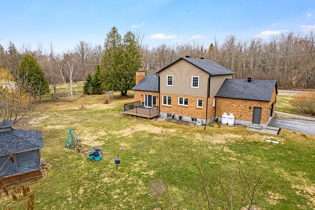 Warmly welcoming family home with two lovely acres on the edge of Pakenham, a village of timeless charm and strong community spirit. This one-owner 3 bedrm, 1.5 bathrm home has attached double garage with inside entry on main & lower levels. Interlock walkway leads up to the front foyer that includes large closet. Laminate floors flow thru light-filled main level featuring big rooms for relaxed gatherings and formal spaces for entertaining. Spacious living room has windows overlooking tranquil landscape. Entertainment-sized dining room. Inviting kitchen of granite countertops, wrap-about oak cabinetry and dinette area. Open to the kitchen is family room with fireplace that has decorative electric insert and, European-styled Tilt-Slide Rehau patio doors opening to deck. Combined powder room, mudroom & laundry station with door to garage. Upstairs, primary bedroom L-shaped with arched alcove to sitting nook; primary bedroom also walk-in closet with organizers. Two more bedrooms plus renovated 2023 bathroom featuring two separate vanities and combined tub/shower with rain head shower. Lower level office/den; cold storage room and another door to garage. Generator plug in. Big green backyard for play and gardening. New 2025 propane furnace. New 2023 architectural roof shingles. All windows updated 2016. Bell hi-speed & cell service. Located on quiet non-thru, township maintained, road with curbside garage pickup and mail delivery. Just 5 mins down the road is family-friendly Mount Pakenham Ski Hill. Also 5 mins down the road is Pakenham Village on shores of the Mississippi River with a historical 5-span arched stone bridge that's the only one in Canada. Plus, oldest General Store in Ontario that continues the tradition of offering delectable freshly baked goods. Next to the village is well-known golf course. Pakenham also has elementary school, library, hockey arena, swimming beach and boat launch. 15 mins to either Arnprior or Almonte. 25 mins to Kanata, west Ottawa.