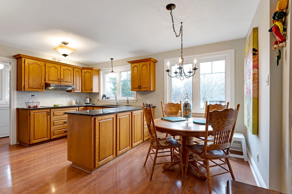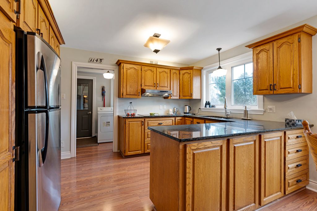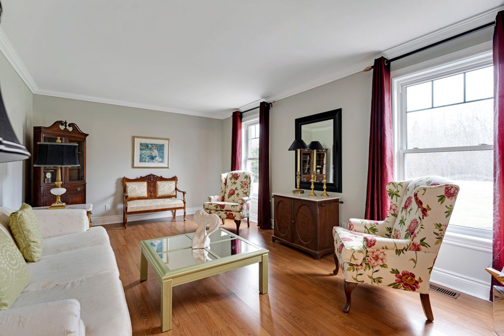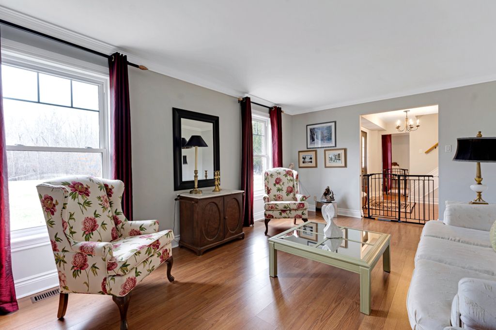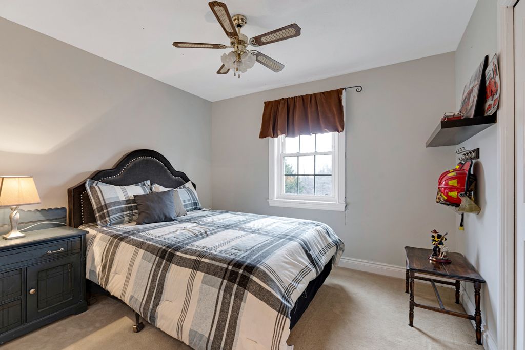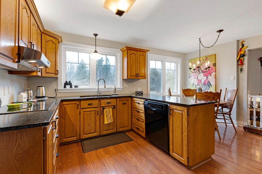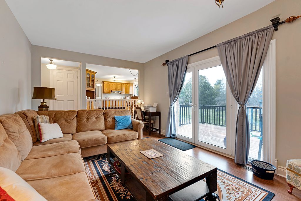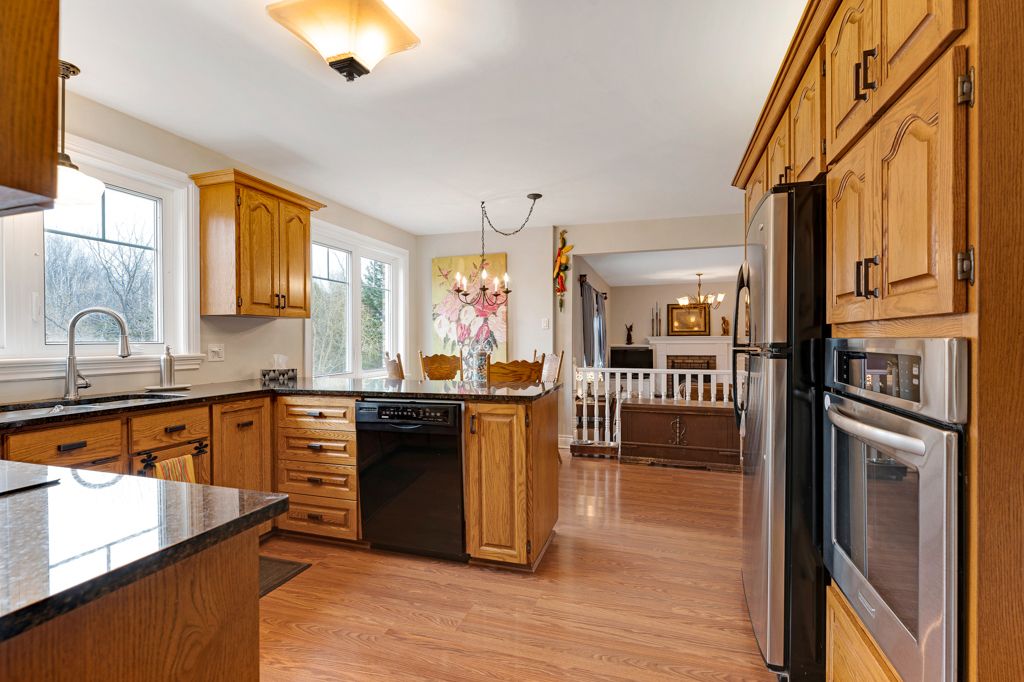 Warmly welcoming family home with two lovely acres on the edge of Pakenham, a village of timeless charm and strong community spirit. This one-owner 3 bedrm, 1.5 bathrm home has attached double garage with inside entry on main & lower levels. Interlock walkway leads up to the front foyer that includes large closet. Laminate floors flow thru light-filled main level featuring big rooms for relaxed gatherings and formal spaces for entertaining. Spacious living room has windows overlooking tranquil landscape. Entertainment-sized dining room. Inviting kitchen of granite countertops, wrap-about oak cabinetry and dinette area. Open to the kitchen is family room with fireplace that has decorative electric insert and, European-styled Tilt-Slide Rehau patio doors opening to deck. Combined powder room, mudroom & laundry station with door to garage. Upstairs, primary bedroom L-shaped with arched alcove to sitting nook; primary bedroom also walk-in closet with organizers. Two more bedrooms plus renovated 2023 bathroom featuring two separate vanities and combined tub/shower with rain head shower. Lower level office/den; cold storage room and another door to garage. Generator plug in. Big green backyard for play and gardening. New 2025 propane furnace. New 2023 architectural roof shingles. All windows updated 2016. Bell hi-speed & cell service. Located on quiet non-thru, township maintained, road with curbside garage pickup and mail delivery. Just 5 mins down the road is family-friendly Mount Pakenham Ski Hill. Also 5 mins down the road is Pakenham Village on shores of the Mississippi River with a historical 5-span arched stone bridge that's the only one in Canada. Plus, oldest General Store in Ontario that continues the tradition of offering delectable freshly baked goods. Next to the village is well-known golf course. Pakenham also has elementary school, library, hockey arena, swimming beach and boat launch. 15 mins to either Arnprior or Almonte. 25 mins to Kanata, west Ottawa.