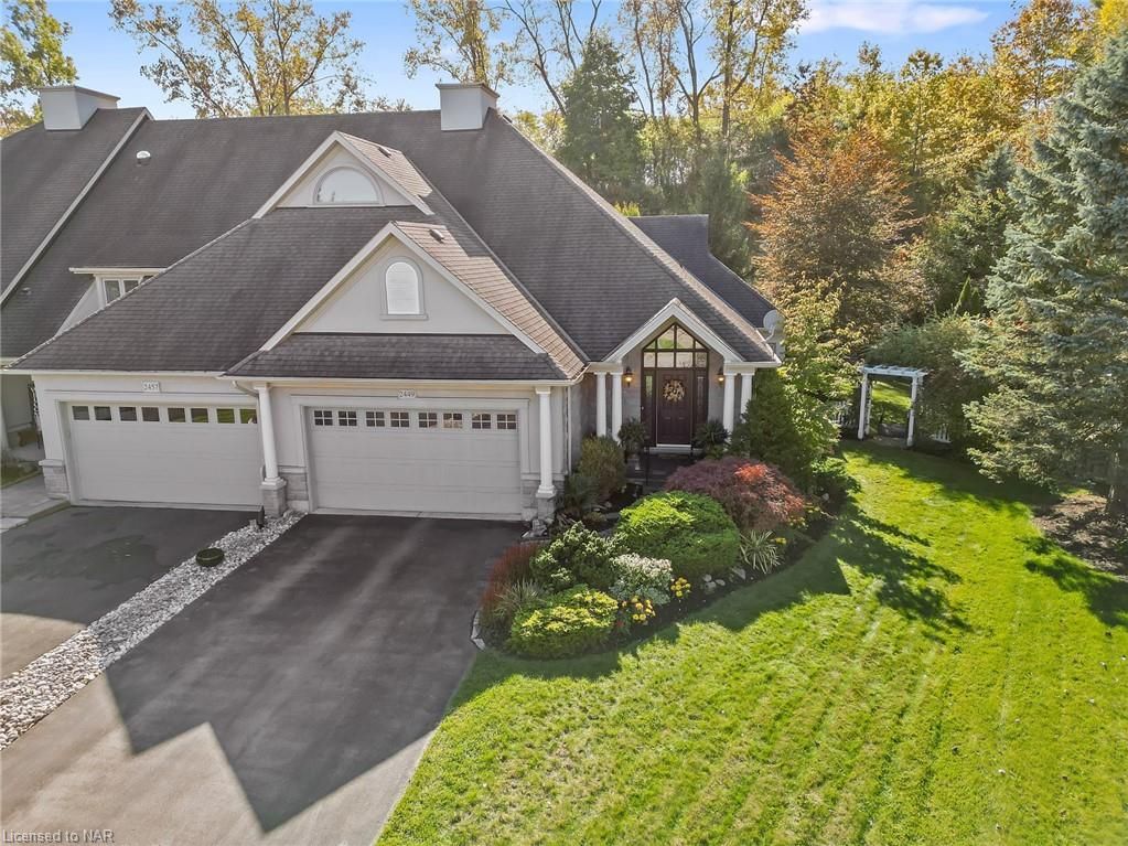 If you head to the north end of Niagara Falls, there is a secluded pocket of homes, tucked away. Yet these homes are just up the street from the village of St.Davids, with its iconic wineries and restaurants. Across the street is Eagle Valley Golf Club, and Queenston Heights and the Niagara Falls parkway are on your doorstep. 2449 Walker is a freehold end unit townhome with 1665 sq/ft of main floor living space, with lovely finishes, and a beautiful rear yard that is deep and private. This home was built in 2006 and has had only one meticulously owner. This townhome is perfect when you don't want to sacrifice sq/ft, but you're after an easier, more carefree and enjoyable lifestyle. Space is abundant here. A large front foyer greets you with high ceilings. On into the home the guest bedroom is positioned away from the main living area, with easy access to the main floor 3-piece bathroom. Around the corner, the home opens up with the kitchen having clear views to the living room and dining room. The sunroom is tucked in the back with serene views to the rear yard. This sunroom was a bonus added by the owner during construction and is a great space to enjoy a morning coffee, or after dinner drink. The kitchen has granite countertops, custom cabinetry, and plenty of cupboard space. The defined, yet open spaces allow for a full dining room, and spacious living room with a gas fireplace. The entire living space enjoys views the private yard that climbs almost 225' deep, providing low maintenance, yet thoughtful landscaping. The primary suite here is really nice with a great bedroom area, large walk-in closet and 3-piece ensuite. The lower level is just as spacious as the main floor and has great potential to be fully finished. It's mostly there with a very large bedroom, and 3-piece bathroom. You can't help but enjoy this property. From the entrance to the yard, you'll truly enjoy your time in this home. This home was truly loved, and you'll love it too.