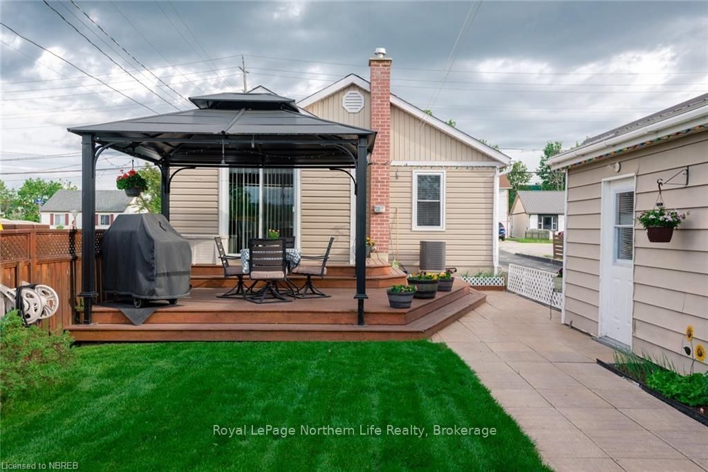 Welcome to this charming one-level home, perfect for easy living and modern comfort. Step into the bright and inviting living room, filled with natural light. The spacious eat-in kitchen features ample cupboard space and patio doors that lead out to a private back deck complete with a covered gazebo and hot tub, ideal for relaxing or entertaining. Garden lovers will appreciate the beautifully maintained outdoor spaces, filled with vibrant gardens and lush landscaping. Enjoy the fully fenced yard offering privacy and space for pets or kids to play. A detached garage adds extra storage and convenience. This home was equipped with gas heating and air conditioning in 2022, keeping you comfortable year-round. Conveniently located close to all amenities, this delightful home truly checks all the boxes!