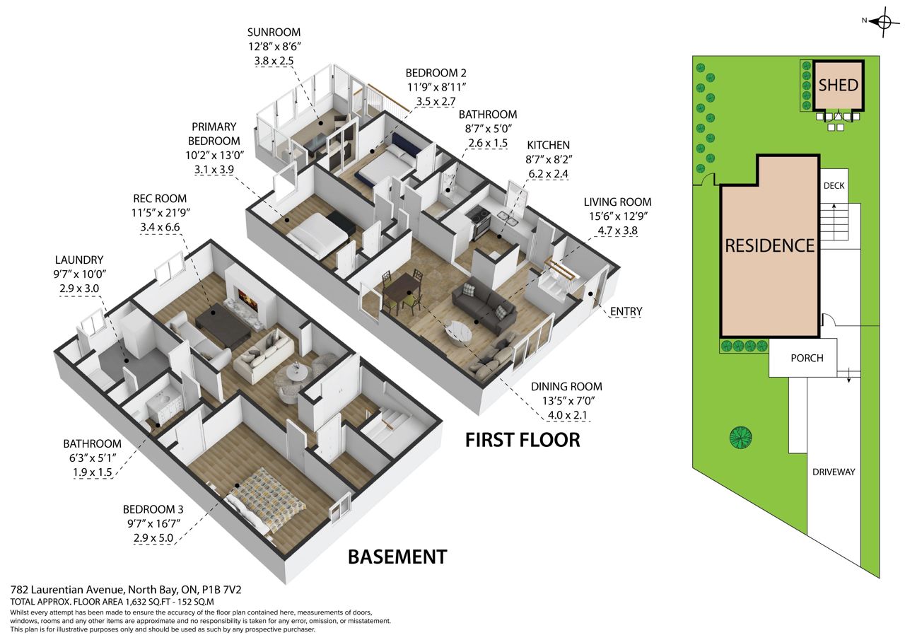 782 Laurentian Avenue - A Comfortable Family Home in Widdifield. This three-bedroom home sits at the end of a quiet street in North Bay's Widdifield area. The double driveway provides plenty of parking, while the interlock ramp makes entry easy. Inside, you'll find a practical layout with good natural light from large windows in the living area. The kitchen handles everyday cooking needs, and two bedrooms on the main floor include one with direct access to a sunroom overlooking the backyard. Downstairs offers extra living space with a third bedroom, additional bathroom, and a rec room with a gas fireplace - ideal for family time or entertaining. Outside features a fenced yard with a storage shed. The location works well for daily life, being minutes from Northgate Shopping Centre, groceries, schools, Laurentian Ski Hill is nearby for winter activities and more. Recent updates include fresh flooring and paint in the basement, along with other maintenance that makes this home ready for its next owners. 782 Laurentian Ave is the kind of house where families can settle in, retire in and enjoy! Some photos have been virtually staged.