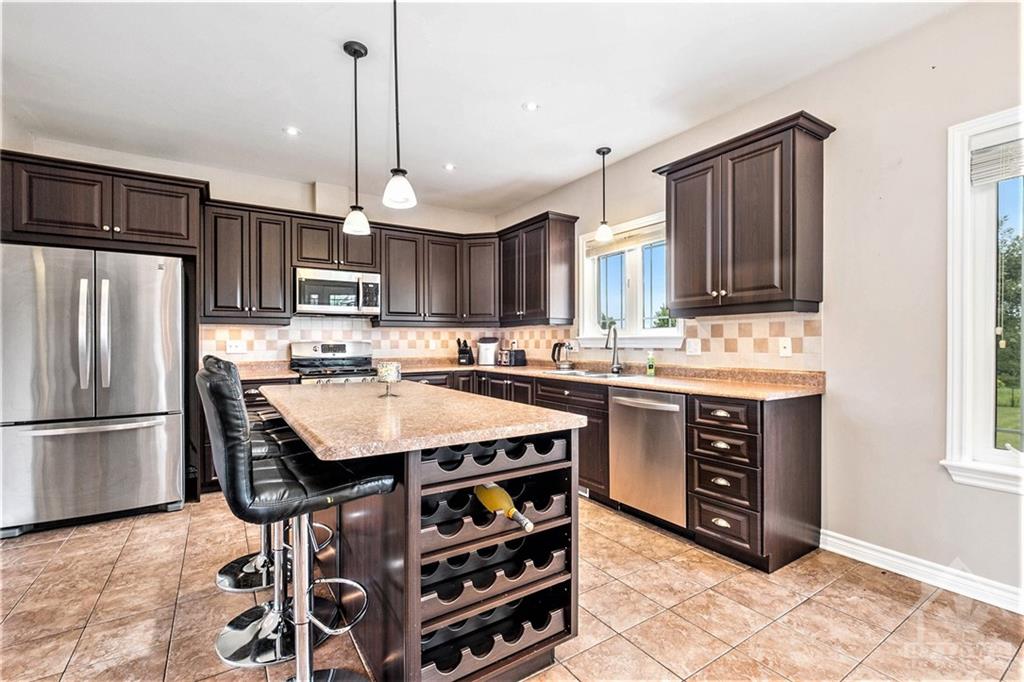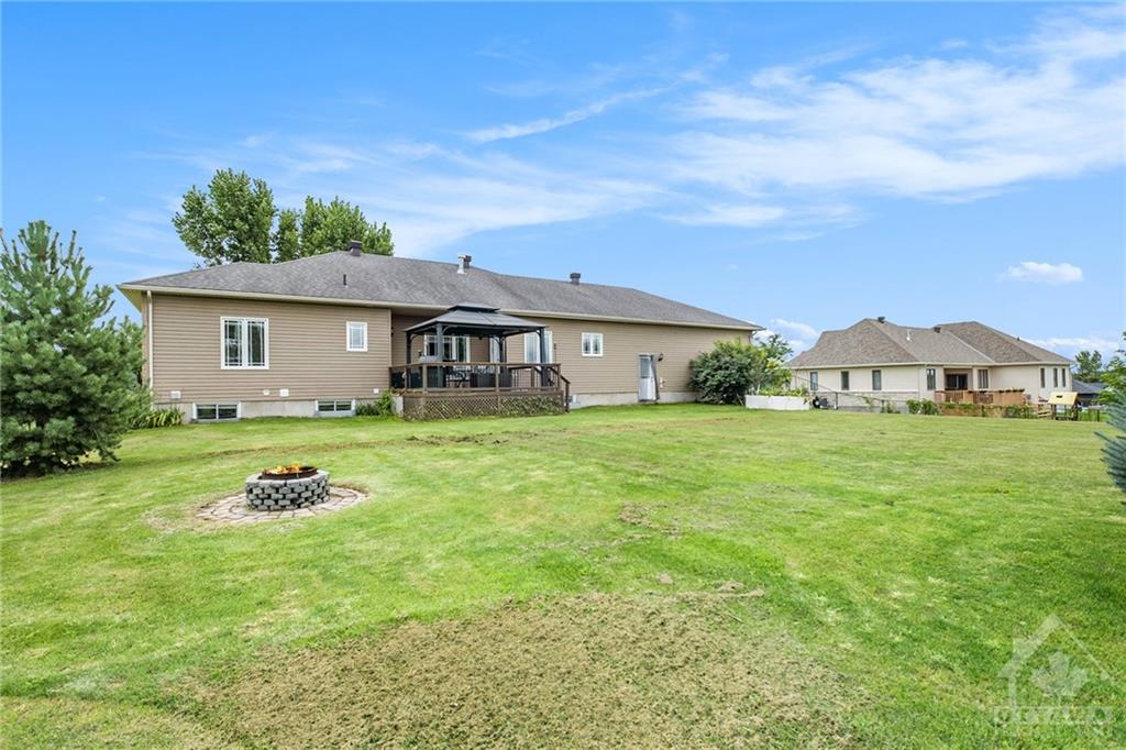 Discover this stunning bungalow nestled on a spacious lot, just 30 minutes from Ottawa. Meticulously maintained, this home boasts inviting and sun filled design throughout the main level. The bright dining area flows seamlessly into a lovely kitchen, featuring a gorgeous sit-at island with wine storage, s/s appliances and a convenient door to the yard. The cozy living room, complete with a gas fireplace, offers the perfect space to unwind. The main floor features three bedrooms, including a primary bedroom with a luxurious ensuite and walk-in closet. Two modern bathrooms and main floor laundry add to the convenience. The fully finished lower level expands your living space with a large family room, bathroom and a fourth bedroom. Step outside to a fully fenced yard, complete with a storage shed, mature trees, a firepit and a large deck, creating a private oasis perfect for outdoor gatherings. This exceptional property combines comfort, style, and a prime location, don't miss it!