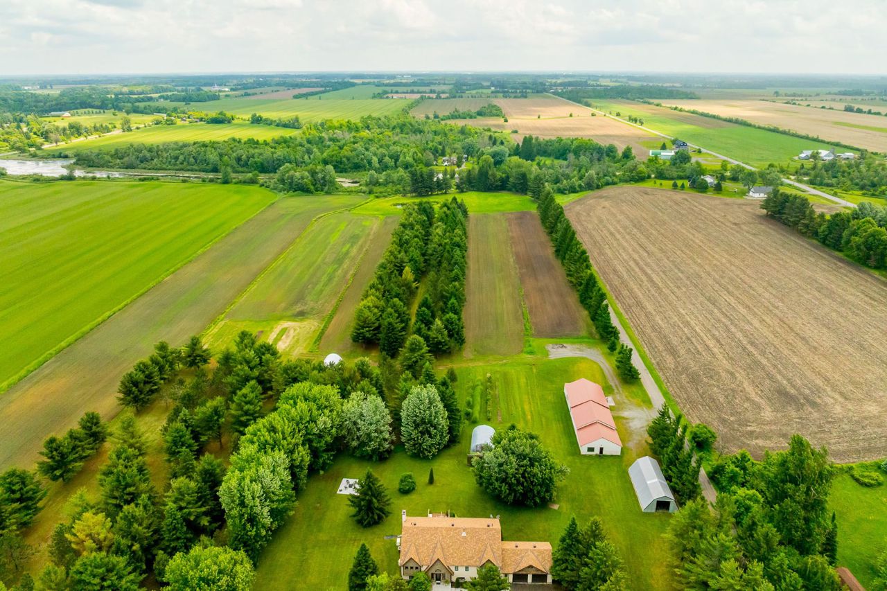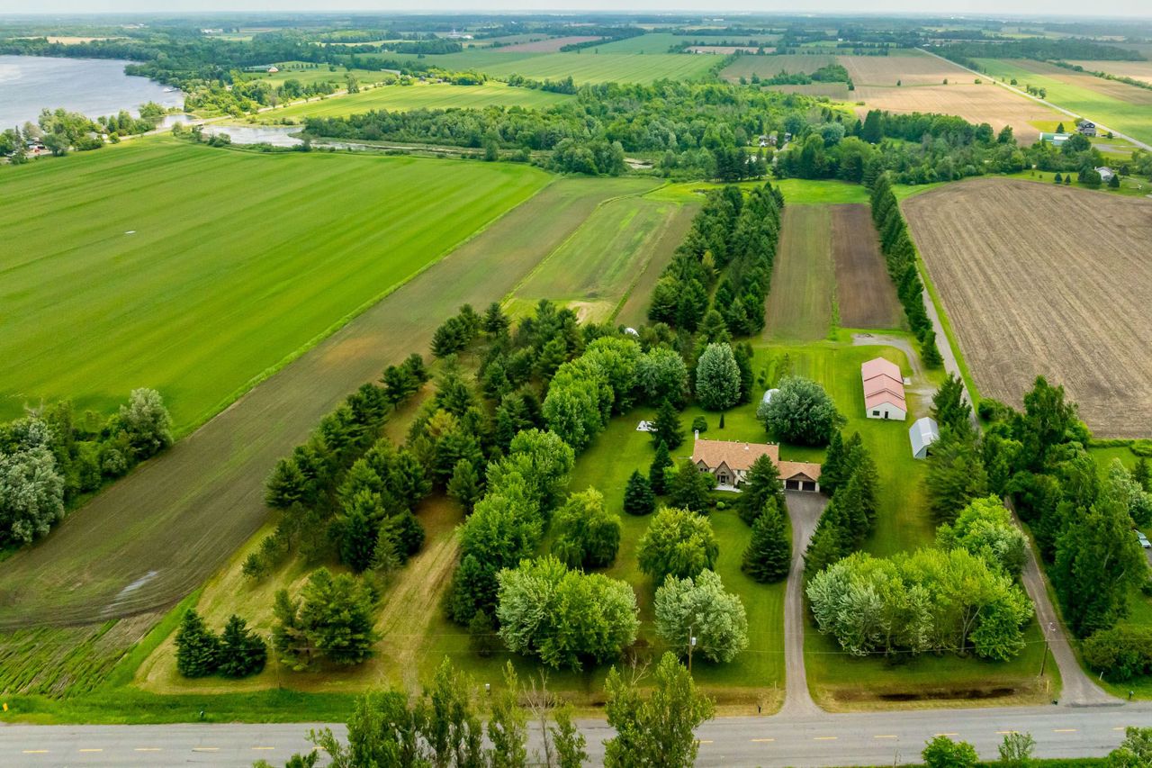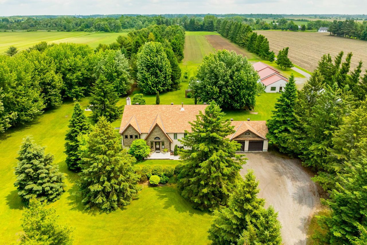 Nestled on approximately 24 acres of mature, treed landscape, this stunning custom-built 3-bedroom home offers the perfect balance of comfort, space, and opportunity. A grand foyer greets you upon entry, setting the tone for the unique layout and charm found throughout the home.Up a few steps, you'll find an impressive dining room featuring a built-in bar ideal for entertaining. The grand living room boasts a statement feature wall with a floor-to-ceiling stone-surround wood-burning fireplace, and patio doors that lead out to a spacious backyard deck with picturesque views.The newly renovated kitchen is a chefs dream with ample cabinetry, quartz countertops, and serene nature views. A cozy and private bonus room overlooks the lush grounds perfect as an office, reading nook, or studio.The primary bedroom is a true retreat, complete with extensive built-in wardrobe closets and a luxurious 4-piece ensuite with a soaker tub. Two additional spacious bedrooms offer warm oak hardwood flooring and share a main bath that conveniently includes a stackable washer and dryer.The lower level features a large rec room with pellet stove and included pool table, a spacious workshop with abundant storage, a mudroom with garage access, and a second laundry room for added convenience.Outdoors, the opportunities are endless. The impressive 110 x 30 workshop includes office space, 400amp service with 3-phase converter, and its own separate road entrance ideal for a home-based business or hobbyist.The meticulously maintained lot includes:* Greenhouse* Fruit trees (apple, raspberry, blueberry, and asparagus patch)* Fire pit area* Beautiful private canal perfect for kayaking or canoeing! Whether you're seeking privacy, space to grow, or the perfect work-from-home setup, this one-of-a-kind estate offers it all, 8 min to Kemptville and 14 minutes to Manotick but worlds away from the ordinary.