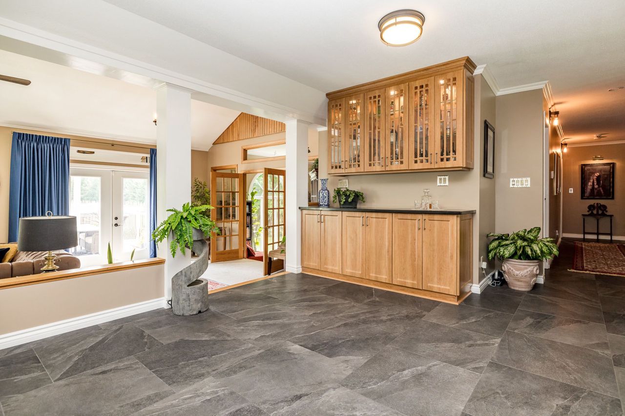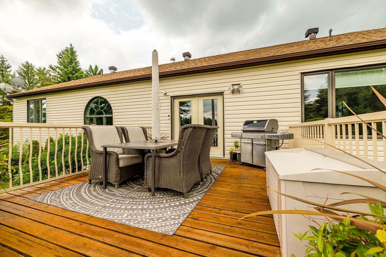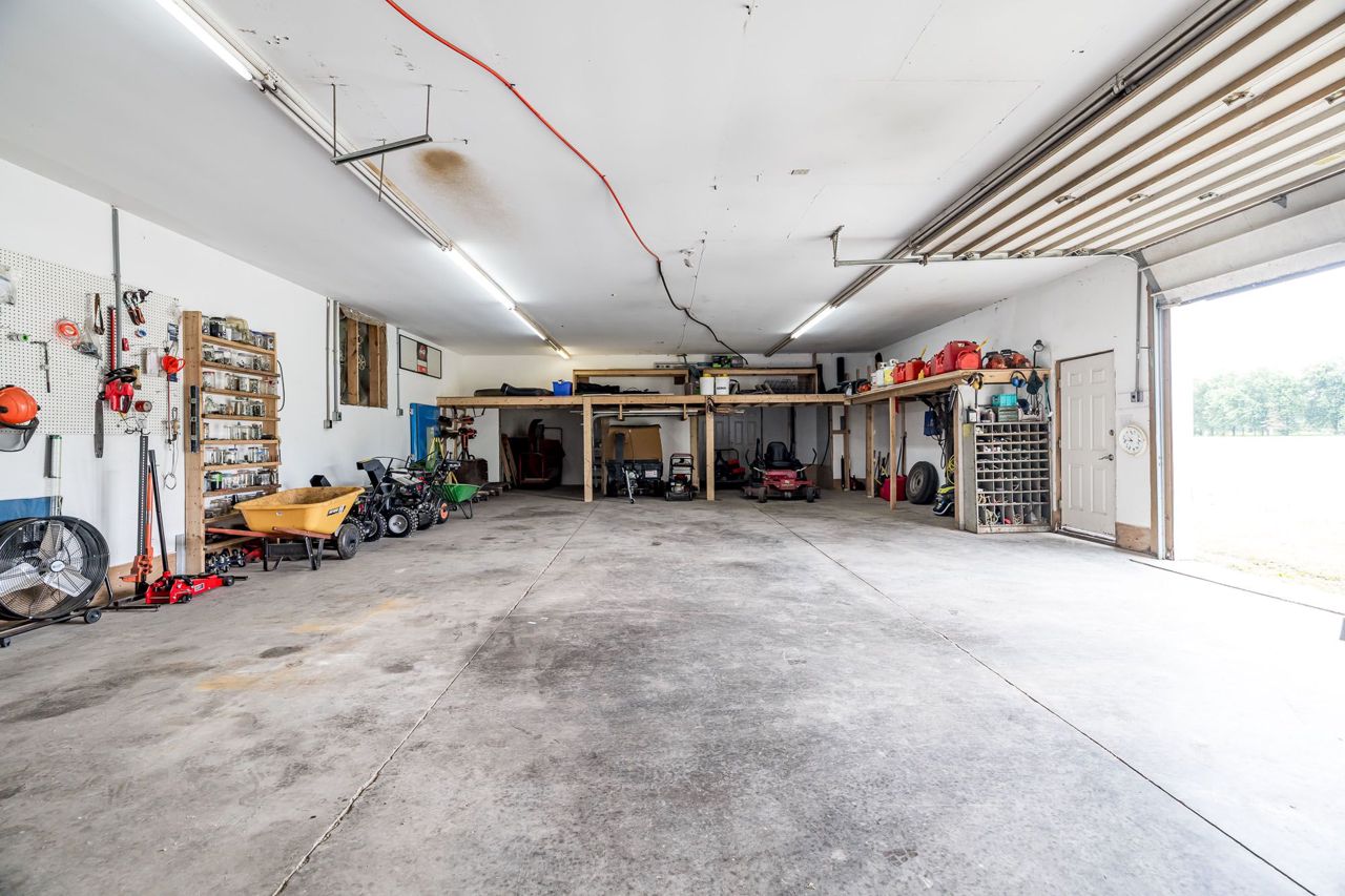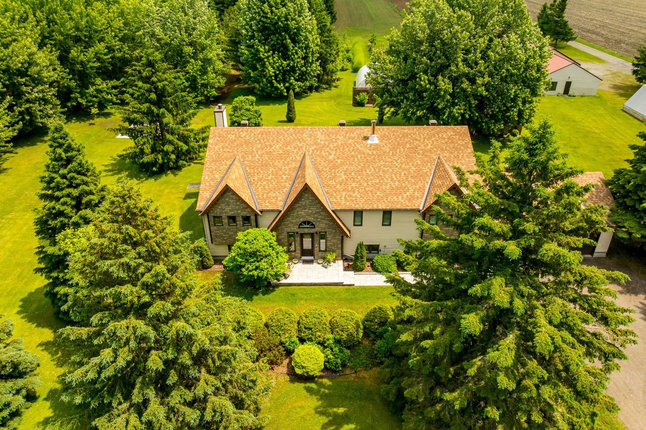 Nestled on approximately 24 acres of mature, treed landscape, this stunning custom-built 3-bedroom home offers the perfect balance of comfort, space, and opportunity. A grand foyer greets you upon entry, setting the tone for the unique layout and charm found throughout the home.Up a few steps, you'll find an impressive dining room featuring a built-in bar ideal for entertaining. The grand living room boasts a statement feature wall with a floor-to-ceiling stone-surround wood-burning fireplace, and patio doors that lead out to a spacious backyard deck with picturesque views.The newly renovated kitchen is a chefs dream with ample cabinetry, quartz countertops, and serene nature views. A cozy and private bonus room overlooks the lush grounds perfect as an office, reading nook, or studio.The primary bedroom is a true retreat, complete with extensive built-in wardrobe closets and a luxurious 4-piece ensuite with a soaker tub. Two additional spacious bedrooms offer warm oak hardwood flooring and share a main bath that conveniently includes a stackable washer and dryer.The lower level features a large rec room with pellet stove and included pool table, a spacious workshop with abundant storage, a mudroom with garage access, and a second laundry room for added convenience.Outdoors, the opportunities are endless. The impressive 110 x 30 workshop includes office space, 400amp service with 3-phase converter, and its own separate road entrance ideal for a home-based business or hobbyist.The meticulously maintained lot includes:* Greenhouse* Fruit trees (apple, raspberry, blueberry, and asparagus patch)* Fire pit area* Beautiful private canal perfect for kayaking or canoeing! Whether you're seeking privacy, space to grow, or the perfect work-from-home setup, this one-of-a-kind estate offers it all, 8 min to Kemptville and 14 minutes to Manotick but worlds away from the ordinary.