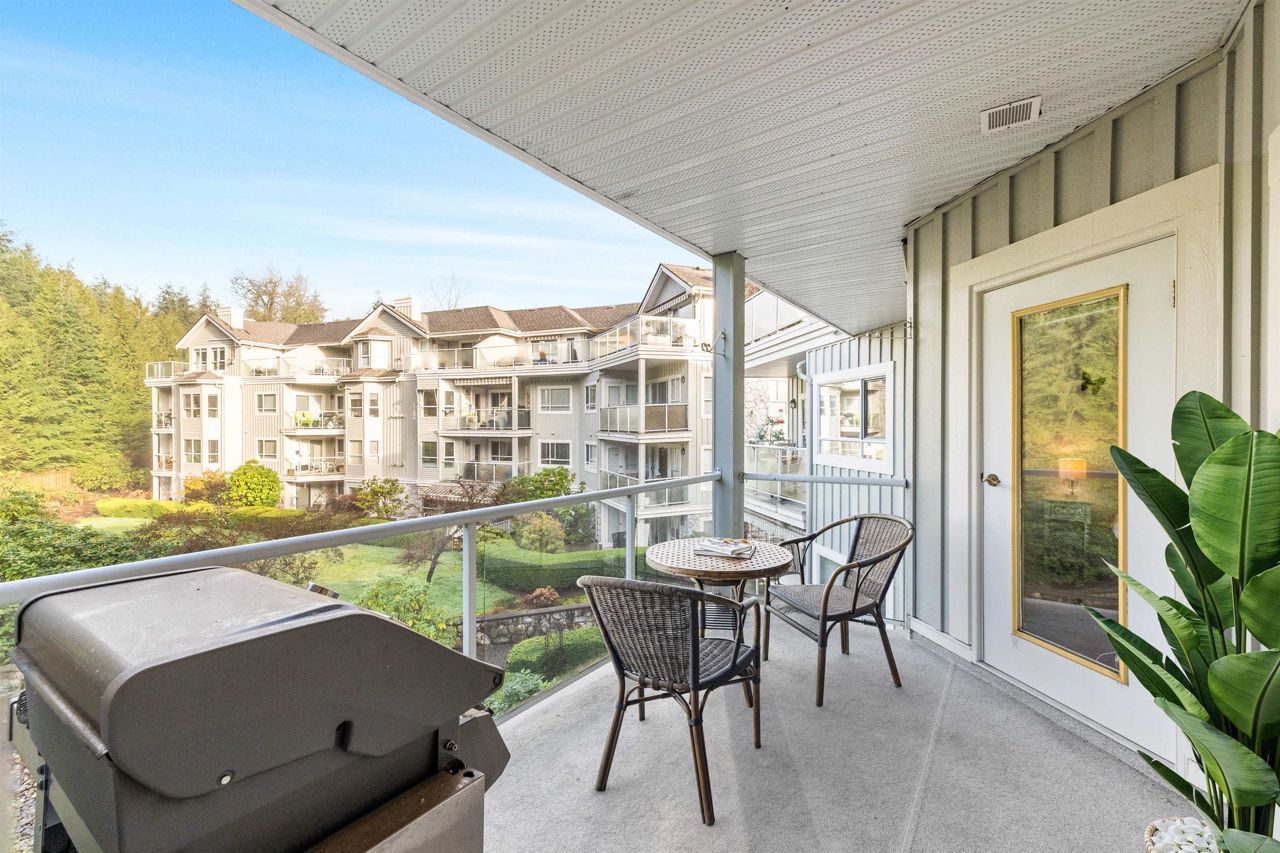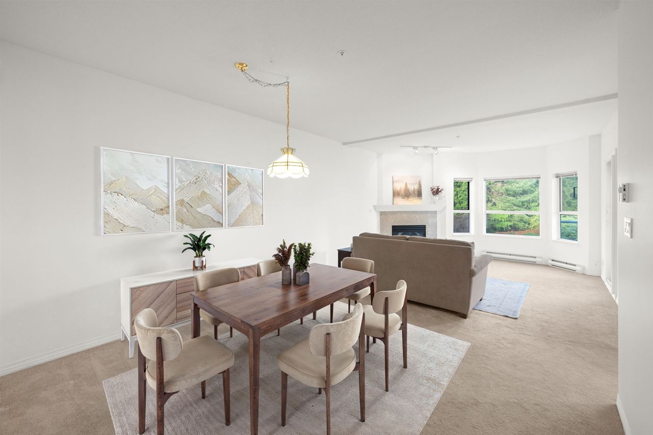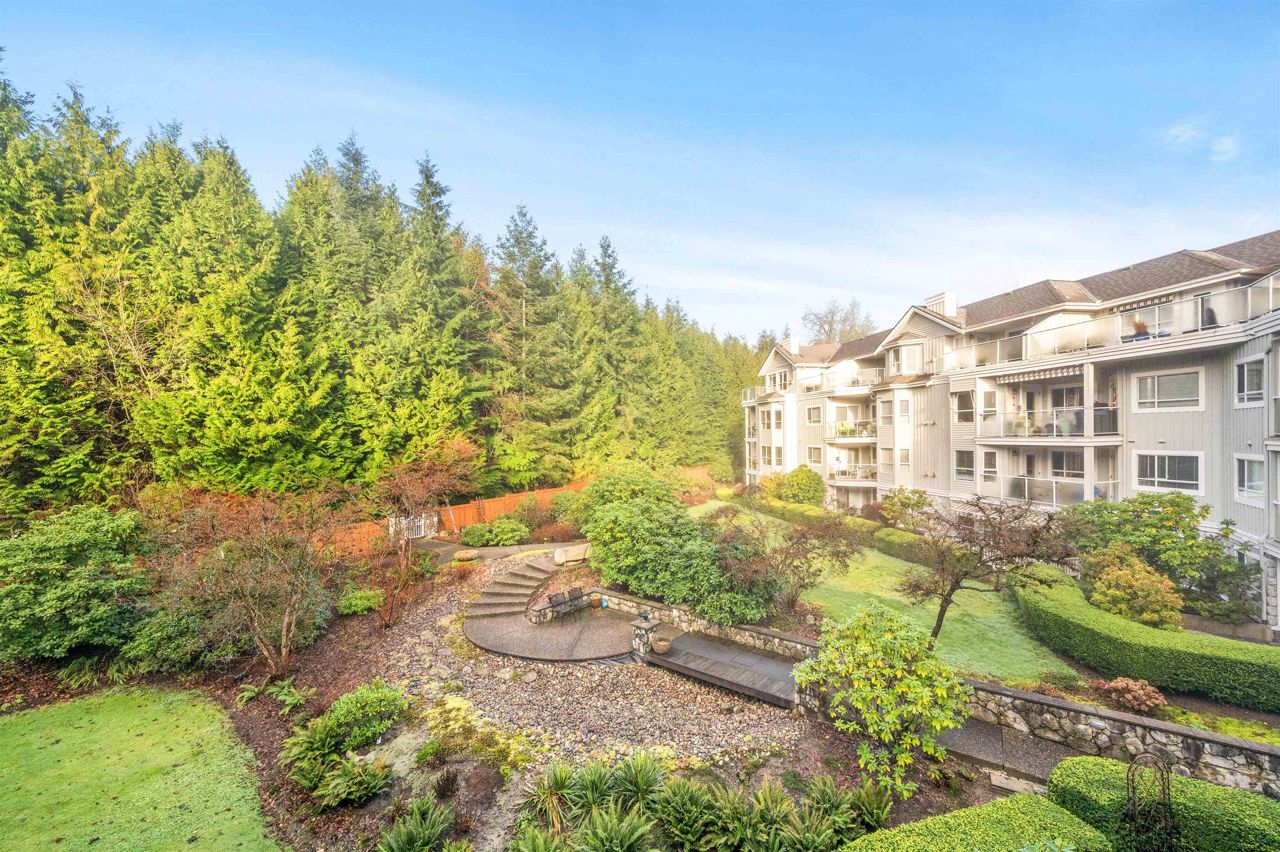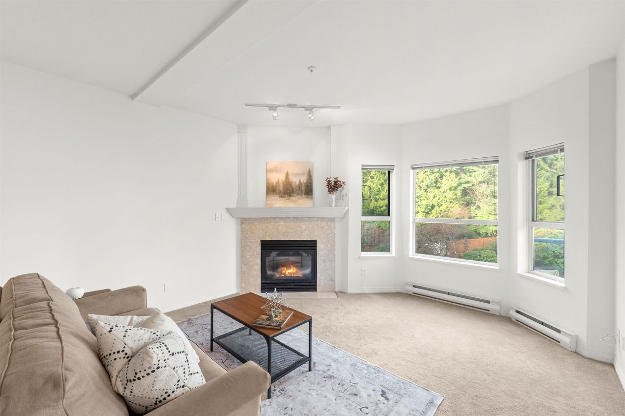 Spacious and inviting home at sought after Parkgate Place! With over 1250 sq ft of living space, this home features an open concept living and dining room ready for your house sized furniture. Enjoy a cozy gas fireplace and an incredible covered balcony perfect for enjoying your morning coffee or evening wine while overlooking the manicured gardens. This layout is ideal for downsizers, young families, or anyone in need of ample space. Move in ready or make this home your own! Conveniently located, residents can easily access Parkgate Park, Parkgate Village amenities, Northlands Golf Course, beautiful beaches and restaurants in Deep Cove, and the slopes of Mount Seymour. Includes 2 parking spots, 1 large locker, pet friendly building.