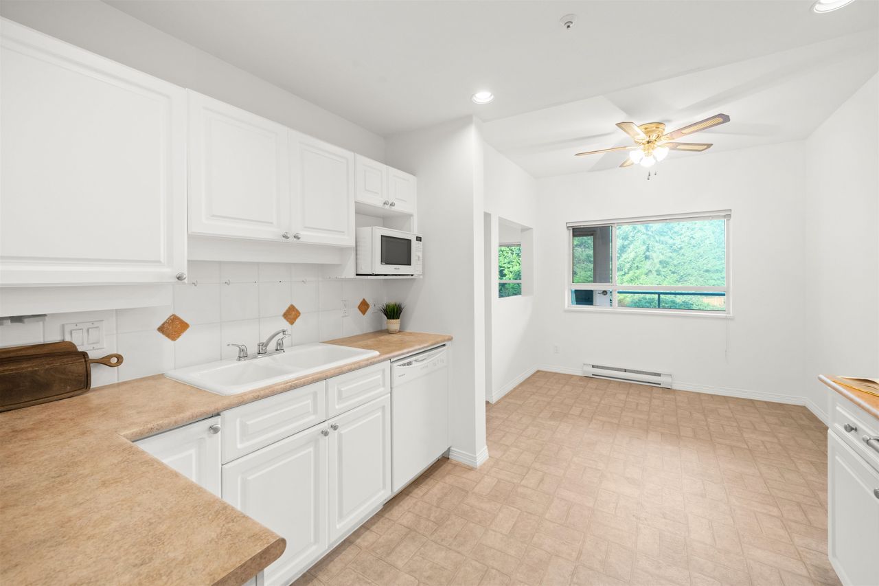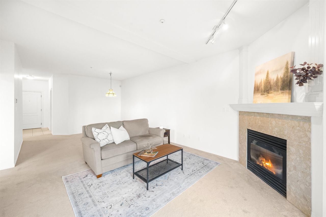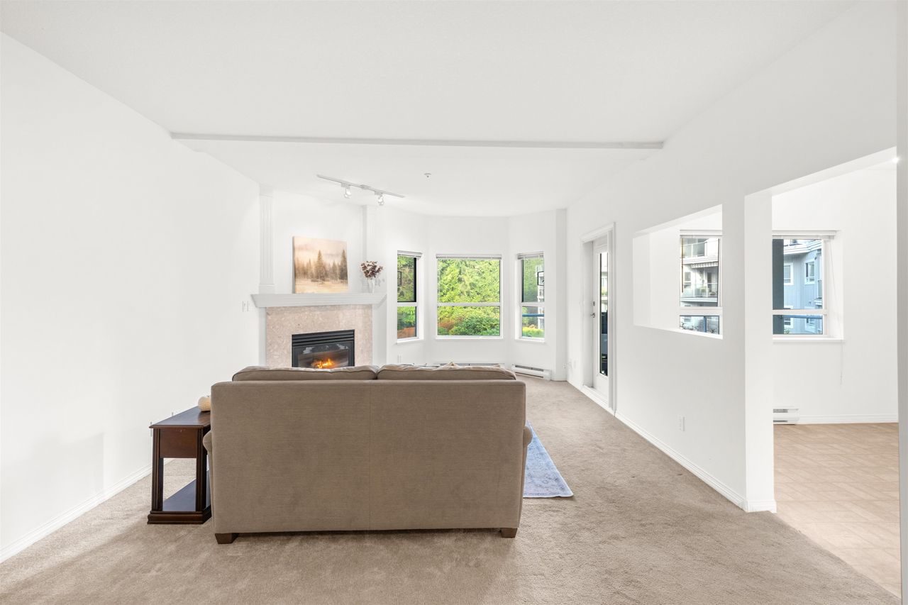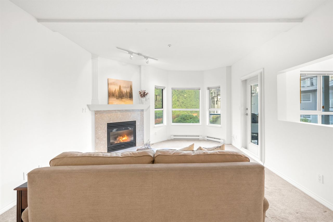 Spacious and inviting home at sought after Parkgate Place! With over 1250 sq ft of living space, this home features an open concept living and dining room ready for your house sized furniture. Enjoy a cozy gas fireplace and an incredible covered balcony perfect for enjoying your morning coffee or evening wine while overlooking the manicured gardens. This layout is ideal for downsizers, young families, or anyone in need of ample space. Move in ready or make this home your own! Conveniently located, residents can easily access Parkgate Park, Parkgate Village amenities, Northlands Golf Course, beautiful beaches and restaurants in Deep Cove, and the slopes of Mount Seymour. Includes 2 parking spots, 1 large locker, pet friendly building.