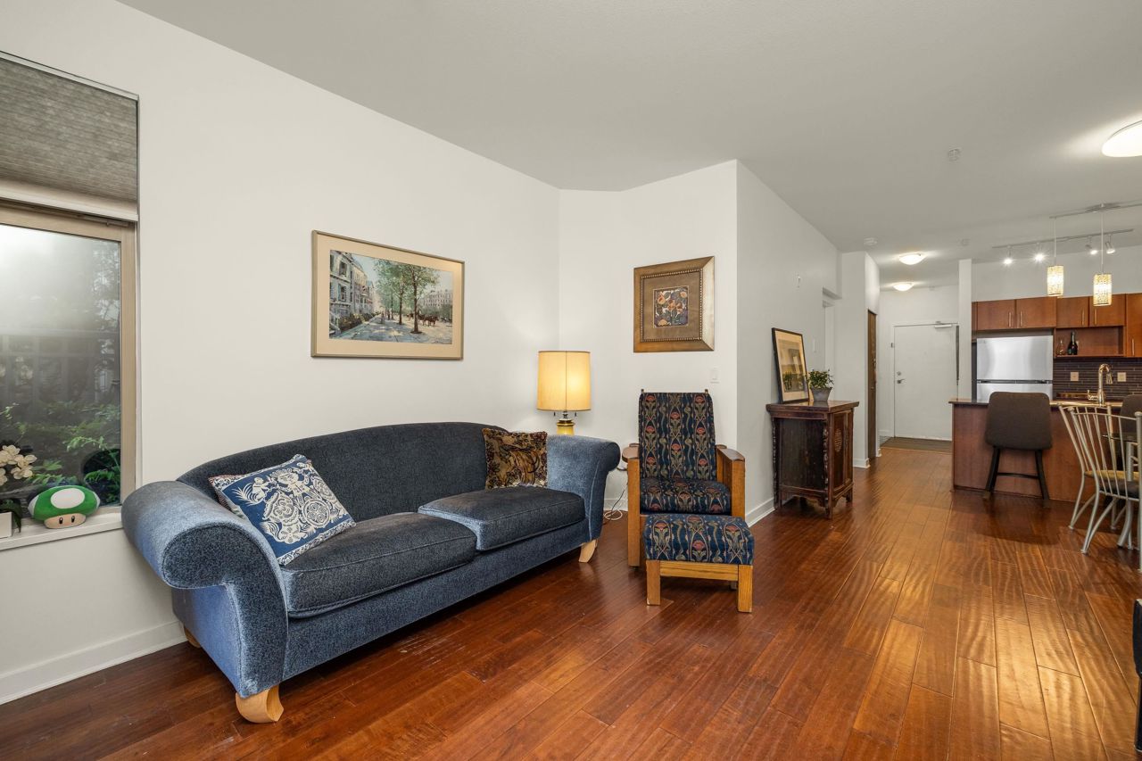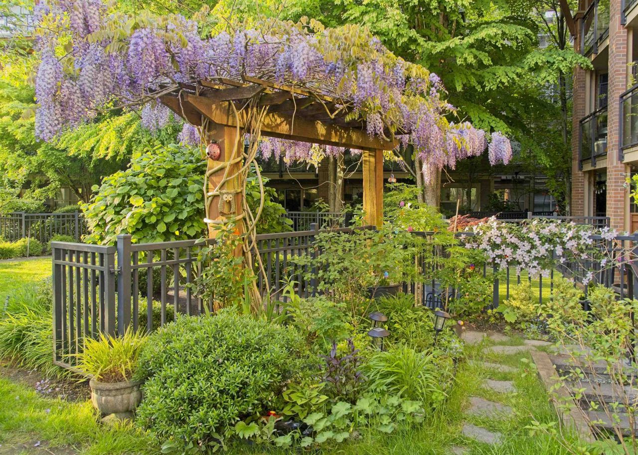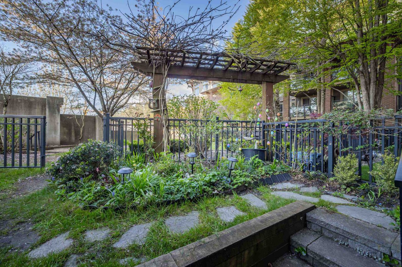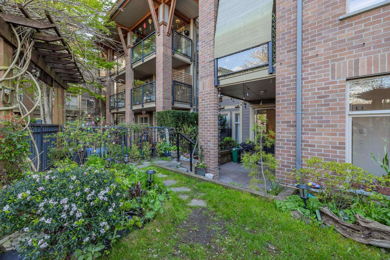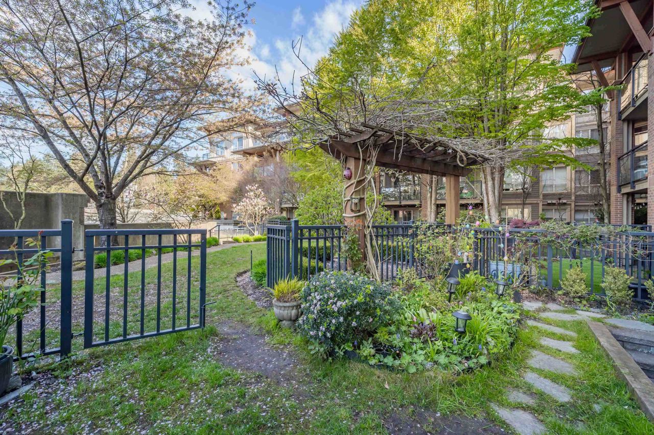 Live like you’re in a townhome in this above-ground main-floor 2 bed/2 bath home, perfectly tucked beside Heywood Park & MacKay Creek. Enjoy 138 sq.ft of covered patio and a fenced garden ready for your green thumb. Inside, lofty 9-ft ceilings, oversized windows and warm laminate flooring set an inviting tone, while the open-concept kitchen with granite counters, stainless-steel appliances and breakfast bar keeps you connected to guests. Bedrooms are thoughtfully split for privacy; the primary boasts a walk-in closet, built-in desk nook and full ensuite. With in-suite laundry, secure parking, a storage locker and a pet-friendly strata, you’re just minutes to Capilano Mall, Capilano Elementary, local trails and transit. Bonus: Pay as you go wine cellar downstairs.