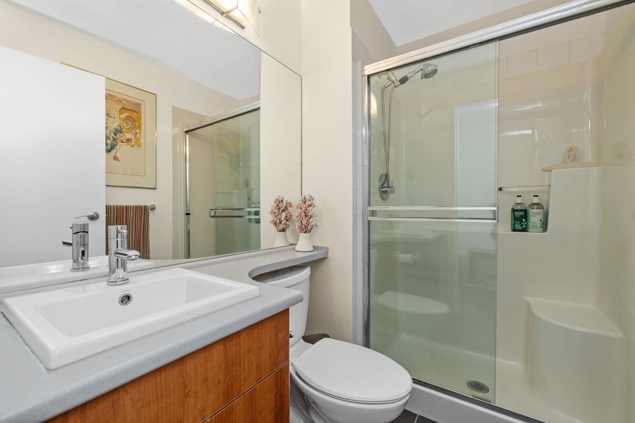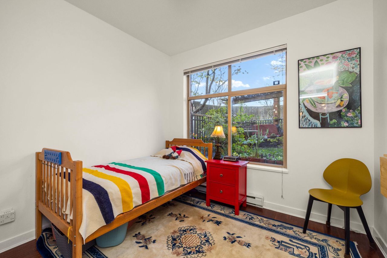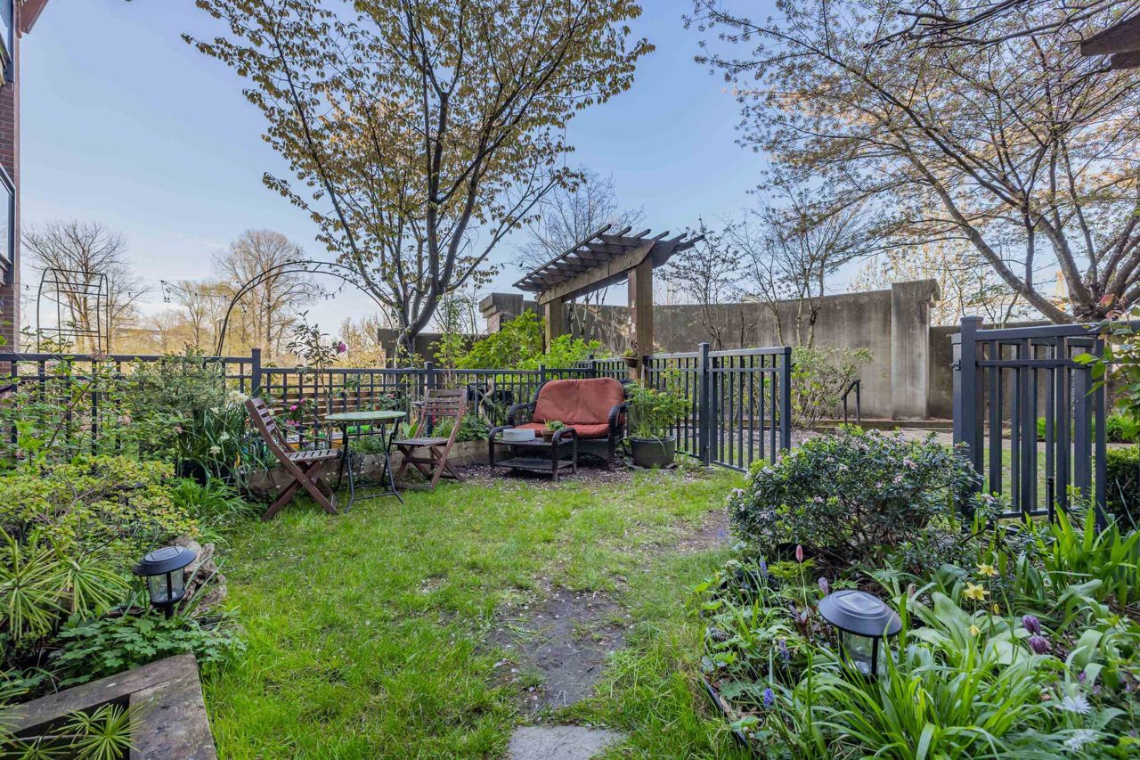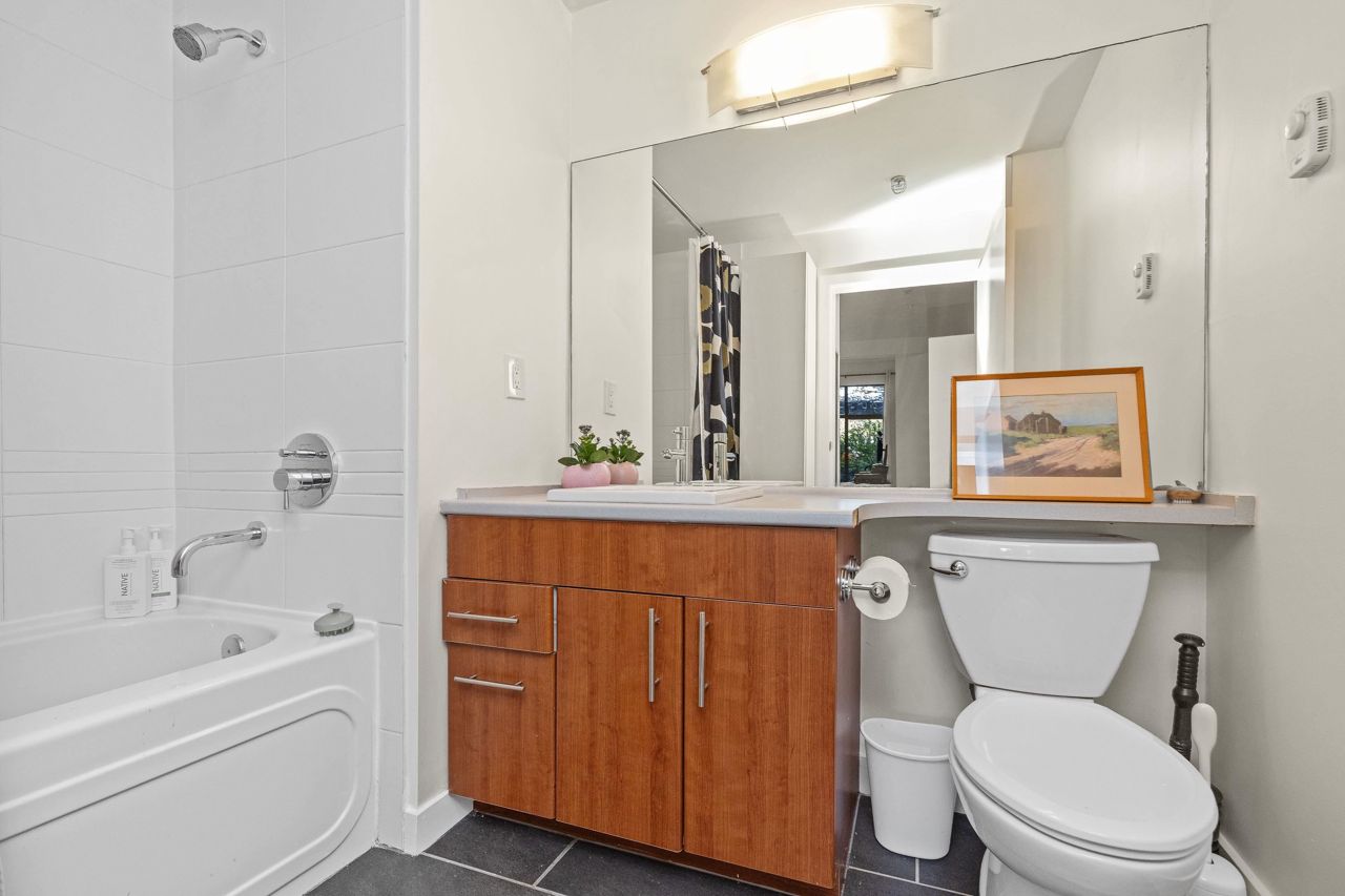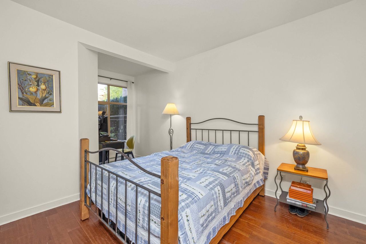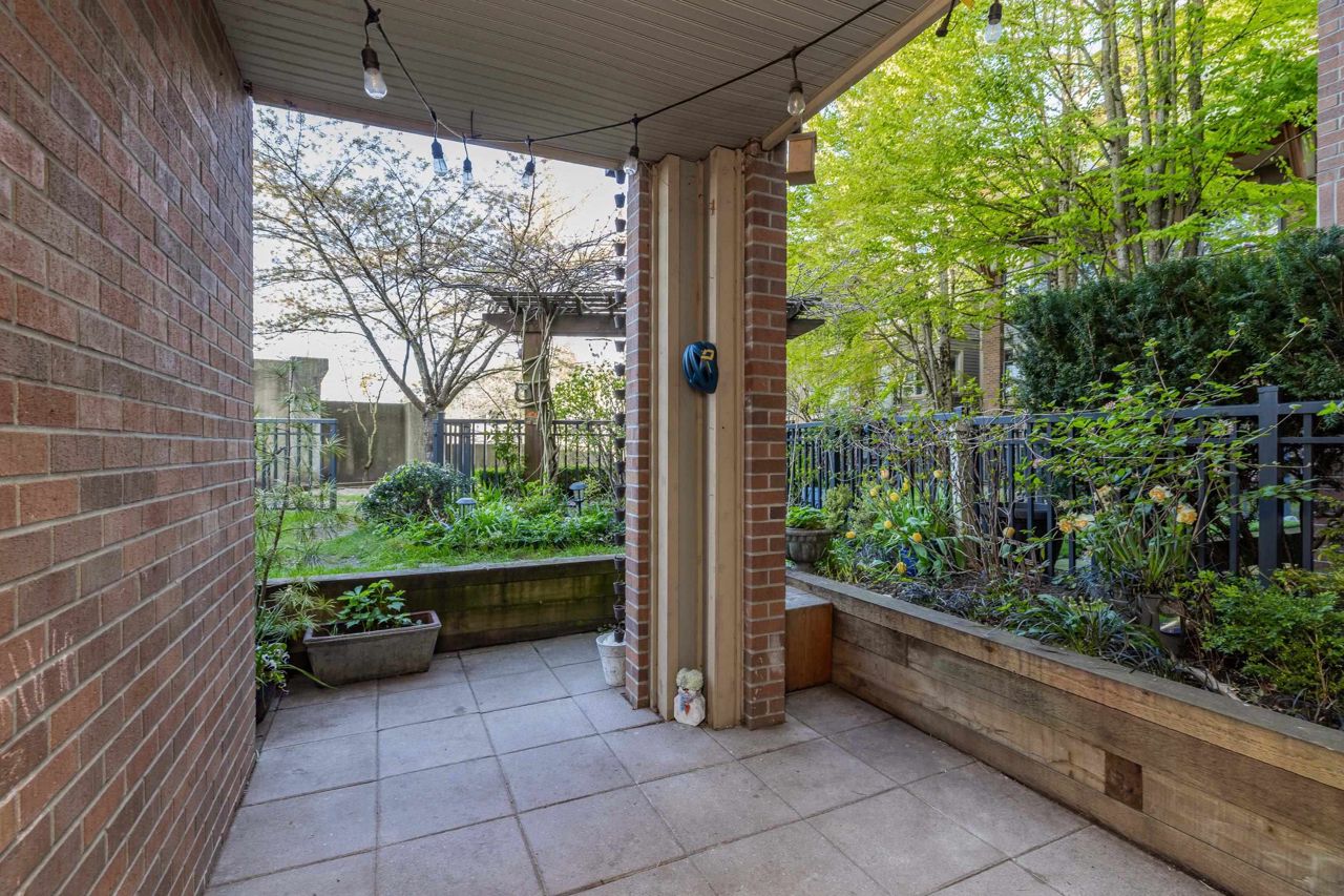 Live like you’re in a townhome in this above-ground main-floor 2 bed/2 bath home, perfectly tucked beside Heywood Park & MacKay Creek. Enjoy 138 sq.ft of covered patio and a fenced garden ready for your green thumb. Inside, lofty 9-ft ceilings, oversized windows and warm laminate flooring set an inviting tone, while the open-concept kitchen with granite counters, stainless-steel appliances and breakfast bar keeps you connected to guests. Bedrooms are thoughtfully split for privacy; the primary boasts a walk-in closet, built-in desk nook and full ensuite. With in-suite laundry, secure parking, a storage locker and a pet-friendly strata, you’re just minutes to Capilano Mall, Capilano Elementary, local trails and transit. Bonus: Pay as you go wine cellar downstairs.