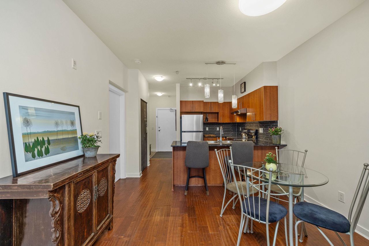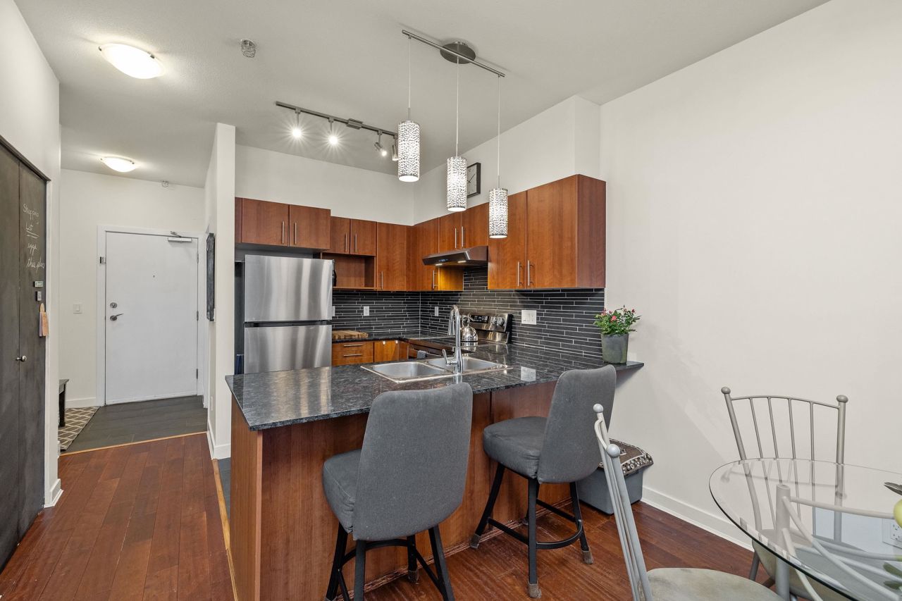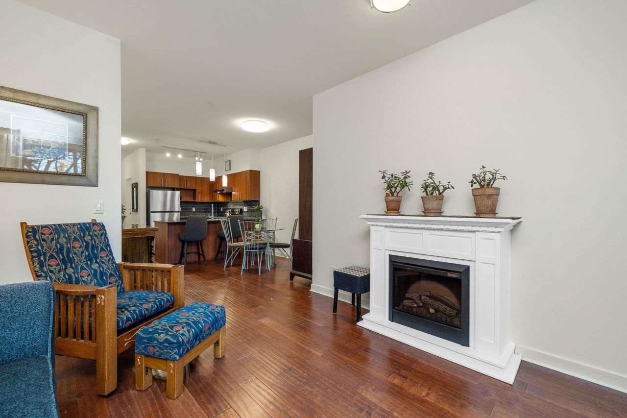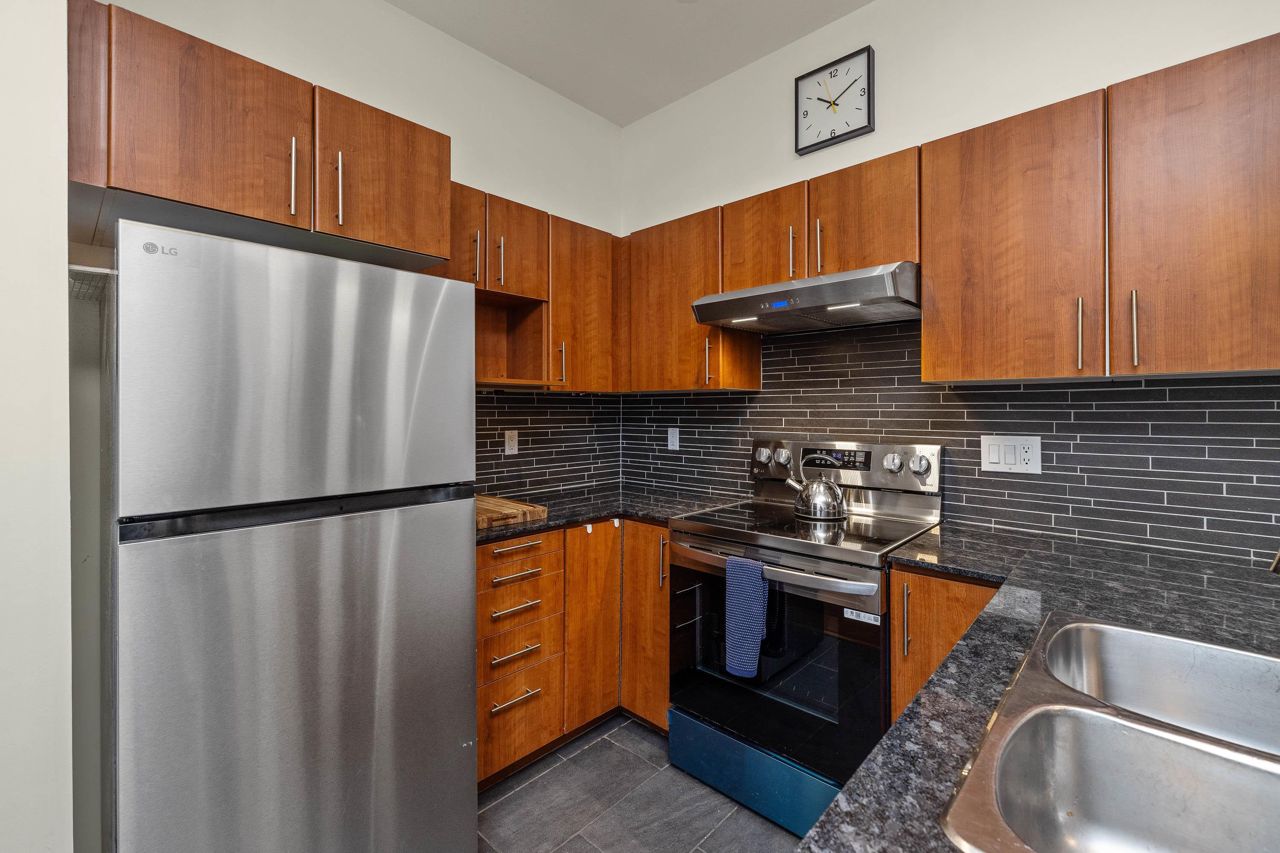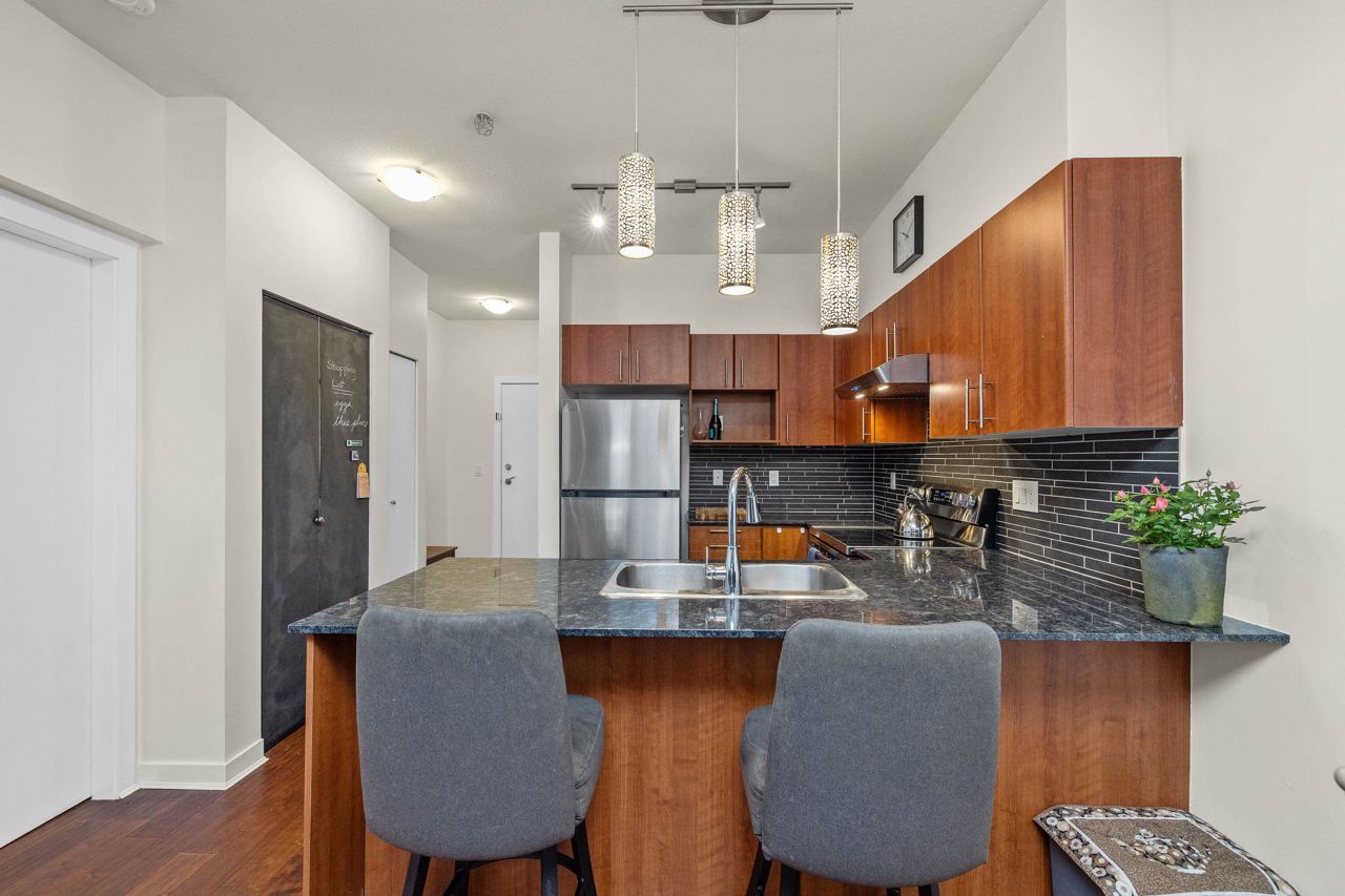 Live like you’re in a townhome in this above-ground main-floor 2 bed/2 bath home, perfectly tucked beside Heywood Park & MacKay Creek. Enjoy 138 sq.ft of covered patio and a fenced garden ready for your green thumb. Inside, lofty 9-ft ceilings, oversized windows and warm laminate flooring set an inviting tone, while the open-concept kitchen with granite counters, stainless-steel appliances and breakfast bar keeps you connected to guests. Bedrooms are thoughtfully split for privacy; the primary boasts a walk-in closet, built-in desk nook and full ensuite. With in-suite laundry, secure parking, a storage locker and a pet-friendly strata, you’re just minutes to Capilano Mall, Capilano Elementary, local trails and transit. Bonus: Pay as you go wine cellar downstairs.