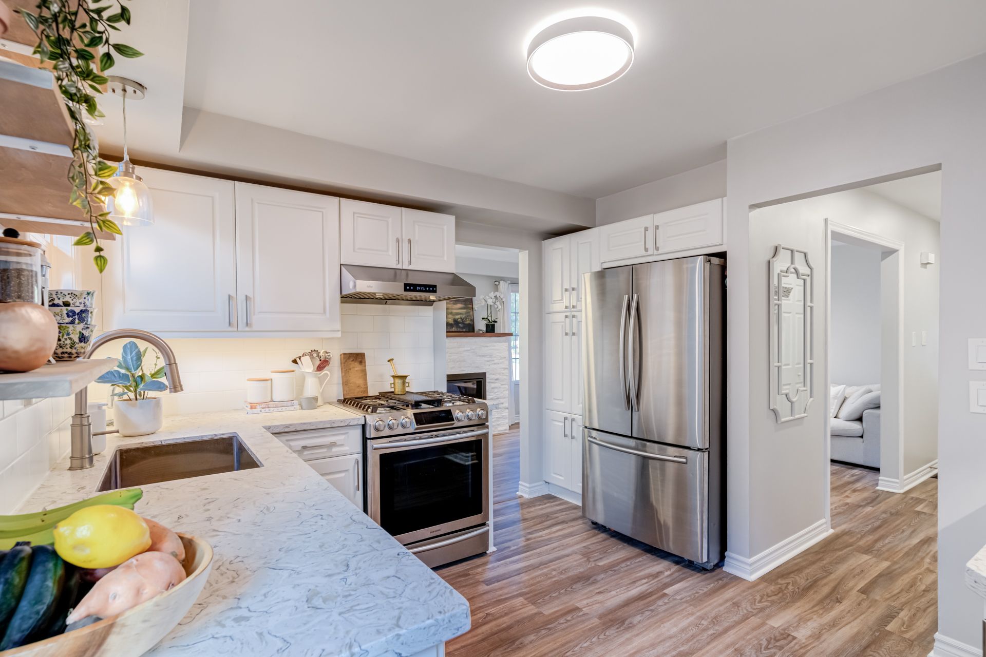 Step into this stunning, move-in ready 3 bedroom, 2 bathroom home and immediately envision your future here. Upon entry, you're welcomed by a charming brick-walled breezeway, providing convenient access to the backyard, the home and the insulated garage with a sleek, professionally installed epoxy floor. The open-concept living and dining area is a cozy gathering space, featuring a beautiful gas fireplace that invites relaxation. Tons of $$$ spent in upgrades/renovations. The heart of this home is the newly renovated kitchen, truly a chef's dream, boasting granite countertops, stainless steel appliances and a gas stove that makes cooking a true pleasure. Upstairs, the split-level layout ensures privacy for the bedrooms, along with a luxurious 4-piece bathroom featuring heated floors and elegantly tiled shower w/ bathtub. Downstairs, the finished basement offers a bright and airy living room, thanks to large above-grade windows that fill the space with natural light. You'll also find a second stunning bathroom, complete with a huge 8-foot wide tiled shower...A true spa-like retreat. Step outside to the backyard oasis, where $40k was invested in 2024 to create a perfect entertaining space for those who love to be outside. The expansive interlocking patio features a pergola and built-in landscape lighting, making it an ideal spot for hosting family and friends. The large fully fenced yard, mature trees, and beautiful gardens offer a serene escape from everyday life. With a newer roof, windows, paved driveway, spray foam insulated garage, and a long list of recent upgrades, this property offers a turn key ready to move in home for your and your family. Whether you're relaxing indoors or enjoying the meticulously designed outdoor spaces, this home is ready for you to create lasting memories. Book your showing today and don't skip this one!$40k spent 2024 Outside! Turn Key Renovated Home w/ Stunning Brick Wall Breezeway, Large Fully Fenced Private Lot, Large Crawlspace For Storage. For Car Lovers -> Garage Hoist is Negotiable.