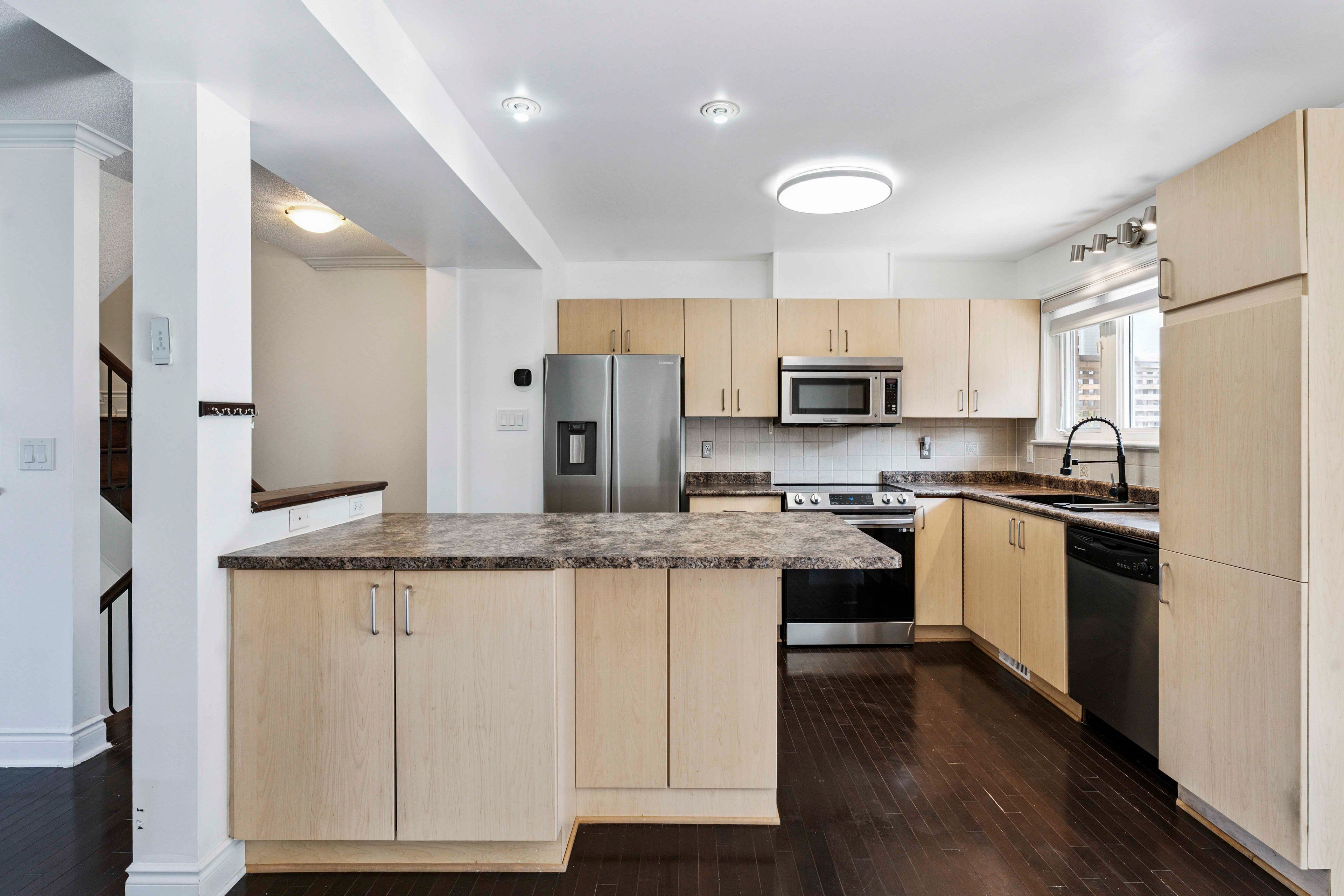 欢迎来到这栋经过精美装修的三卧三卫联排别墅,这里没有前栋遮挡,坐拥宁静公园景观。位于备受追捧的Leslie Park社区,这套拎包入住的住宅完美适合家庭、首次购房者或投资者。开放式主层铺着光洁的硬木地板,配备明亮现代化的厨房,拥有充足的橱柜空间、不锈钢电器和超大的半岛式料理台。宽敞的起居和用餐区通向私人露台,是夏日聚会的理想场所。楼上三间宽敞卧室全部铺设崭新地板,主卧配备三件套独立卫浴和双衣柜。下层设有多功能娱乐室或办公空间,配有角落燃气壁炉、洗衣房、第三间全套卫浴,并直通地下停车场——冬季再也不用铲冰除雪!全面粉刷的墙面配合下层及二层全新铺设的地板,真正实现即住即享!