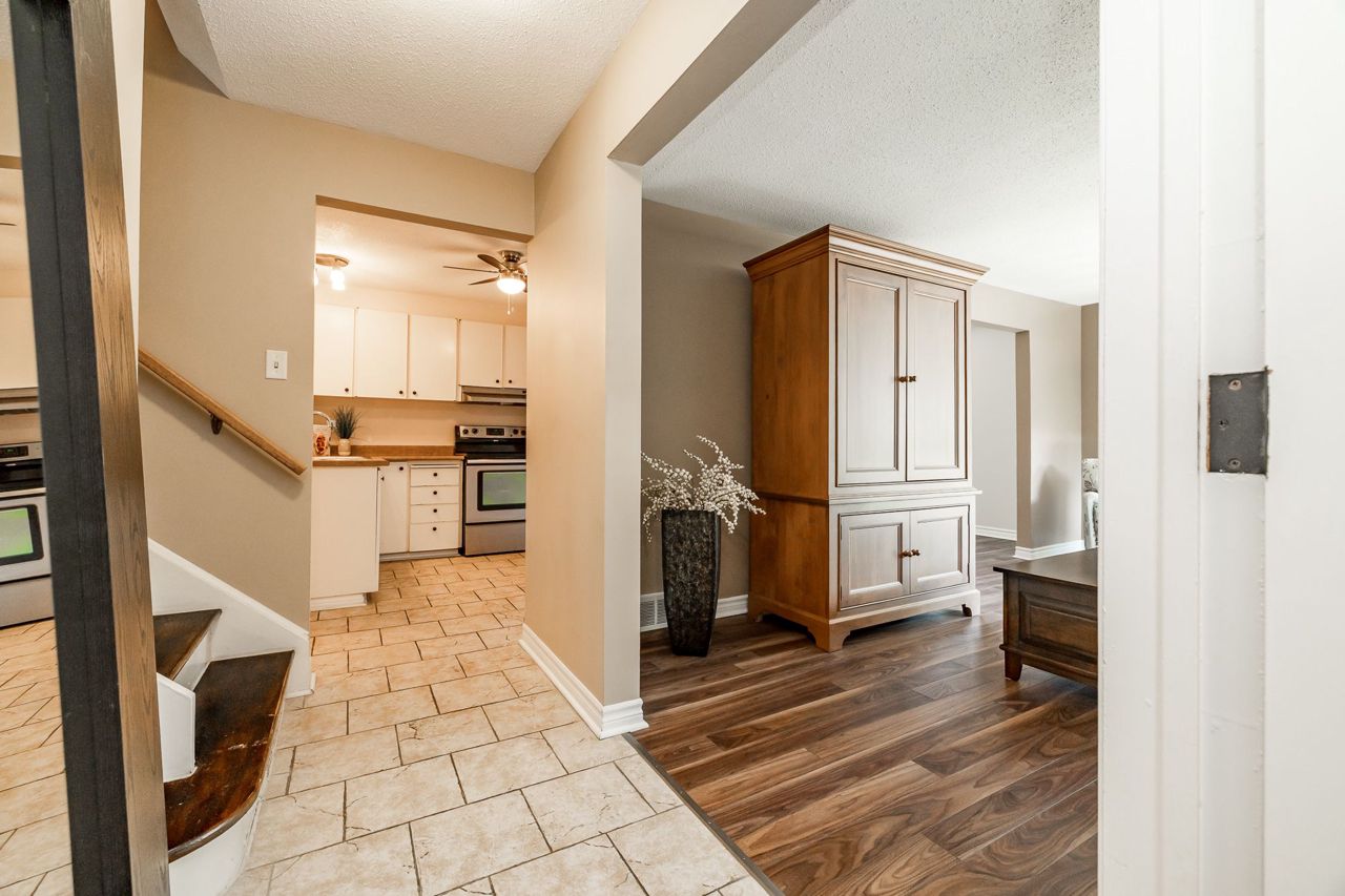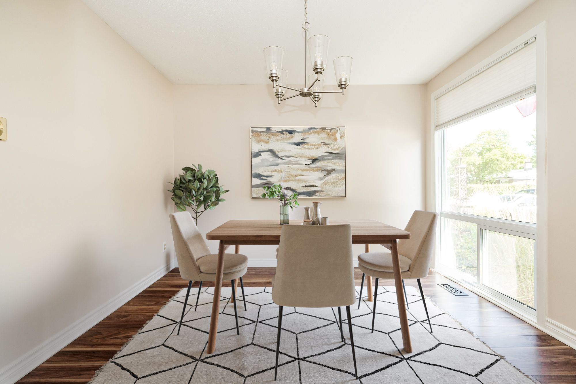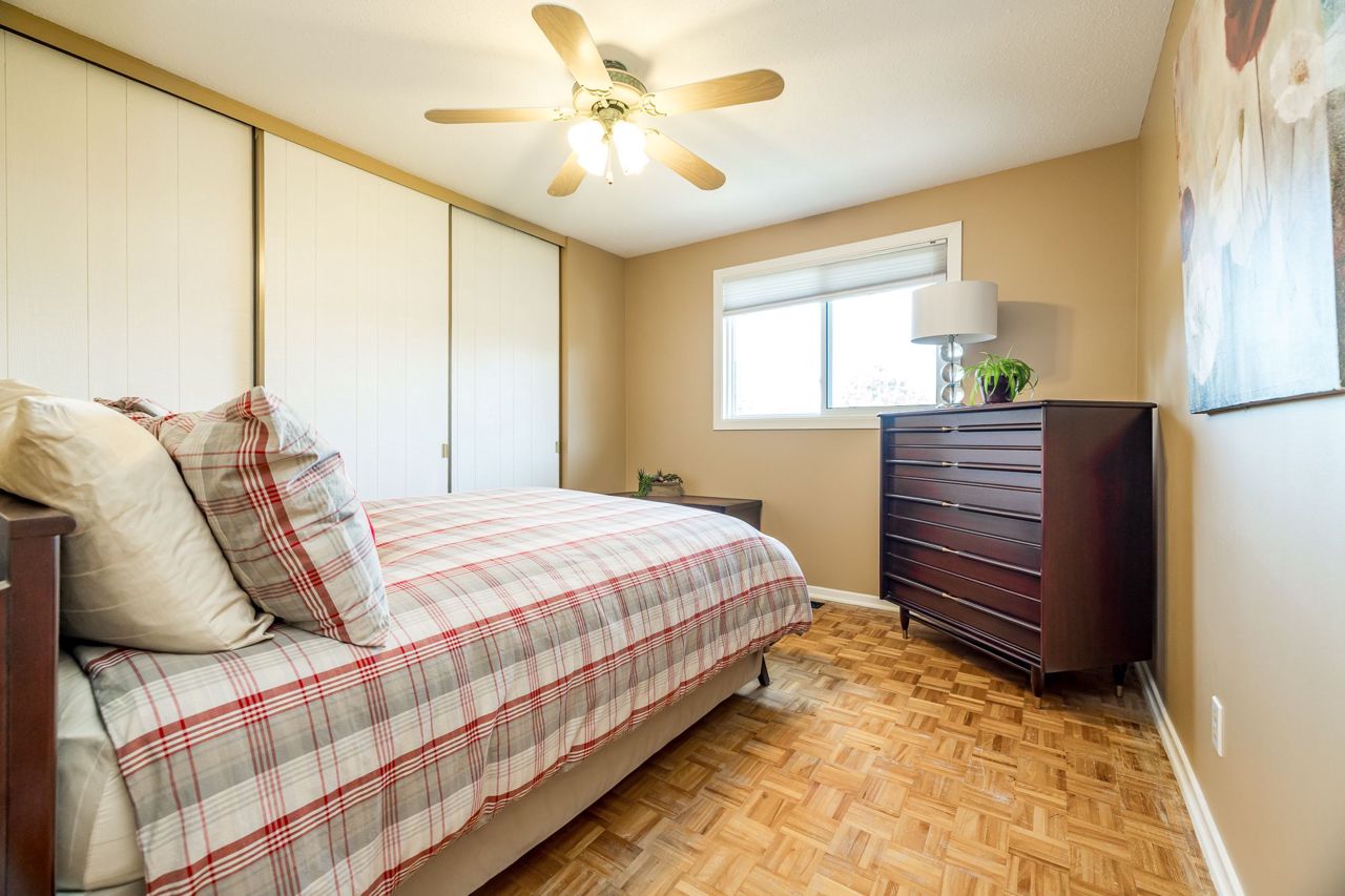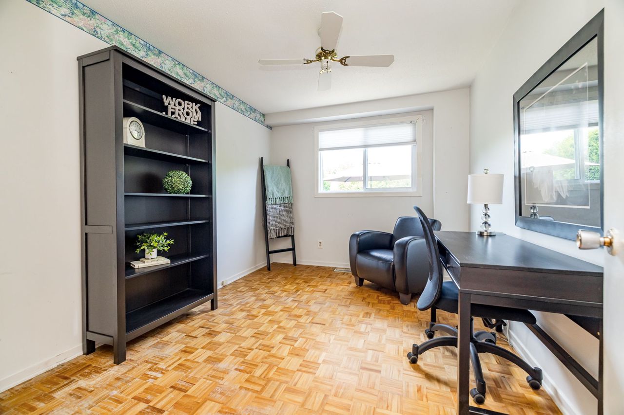 Welcome to this well-appointed and meticulously maintained back-split semi-detached home is in a prime location close to shopping, schools, parks, and transit. Bright and inviting, this property offers three spacious bedrooms on the upper level and a fourth on the main floor, ideal for an in-law suite, home office, or den. The main level features a formal living room and dining room with large windows for abundant natural light. The family room with a wood burning fireplace, creates a cozy environment for relaxing. Through patio doors, step outside to your expansive deep lot where you can enjoy beautifully landscaped gardens bordered by a mature cedar hedge, providing privacy and a serene setting. With its functional layout, excellent condition, and unbeatable location, this home is move-in ready and perfect for a variety of lifestyles.