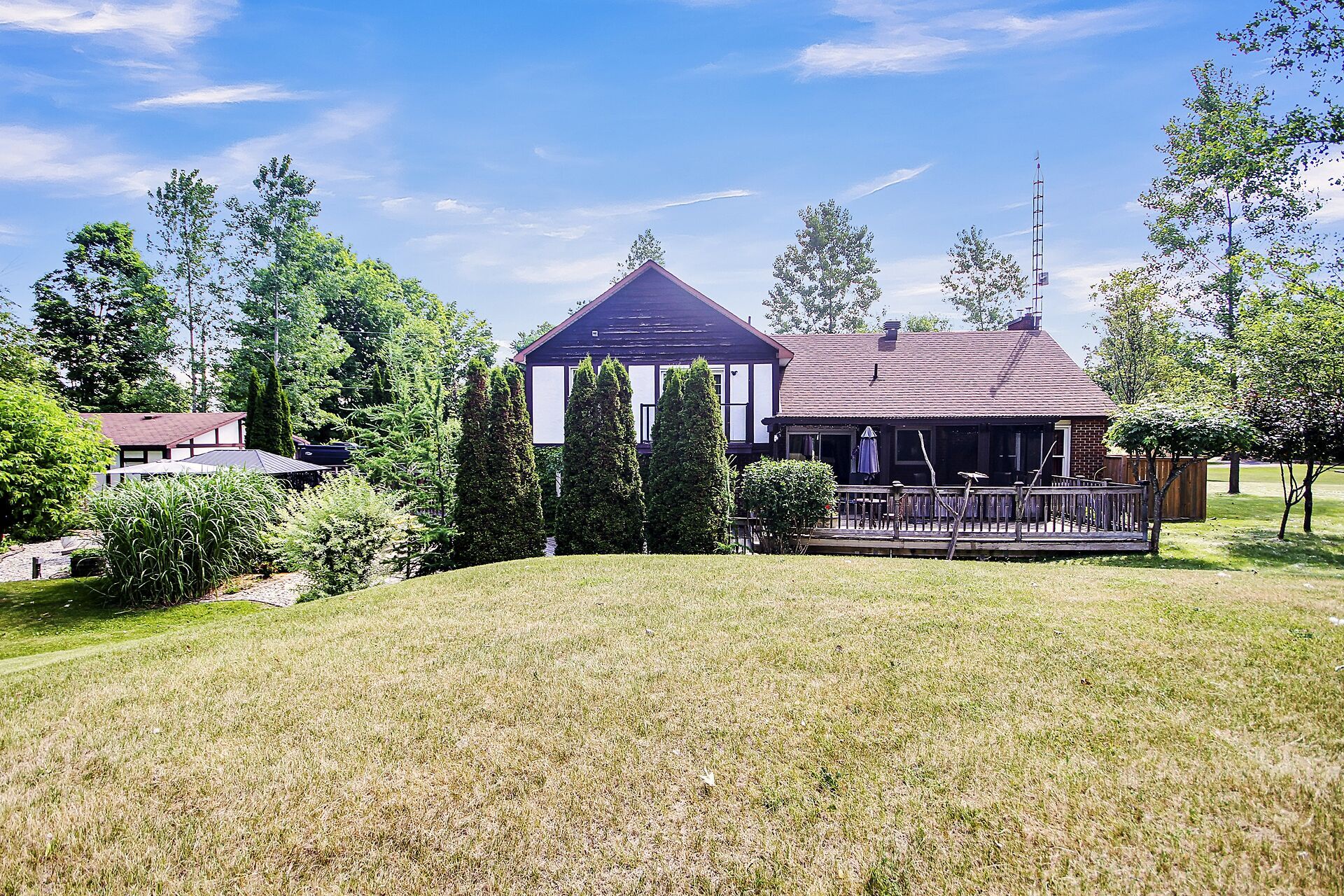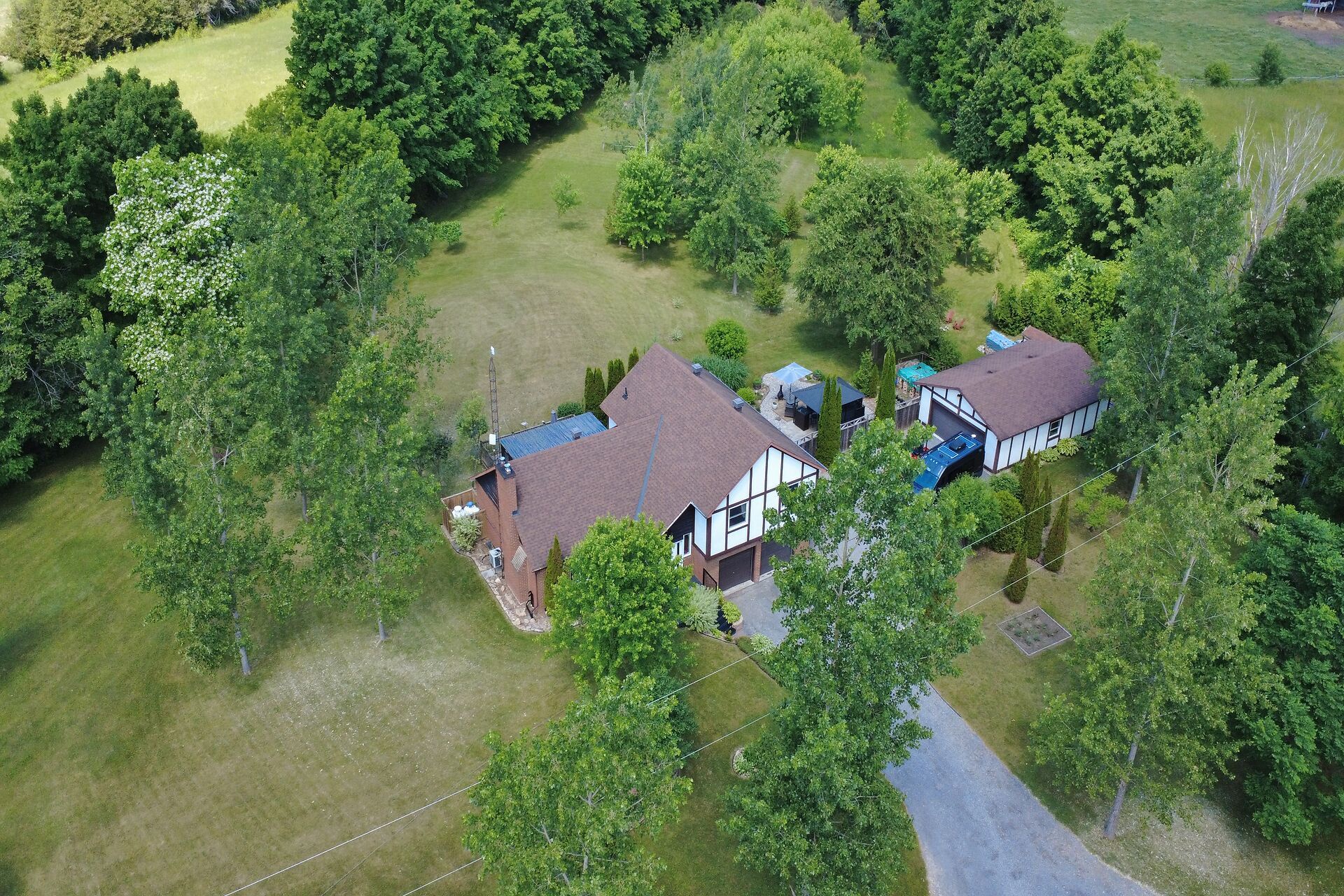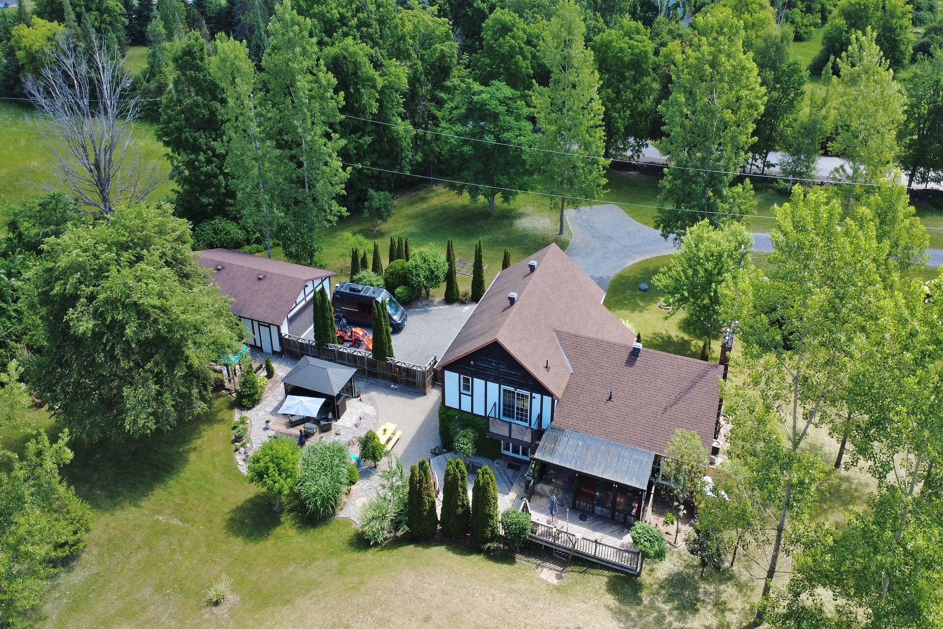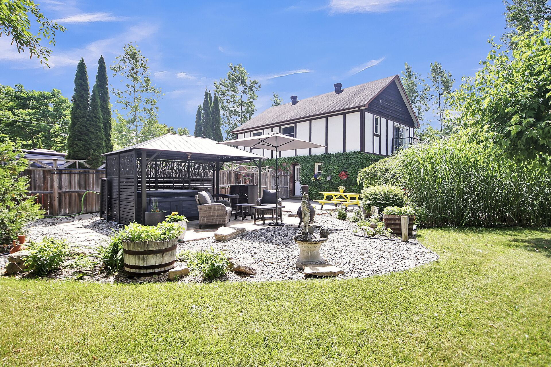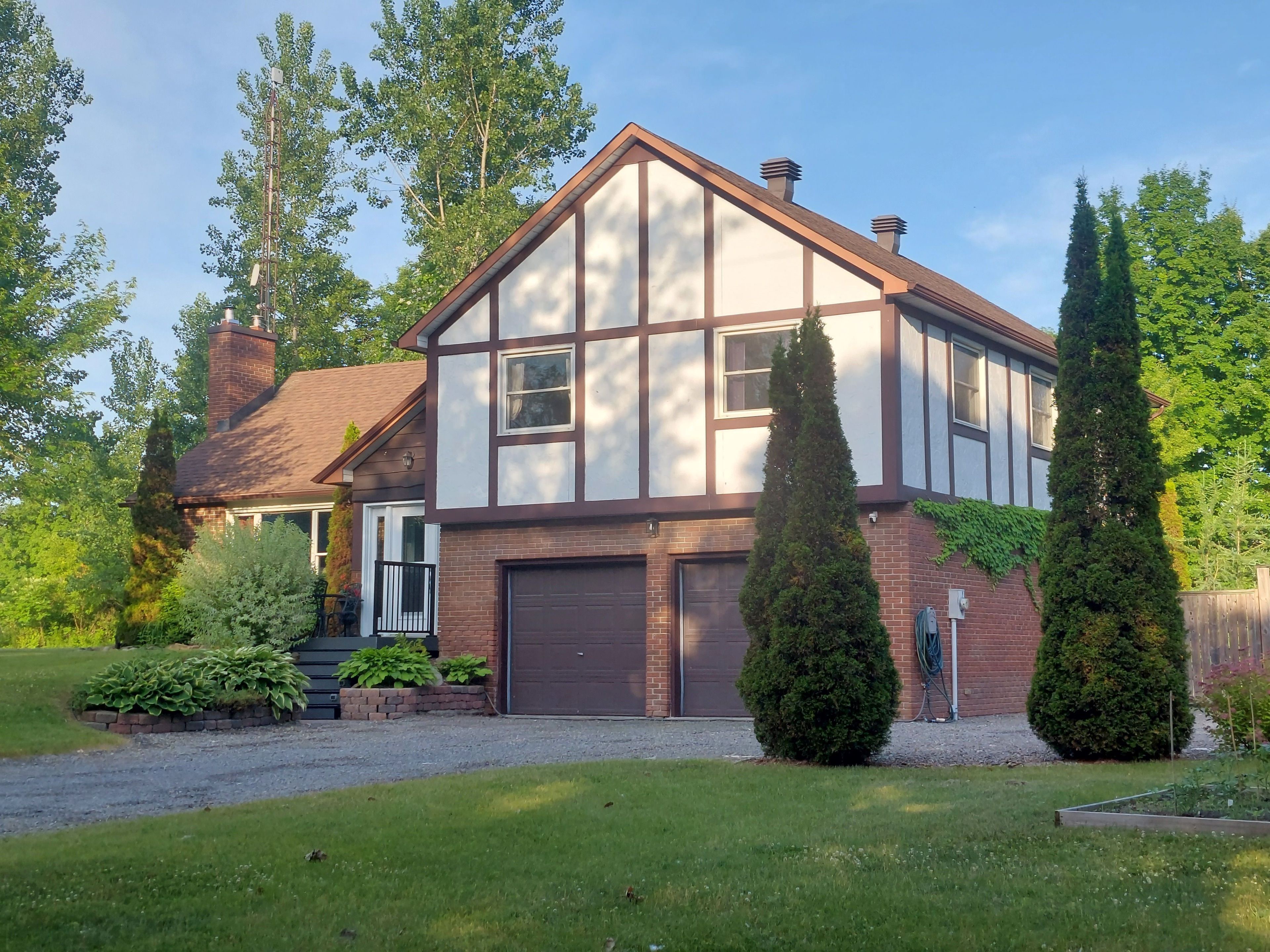 Charming Tudor-Style Country Home on 3.7 Acres. Discover timeless elegance and peaceful rural living in this beautifully maintained Tudor-style home, nestled on 3.7 private acres behind a rustic stone wall just outside North Gower. This 4-bedroom, 3-bathroom residence offers a perfect blend of classic character, modern updates, and serene outdoor spaces ideal for families and nature lovers alike. Step inside to find a spacious and inviting interior featuring a mix of rich oak hardwood and ceramic flooring throughout. The main living areas are designed for both comfort and entertaining, highlighted by a wood-burning fireplace insert granite kitchen counter tops and generous natural light.All 4 bedrooms are all on the second level. The master bedroom features an en-suite, walk-in closet and a composite/glass balcony that overlooks the beautifully landscaped back yardOn the main floor, there is a large mudroom with convenient laundry and 2 piece bathroom. The mudroom provides direct access to the 2 car integral garage and rear patio area.The fully finished basement provides ample additional living, workshop, exercise and storage space and could be readily converted to separate in-law suite with its own separate access door.To the rear of the property there is a stunning 46 ft x 20 ft tiered deck and screened-in room and an expansive interlock patio area which includes a large gazebo and hot tub (both installed in 2022), providing the ultimate space for private outdoor relaxation.The property also features an expansive driveway and parking area as well as a fully insulated detached 36 ft x 24 ft garage / workshop, which provides ample space for all your vehicle and toy storage needs.Located just minutes from the amenities of North Gower and with easy access to Ottawa and highway 416, this exceptional property offers the rare opportunity to enjoy country living with comfort and style.