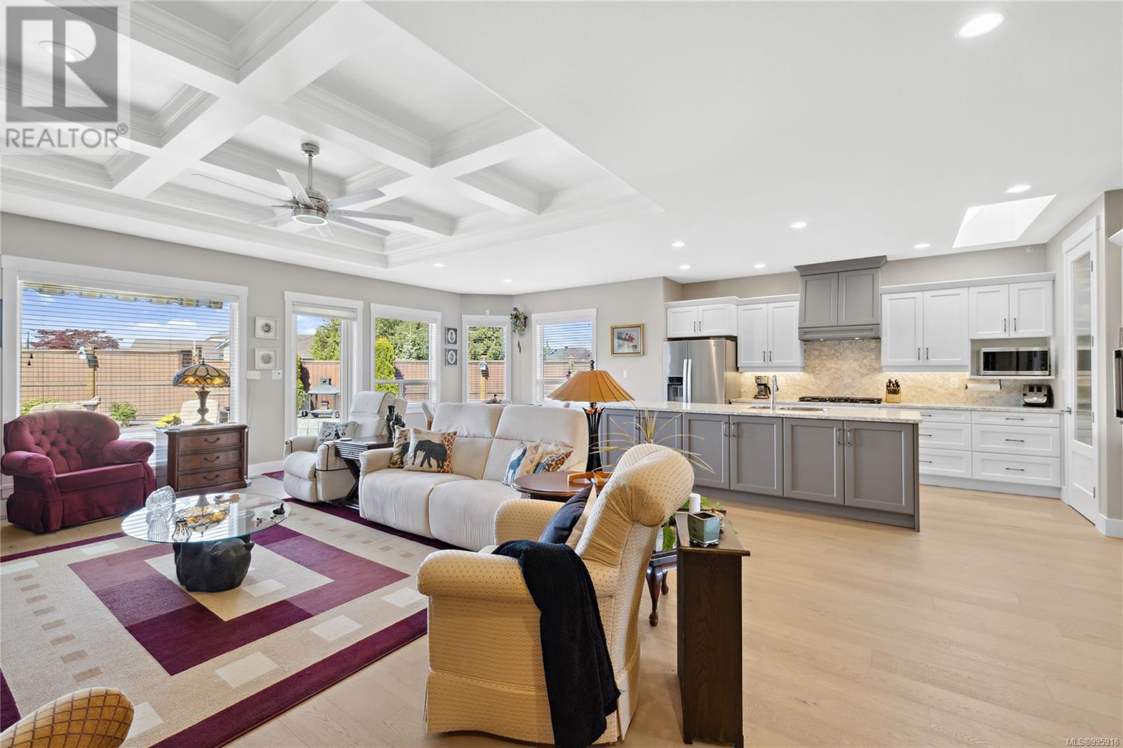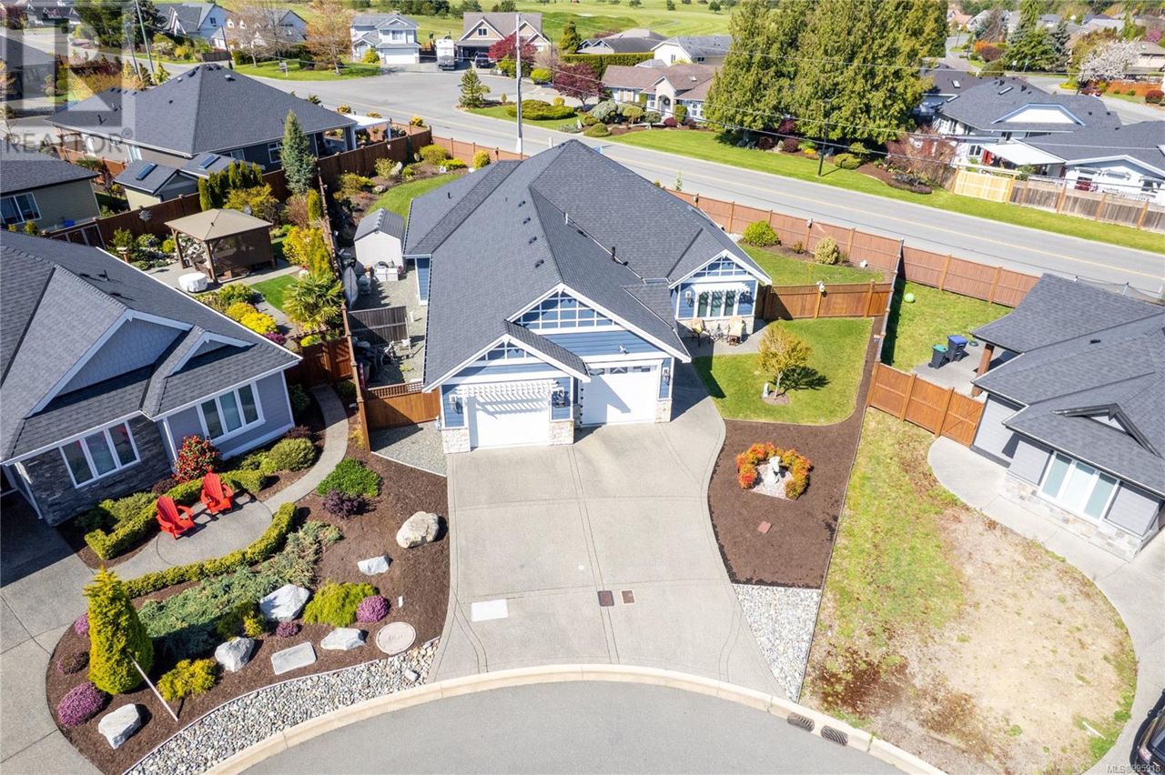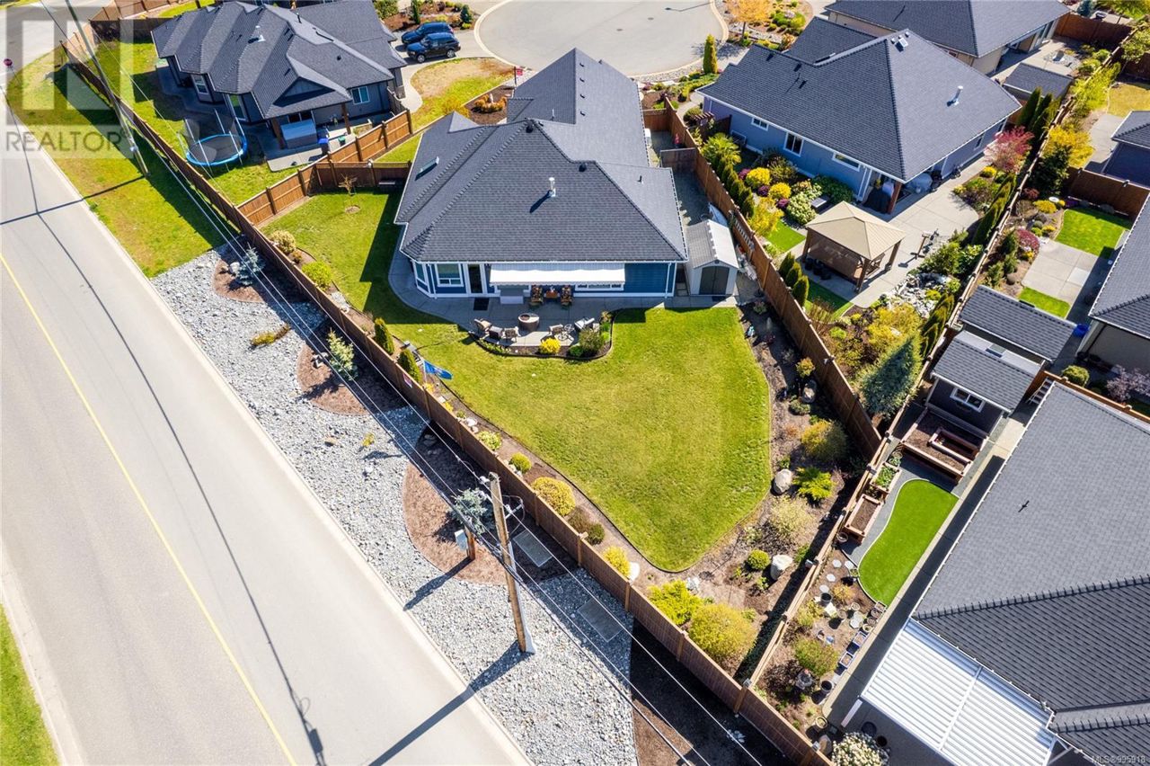 OPEN HOUSE SATURDAY May 17, 11-2. This 5.5-year-old custom-built Windward home exemplifies quality and sophistication, featuring all the amenities expected of a property of this caliber. Situated in the picturesque Mountain View Estates, it is just minutes away from all the attractions and conveniences of the Oceanside area. Spanning 1,998 sq. ft., this home boasts an array of features. Upon entering, you are welcomed by a bright and spacious great room with coffered ceilings, Mount Arrowsmith views, stone fireplace and a well-appointed kitchen with an oversized island, walk in pantry, wall oven and stainless steel appliances. The primary bedroom has an huge walk-in closet and a luxurious ensuite with heated floors. The floor plan also features a second bathroom, two additional bedrooms, and a laundry room. The double garage is extra deep and is divided into two separate spaces with electric car charger and epoxy floors. A beautiful, landscaped, fully fenced yard includes a shed and on demand generator. (id:61201)