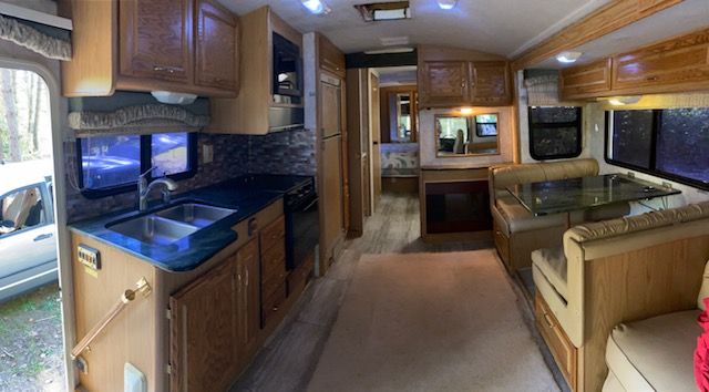 此房车包含在总售价中,三年前已通过安全检测,可容纳6人居住,客厅配备拓展舱。卫生间设有马桶、洗手池及淋浴设施。屋顶为全新钢质结构。厨房配备三能源冰箱、丙烷炉灶及实心台面。双丙烷供暖系统。车顶装有100瓦太阳能板的发电机。五年前车内进行过全面软装翻新,非常适合在您建造住宅或度假屋期间作为三季居住使用。