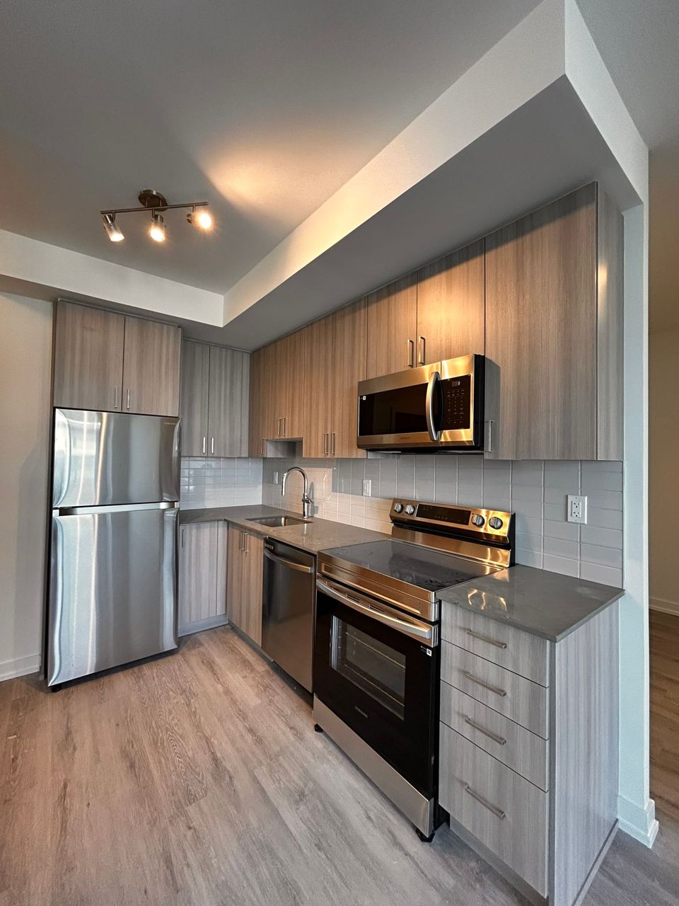 Discover unparalleled living in this pristine, move-in-ready UC3 unit, offering an exceptional combination of style, convenience, and prime location! Nestled in the dynamic core of Pickering, this brand-new, never-occupied unit boasts chic, contemporary design throughout. The interior features sleek modern flooring, spacious, beautifully finished , a bright open-concept kitchen equipped with built-in appliances, quartz countertops, design cabinetry, an oversized sink, and a stylish backsplash. Step out onto the generously sized balcony to enjoy tranquil views in a highly desirable layout. Situated just steps from a variety of shops, schools, and restaurants, this property also offers quick access to highways 401, GO train etc. Perfect for commuting. This project is a perfect blend of comfort and practicality. Residents can also enjoy first-class building amenities, including an exercise room, party room, guest suites and more.