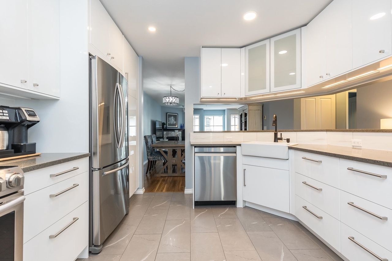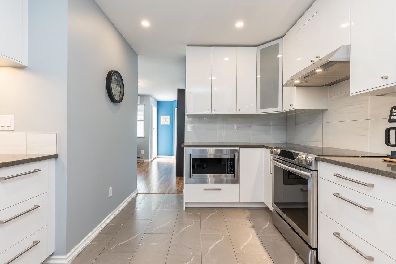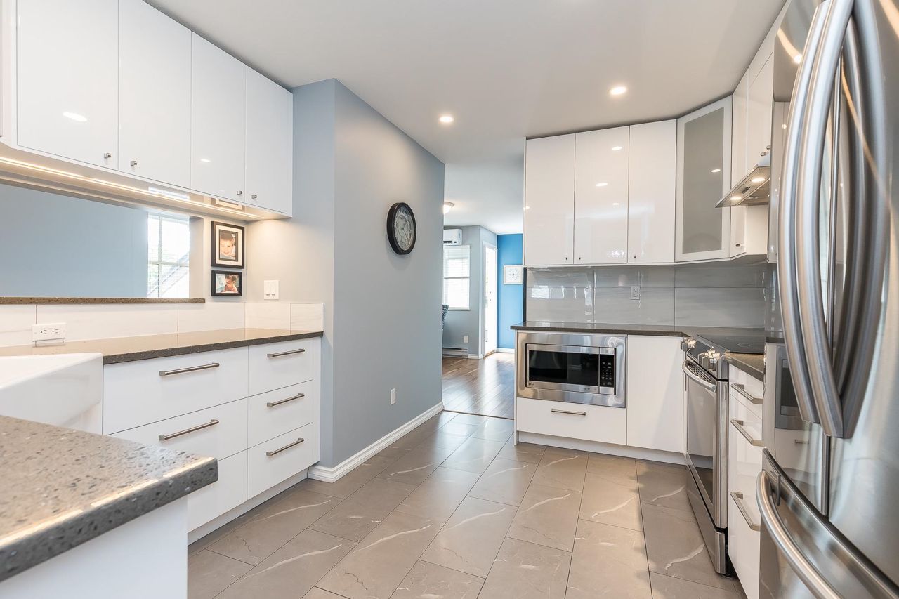 Beautifully updated top-floor townhouse in a family-friendly location. This renovated & air conditioned home features bright, open living with thoughtful updates throughout. Inside you’ll find a stylish kitchen with full-height cabinetry & quartz counters. The bathrooms have been tastefully renovated & include heated tile floors. The spacious living room is perfect for relaxing or entertaining & there’s even a flex area for working from home. The west-facing deck is great for hosting friends or enjoying a quiet evening. The primary suite includes a beautiful ensuite with a walk-in shower. The side-by-side double garage is a rare bonus. The location offers unbeatable convenience—just steps to schools, parks, trails, shopping, local eateries & even your favourite neighbourhood pub & brewery!