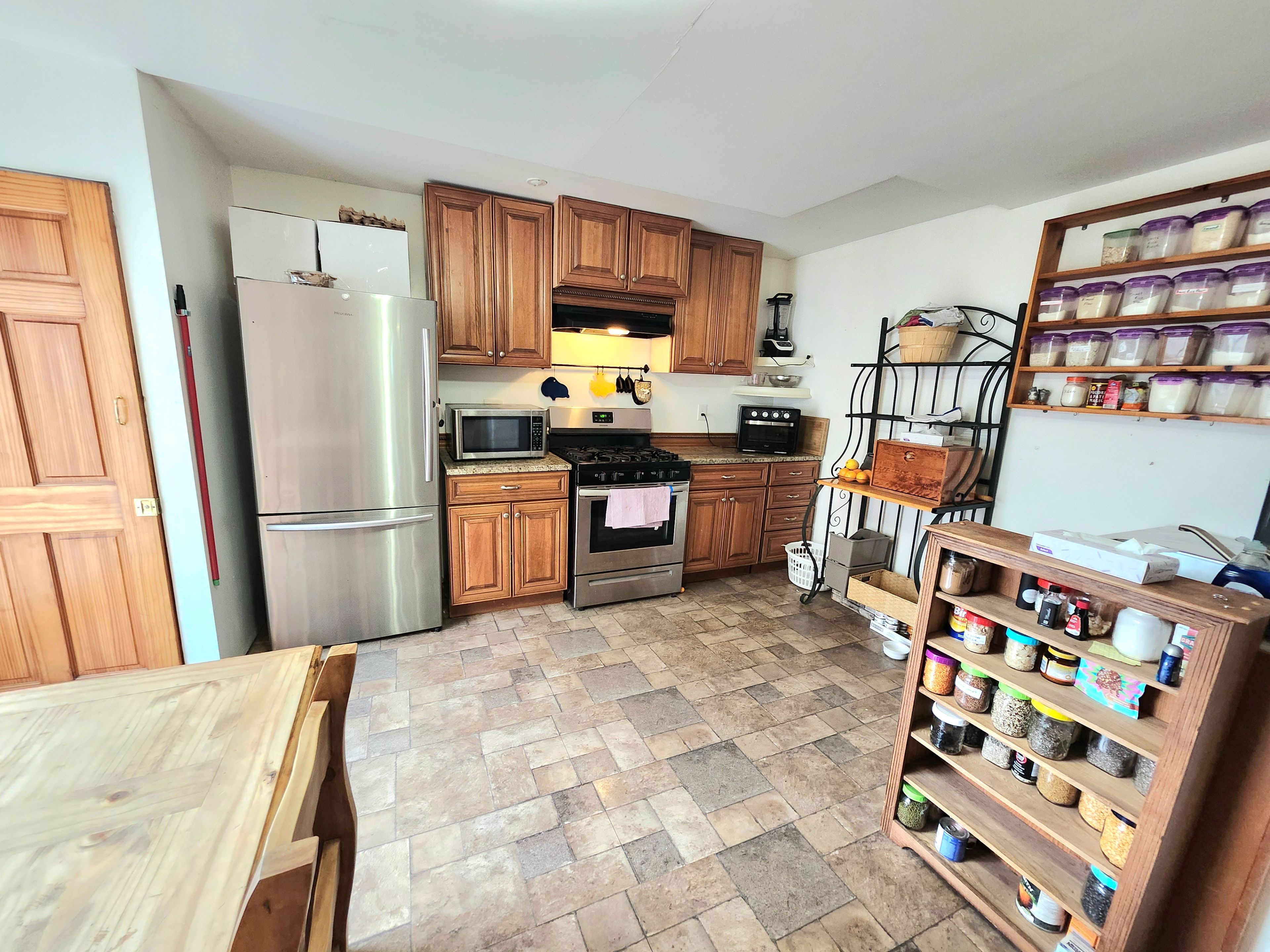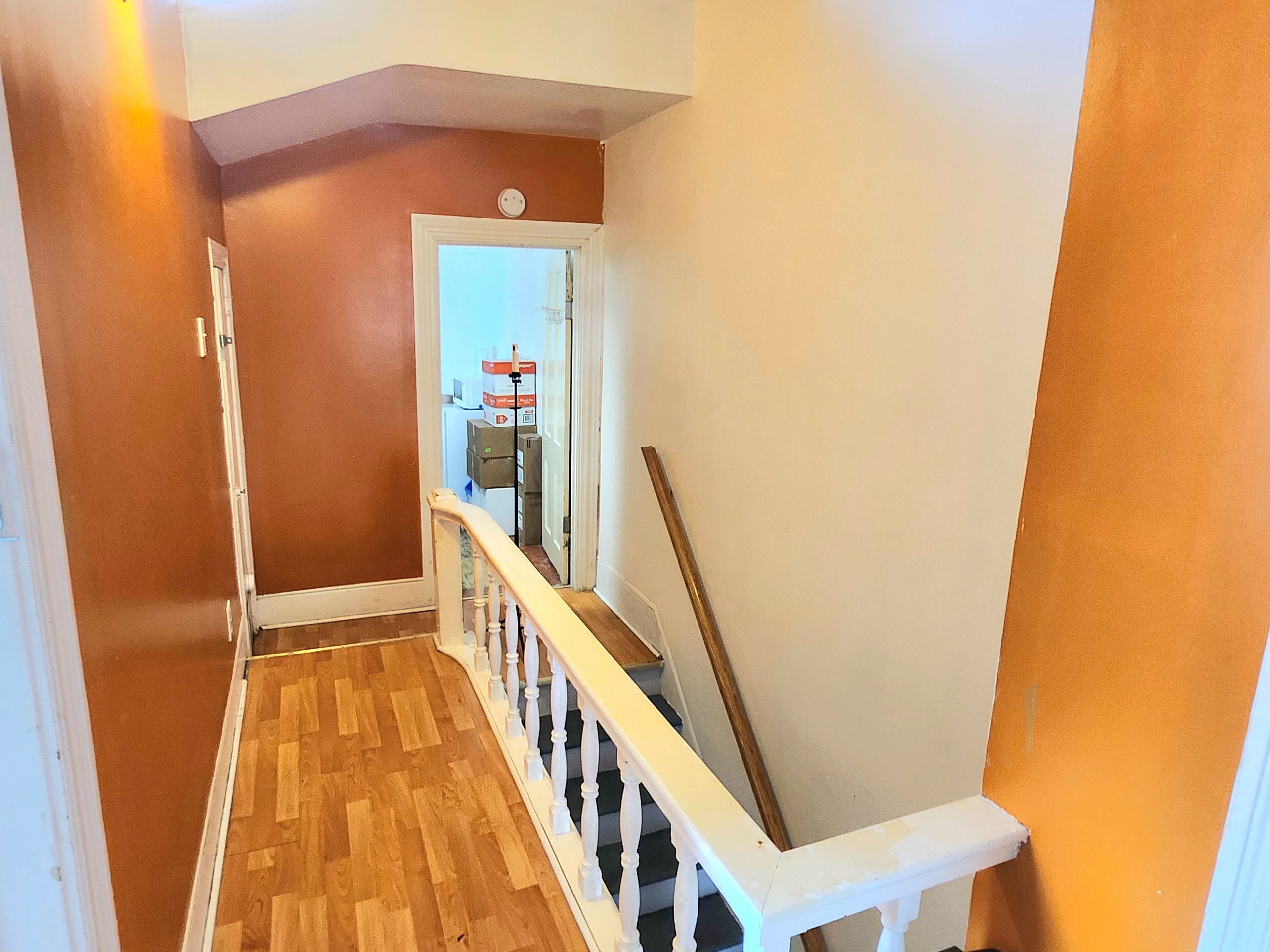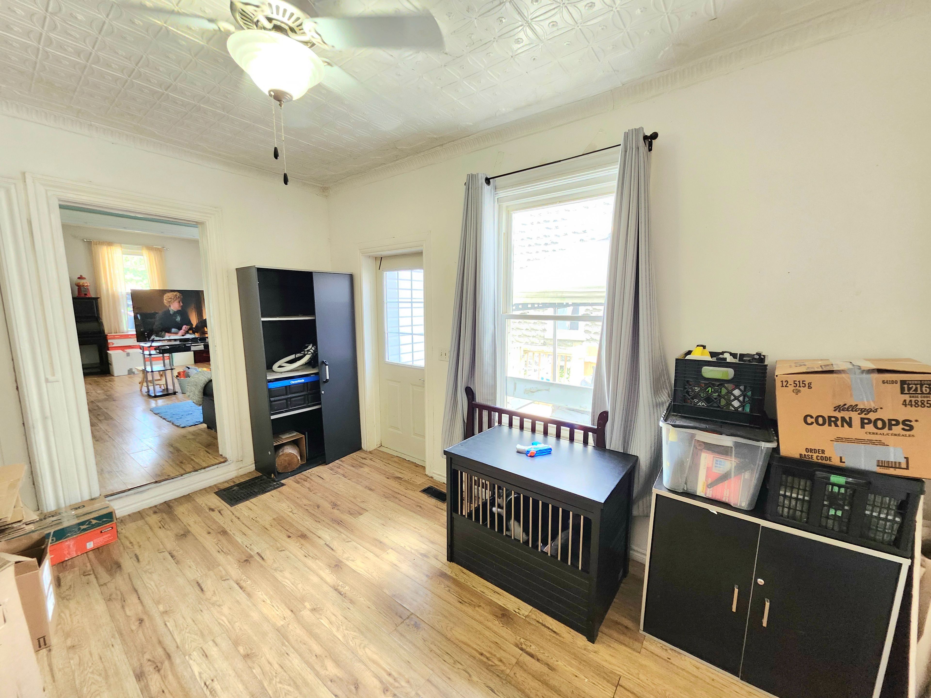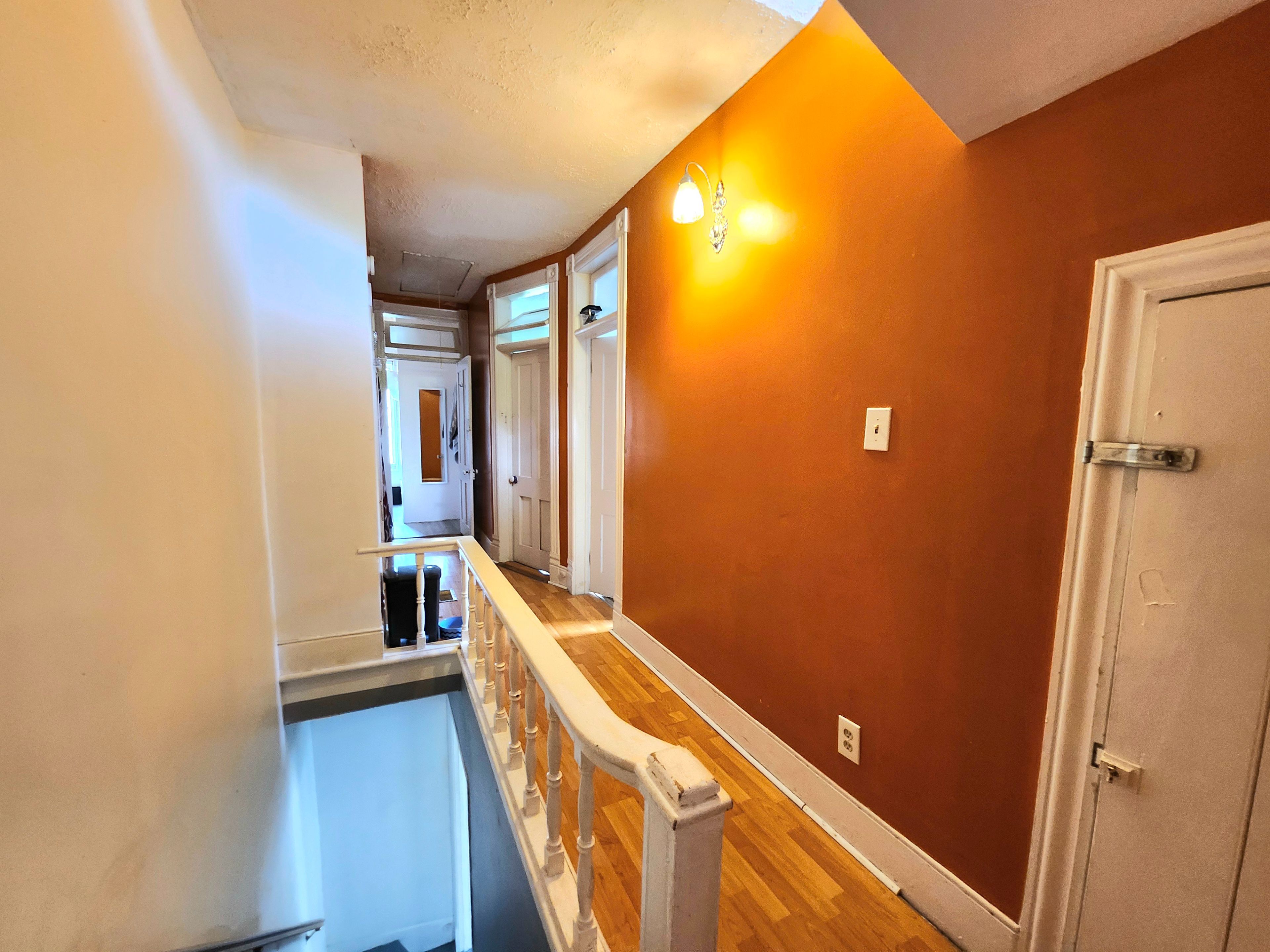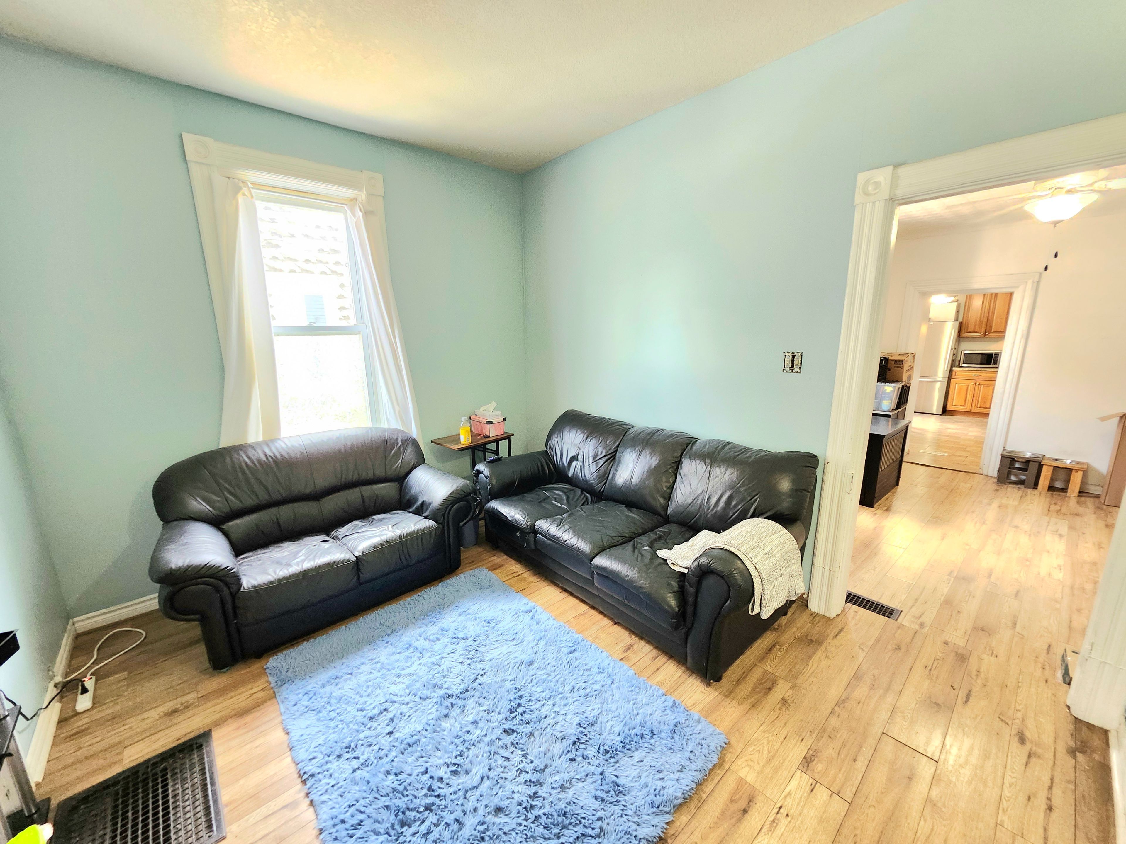 Spacious 3+1 bedroom semi-detached home in the heart of downtown Prescott. This solid brick home features double living areas on the main floor, a separate dining room, and an eat-in kitchen with patio doors leading to a side deck, perfect for outdoor dining. The kitchen also includes a rough-in for a future bathroom or main floor laundry. Upstairs, there are two bedrooms and a full bath in addition to the large primary bedroom, which offers a 4-piece. ensuite bath and a bonus room ideal for a den, office, or nursery. Two full bathrooms, an updated electrical panel, and forced air heating provide comfort and efficiency. The fenced rear yard features a spacious storage shed and ample space to enjoy the outdoors. Conveniently located close to schools, shops, and the St. Lawrence River. Windows updated (2015), back roof (2016), hot water tank owned (2016)