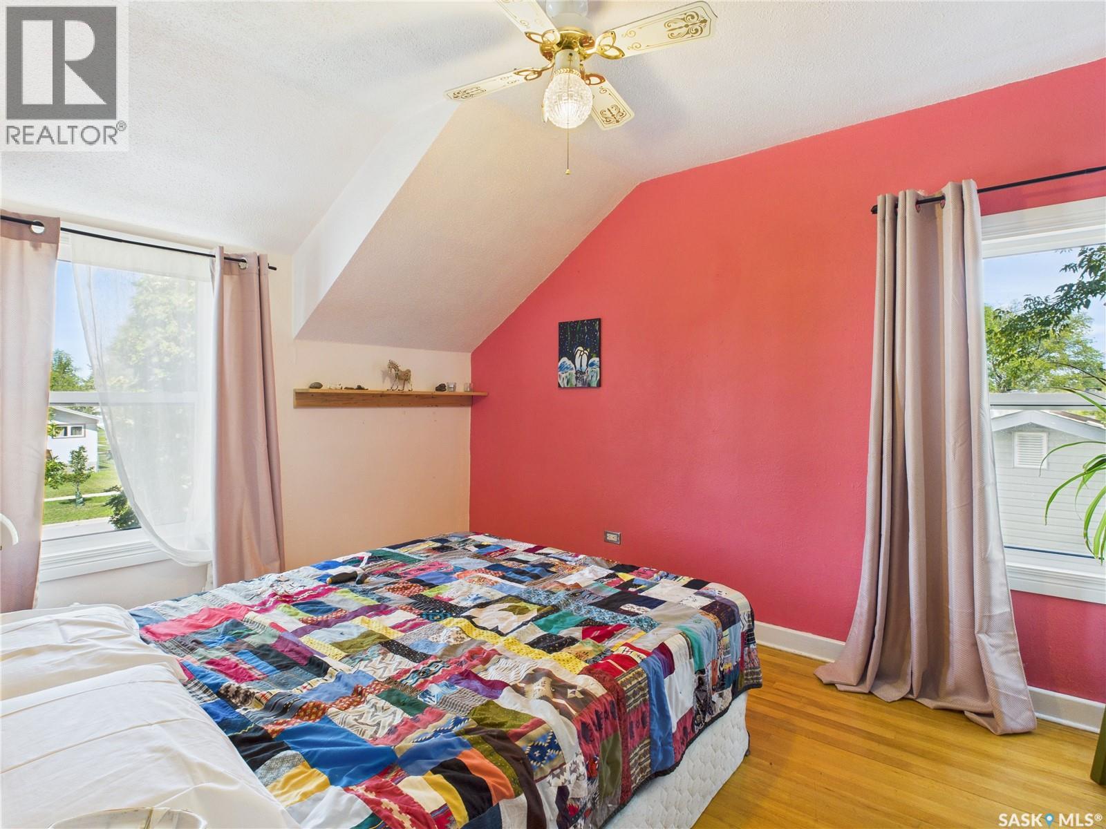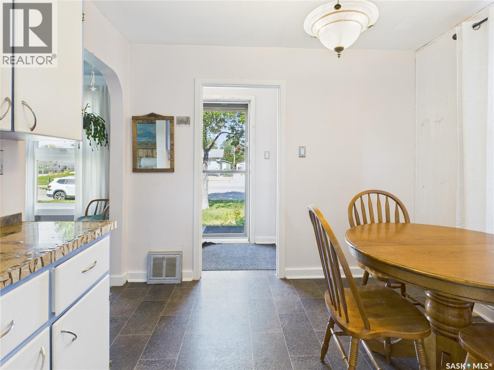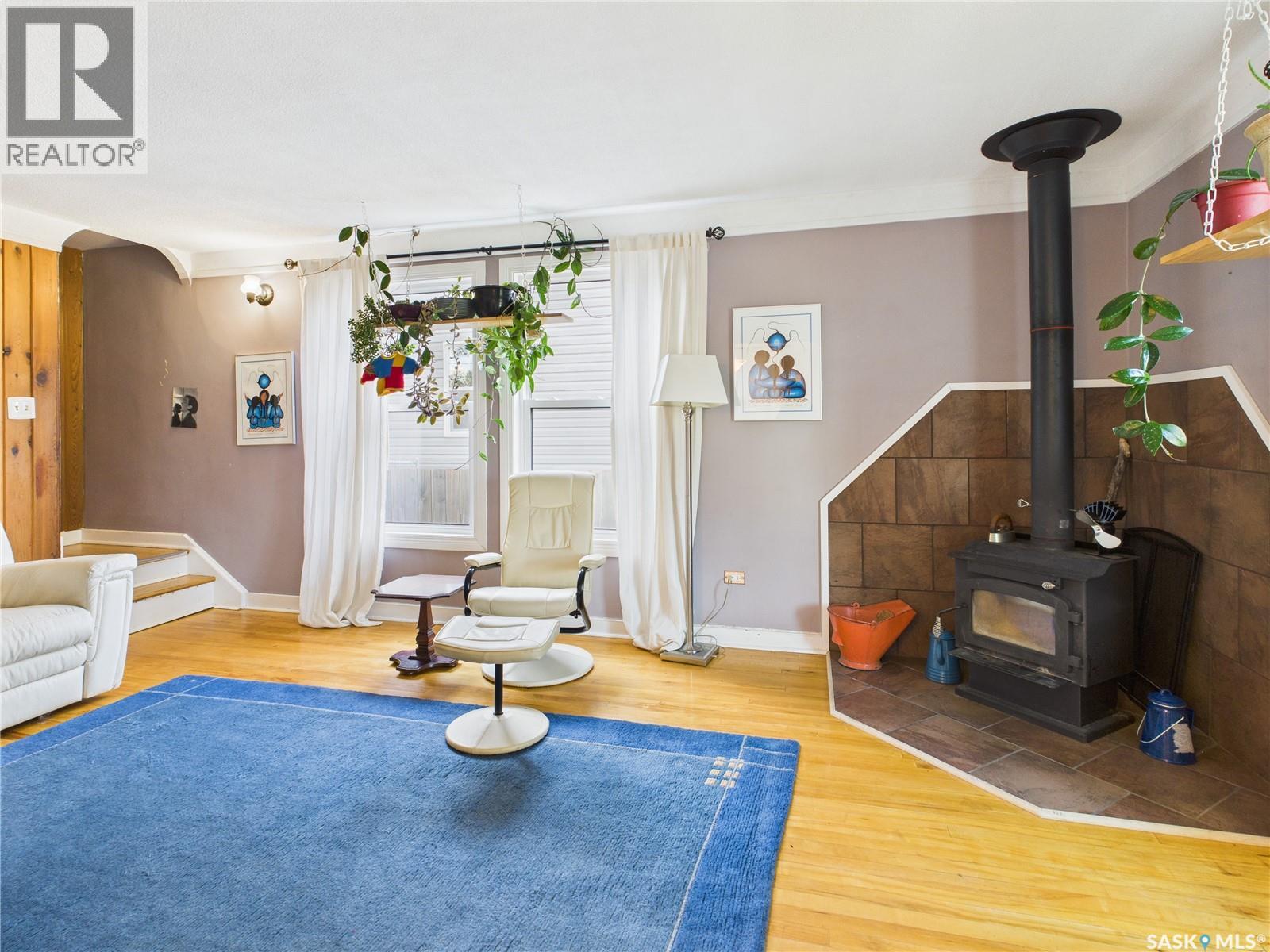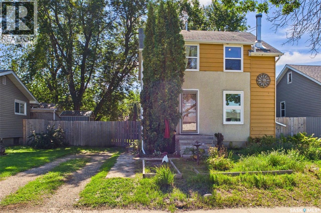 This charming 1 ¾ storey home in Westview is full of character, charm and warmth. With three bedrooms upstairs and 885 square feet of smartly designed living space, it’s the perfect fit for anyone wanting both charm and practicality. The main floor features arched doorways, hardwood floors in the living room, and a peek-through from the kitchen to the dining room that makes entertaining feel easy and connected - not to mention the wood stove for snuggling up on cold winter nights! Many of the windows have been upgraded in recent years, with the most recent being the living room window installed this spring. The large bathroom has all newer features, plus plenty of space to get ready each morning. Outside, the fully fenced yard is surrounded by mature trees and colourful wildflowers in the front garden, along with garden beds ready for herbs, vegetables, or more flowers. The location is ideal for those who love the outdoors, with the Rotary Trail just steps away for morning walks or evening bike rides. It also offers a quick and convenient commute to the Saskatchewan Penitentiary, making it an excellent option for those relocating to work there. With its character details and smart layout, this move-in ready (and oh-so-sweet!) home is ready to welcome its next owner. (id:61201)