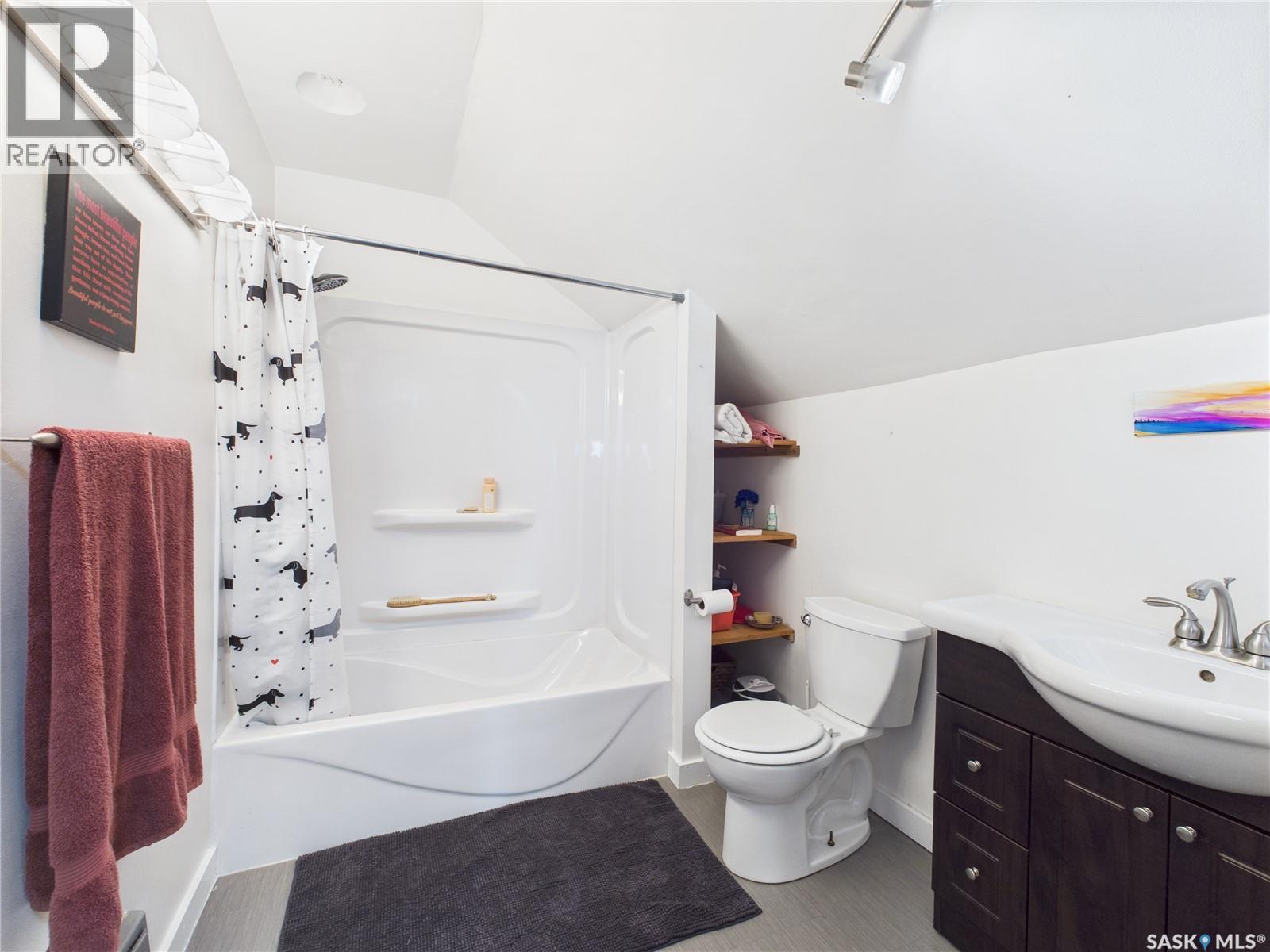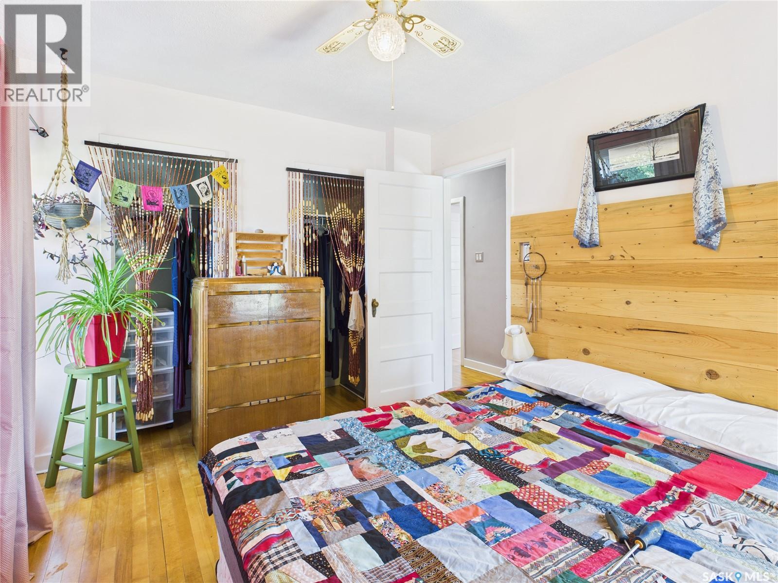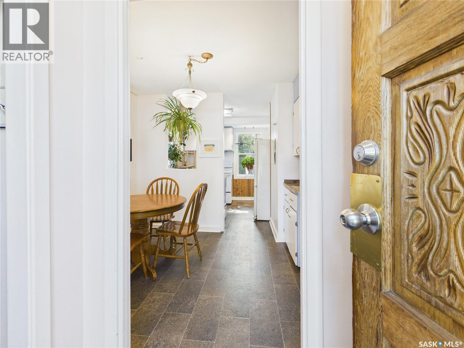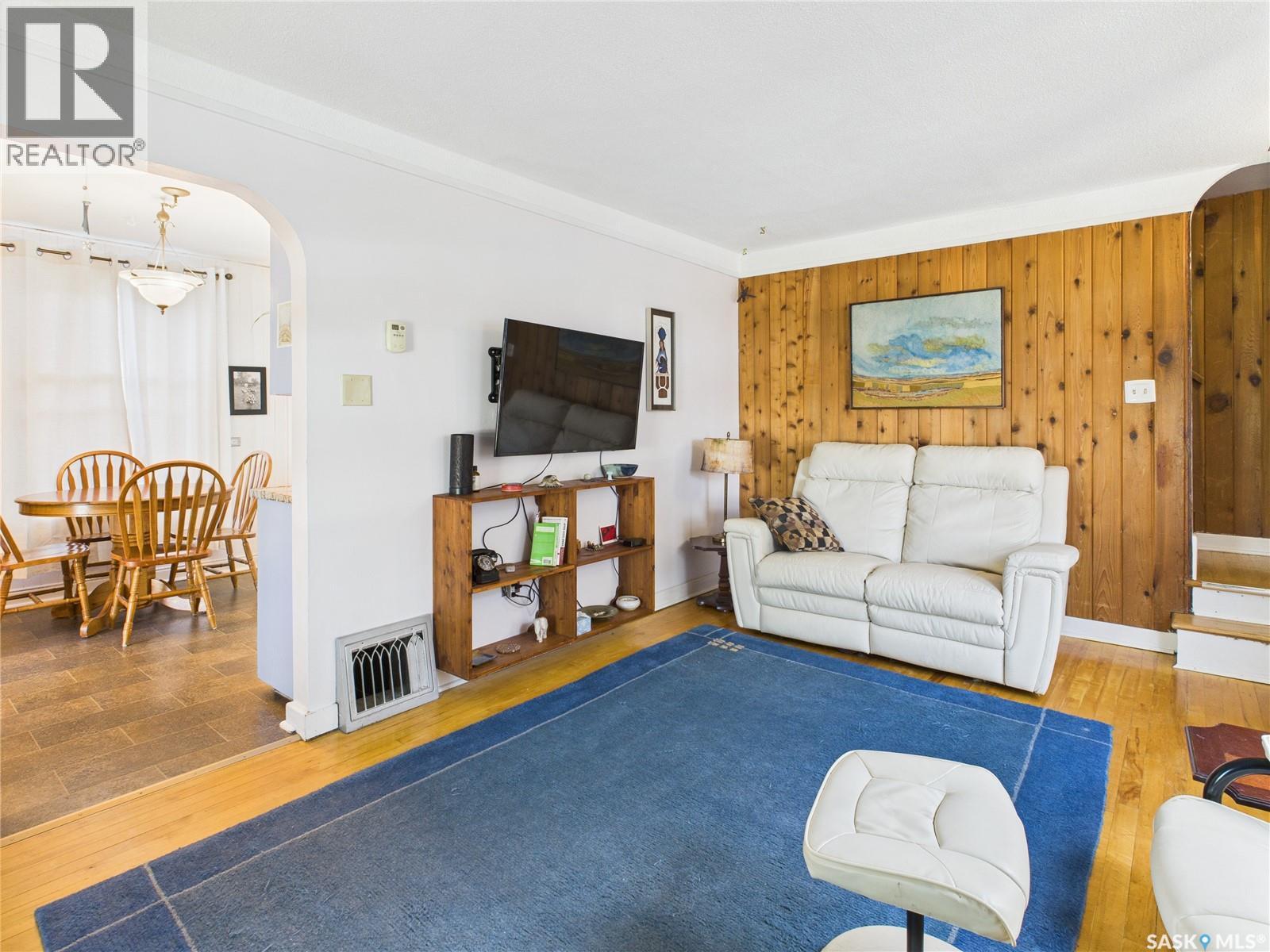 This charming 1 ¾ storey home in Westview is full of character, charm and warmth. With three bedrooms upstairs and 885 square feet of smartly designed living space, it’s the perfect fit for anyone wanting both charm and practicality. The main floor features arched doorways, hardwood floors in the living room, and a peek-through from the kitchen to the dining room that makes entertaining feel easy and connected - not to mention the wood stove for snuggling up on cold winter nights! Many of the windows have been upgraded in recent years, with the most recent being the living room window installed this spring. The large bathroom has all newer features, plus plenty of space to get ready each morning. Outside, the fully fenced yard is surrounded by mature trees and colourful wildflowers in the front garden, along with garden beds ready for herbs, vegetables, or more flowers. The location is ideal for those who love the outdoors, with the Rotary Trail just steps away for morning walks or evening bike rides. It also offers a quick and convenient commute to the Saskatchewan Penitentiary, making it an excellent option for those relocating to work there. With its character details and smart layout, this move-in ready (and oh-so-sweet!) home is ready to welcome its next owner. (id:61201)
