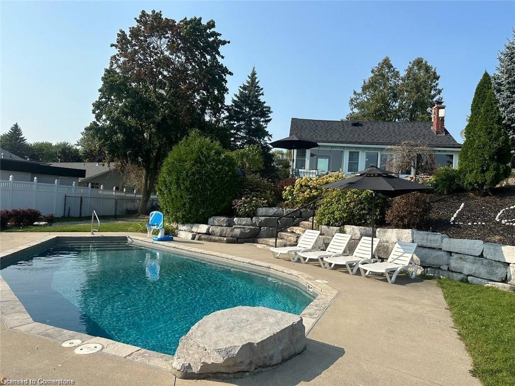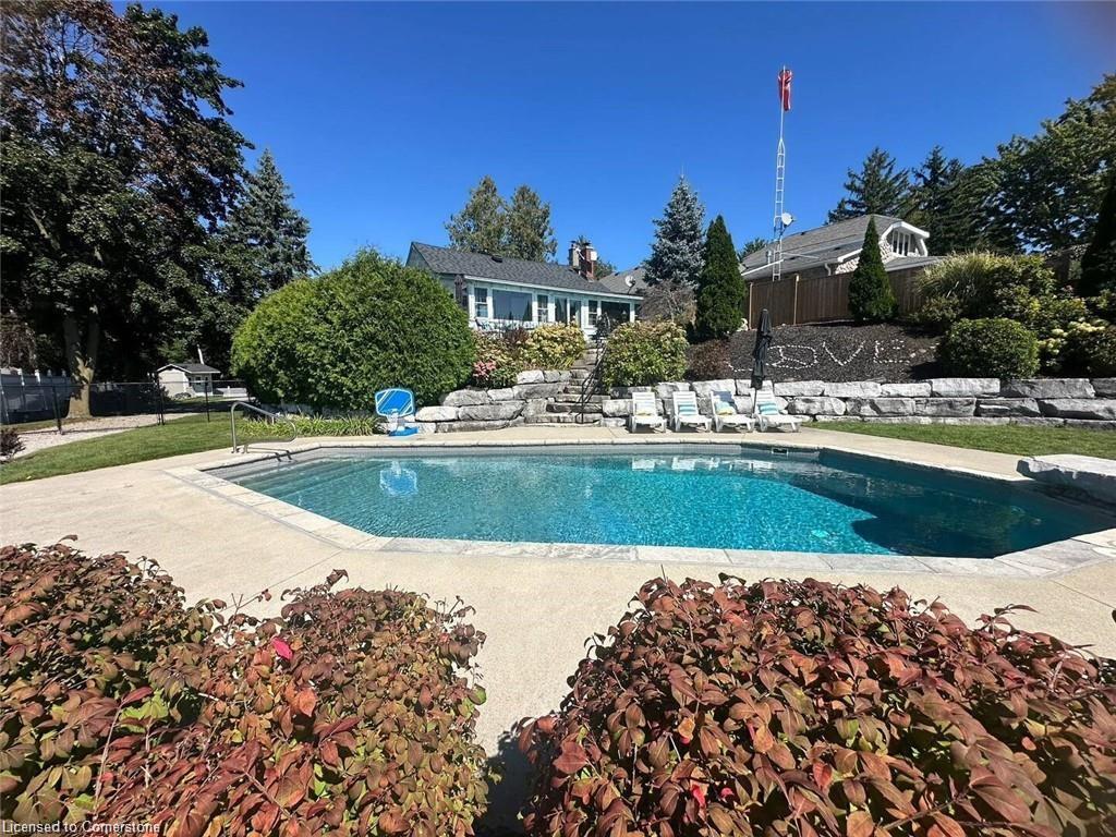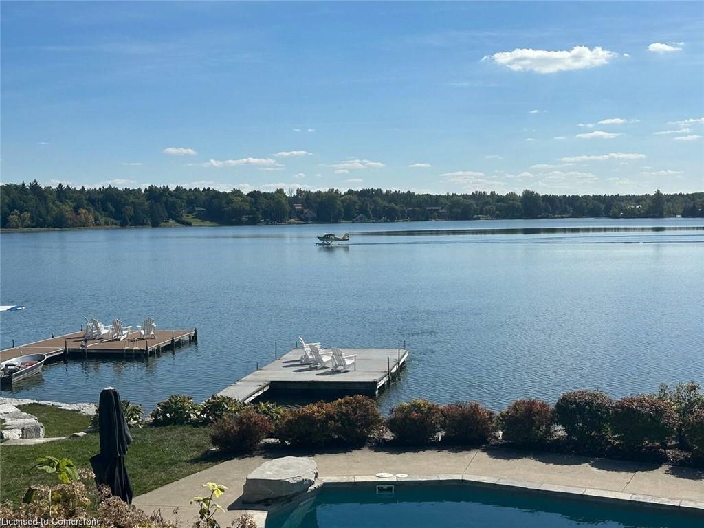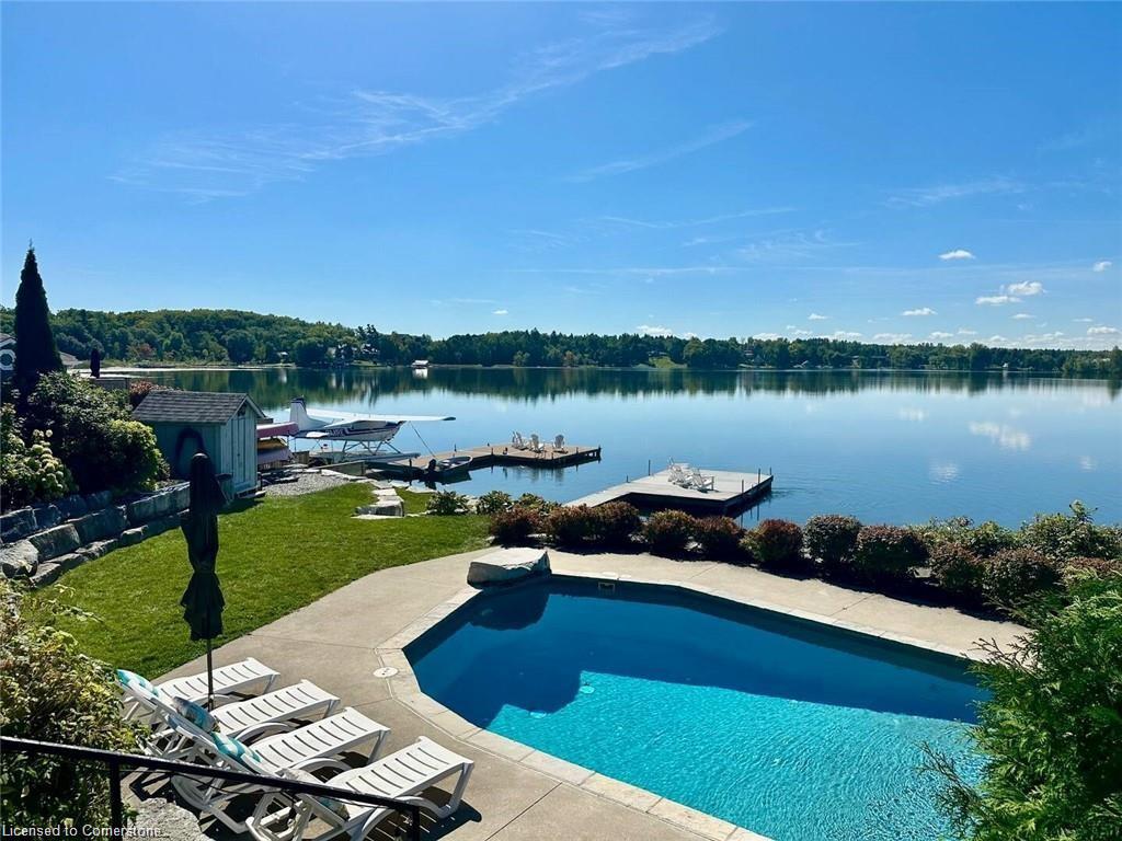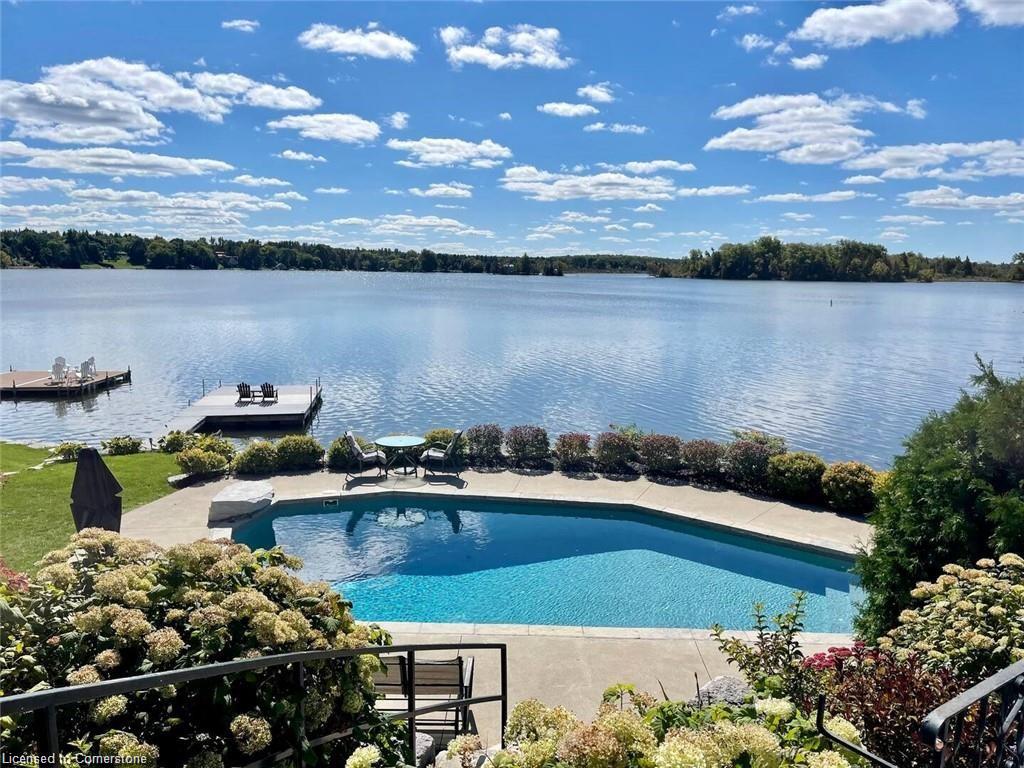 ***This is a short term rental, property is only available to rent from April 15th - June 31st then next availability is September 1st 2025, to June 1st, 2026. ***Welcome to your ultimate lakefront retreat, where relaxation meets adventure! This stunning FULLY FURNISHED 3-bedroom, 1-bathroom vacation home offers breathtaking views of Puslinch Lake with southern exposure, and lush greenery, complete with vibrant flower gardens. Nestled on a spacious half-acre lot, this property boasts a large, fully fenced, grassed front yard perfect for games like badminton, while the fully fenced backyard is a haven of tranquility and fun. Dive into the 17x36 ft inground pool surrounded by a flagstone patio, loungers, umbrellas, and a cozy campfire pit for dreamy sunset moments. The expansive 16x24 ft sun dock invites you to soak up the sun, fish, or take the included canoes or kayaks out for a paddle (with oars and life jackets provided). A private boat ramp on the property gives you direct access to water giving you the flexibility to launch your water toys, or access the frozen lake in the winter time to AVT or Snowmobile, or use the large boat ramp to park and larger trailers/vehicles. The upper terrace patio is complete with a picnic table and BBQ is the perfect spot for lakeside dining. Lounge and relax in multiple outdoor seating areas. The property is close to a network of scenic walking trails and just a short drive to restaurants and amenities, this idyllic retreat offers the best of both worlds. Whether you’re soaking in the sun, grilling with a view, or making memories around the fire pit, the entire property is yours to enjoy. Book a showing now and see!