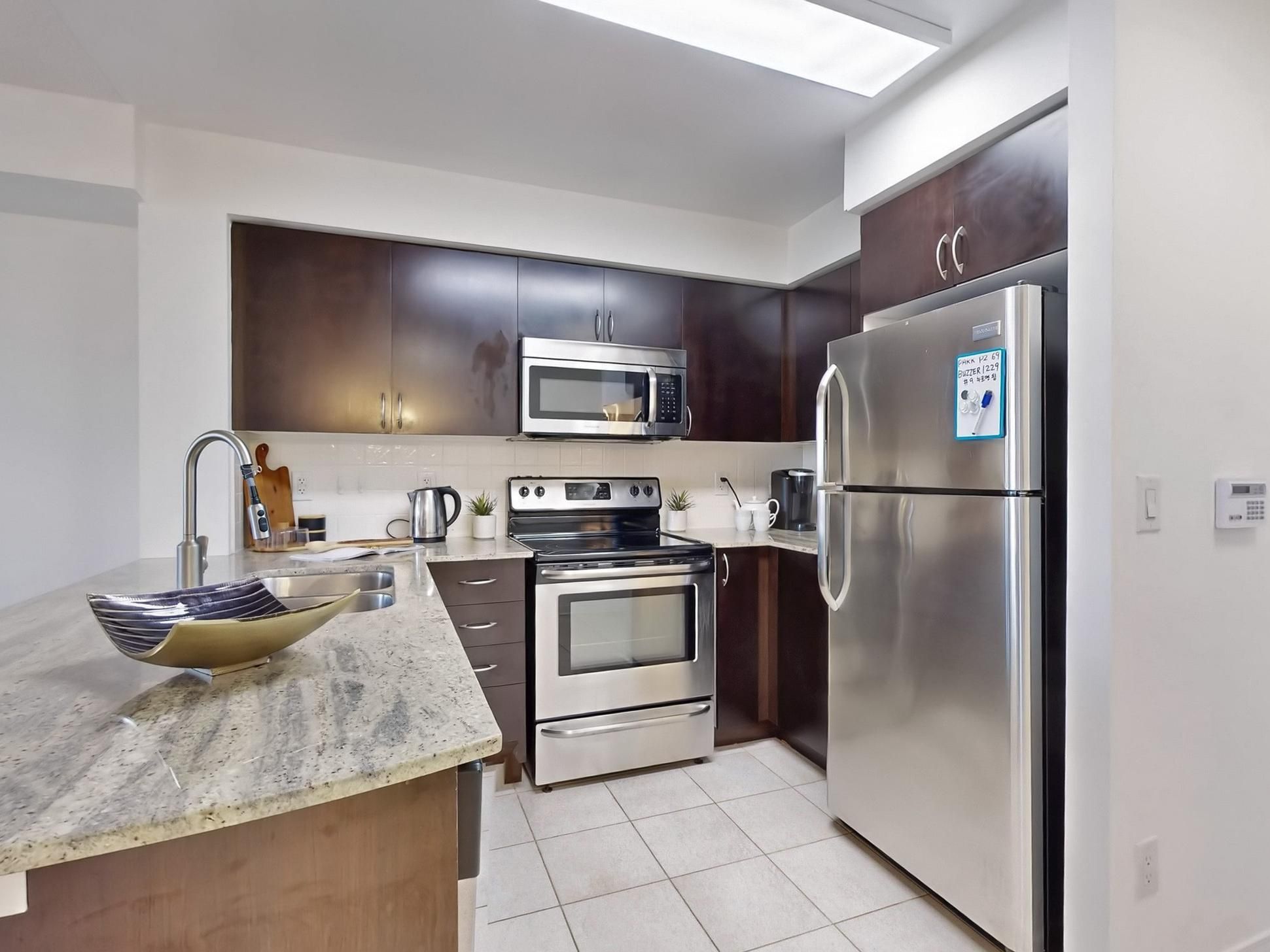 Bright 2 Bedroom + 1 Bathroom Condo with Unobstructed Views & Split Layout! A rarely available layout, this bright and cozy 2-bedroom, 1-bathroom condo offers 765 sq. ft. of thoughtfully designed living space with a sought-after split bedroom layout for added privacy and functionality. Enjoy a private walk-out balcony from the spacious living room, showcasing peaceful, unobstructed views of a quiet, residential neighborhood. The primary bedroom shares the same serene view and features balcony access and a double closet. The second bedroom includes a large window and closet - perfect as a bedroom, home office, or guest space. The modern kitchen features stainless steel appliances and a new faucet, blending style and practicality. Freshly painted with all-new light fixtures, this move-in ready home is built solid by The Pemberton Group and professionally managed by Del Property Management - a trusted name in quality and care. Enjoy premium amenities including a gym, party room, billiards, guest suites, and visitor parking. Comes with 1 ground-level locker and 1 parking spot. Maintenance fees include all utilities except hydro. An ideal option for couples or first-time buyers looking for a smart alternative to smaller 1-bedroom units or more expensive 2-bedroom models. A rare opportunity offering the perfect balance of space, comfort, and value. Book your private showing today!