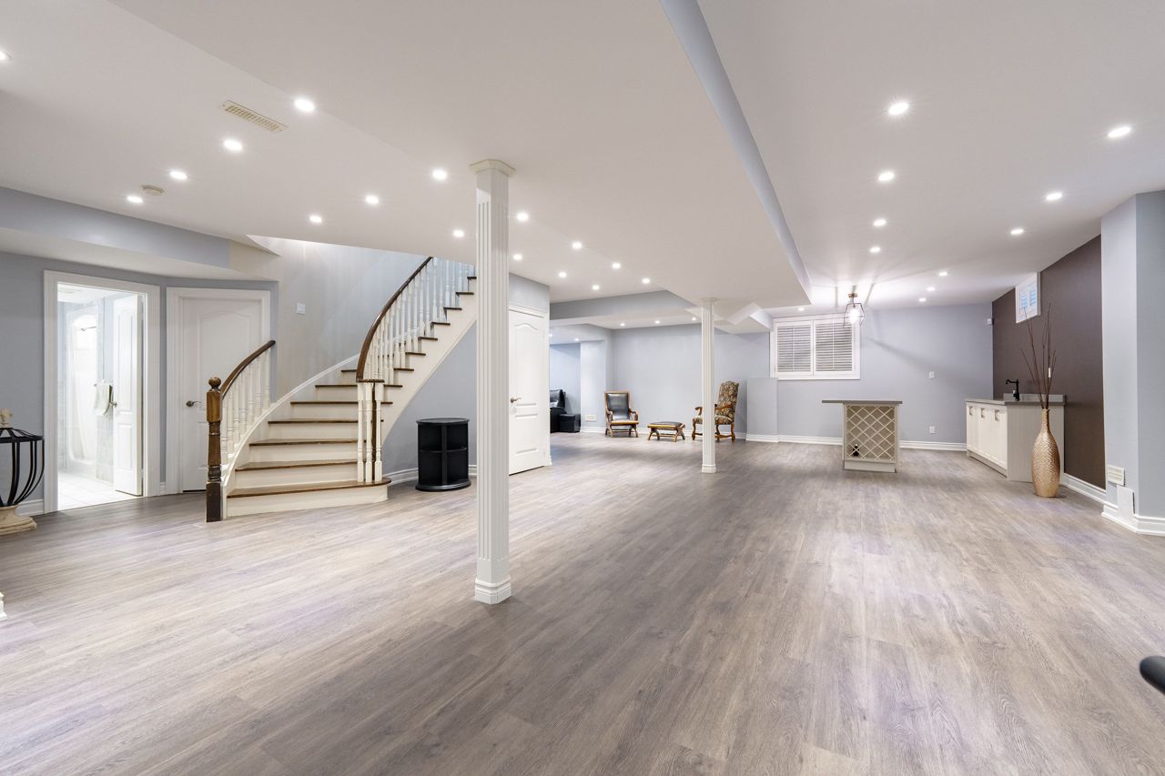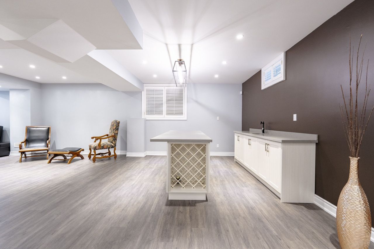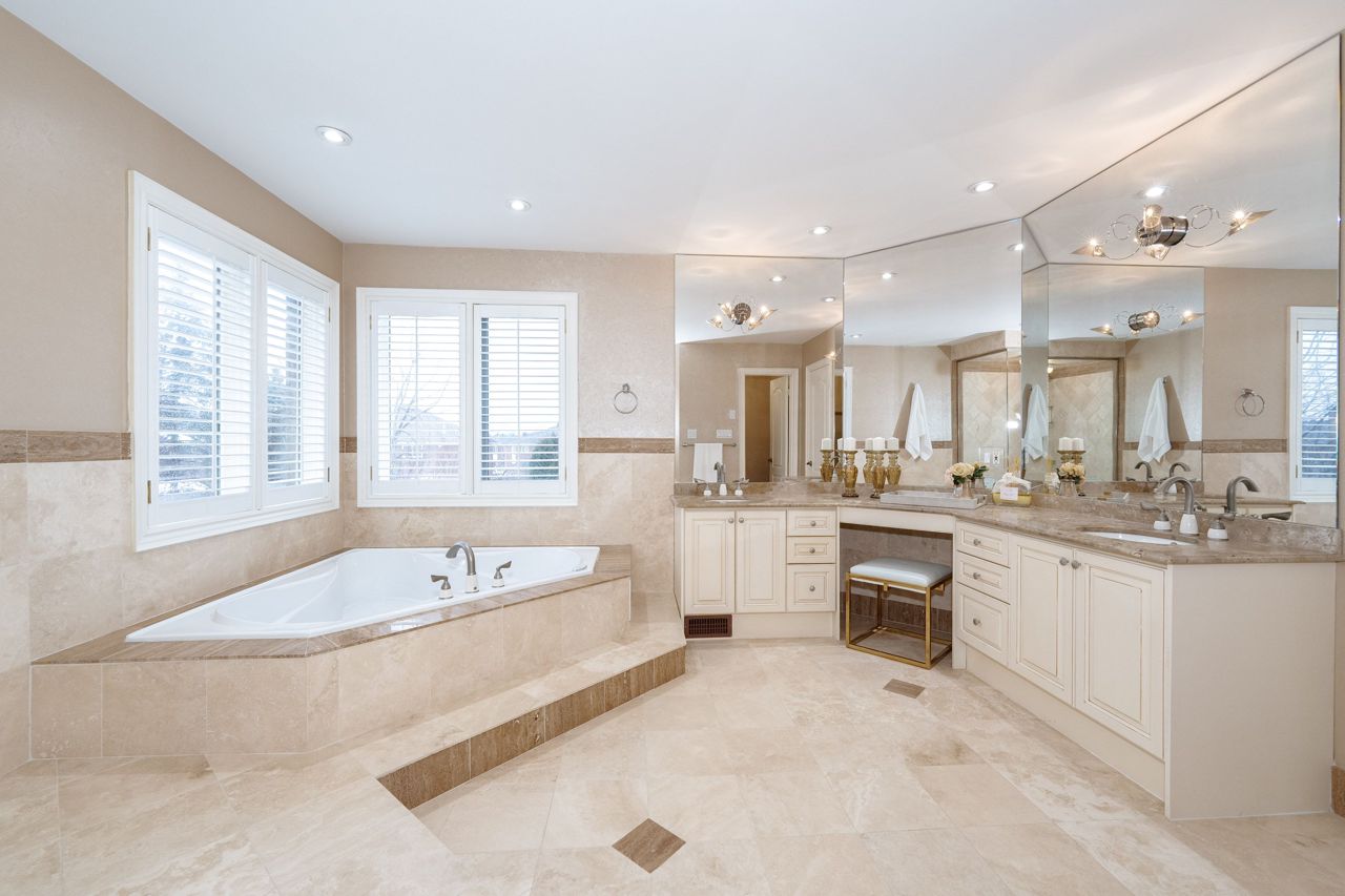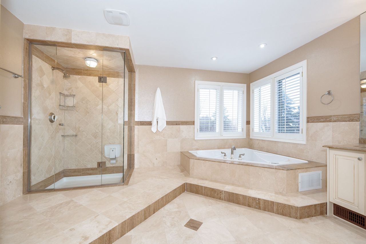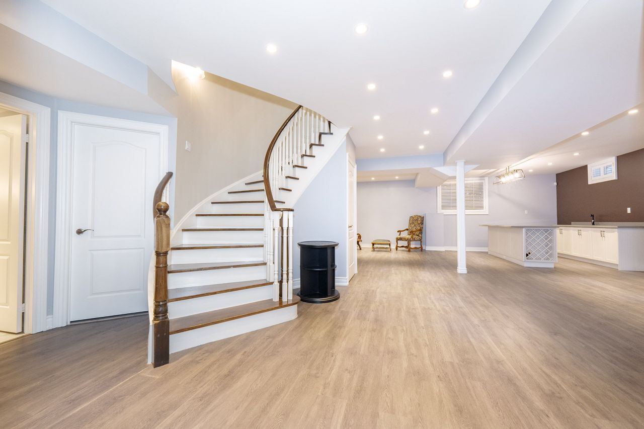 全屋铺设天然意大利磨光石灰石地砖(经专业抛光密封焕然一新),主层及二层为胡桃木实木地板。宽敞的主人套房配备男女独立步入式衣帽间,五件套浴室包含全玻璃淋浴房、按摩浴缸及双人洗手台。2021年专业装修的地下室设有大型景观窗、带酒柜展示的定制吧台、葡萄酒冷藏柜及水槽(完美满足娱乐需求),另含1间卧室/保姆套房及三件套卫生间。