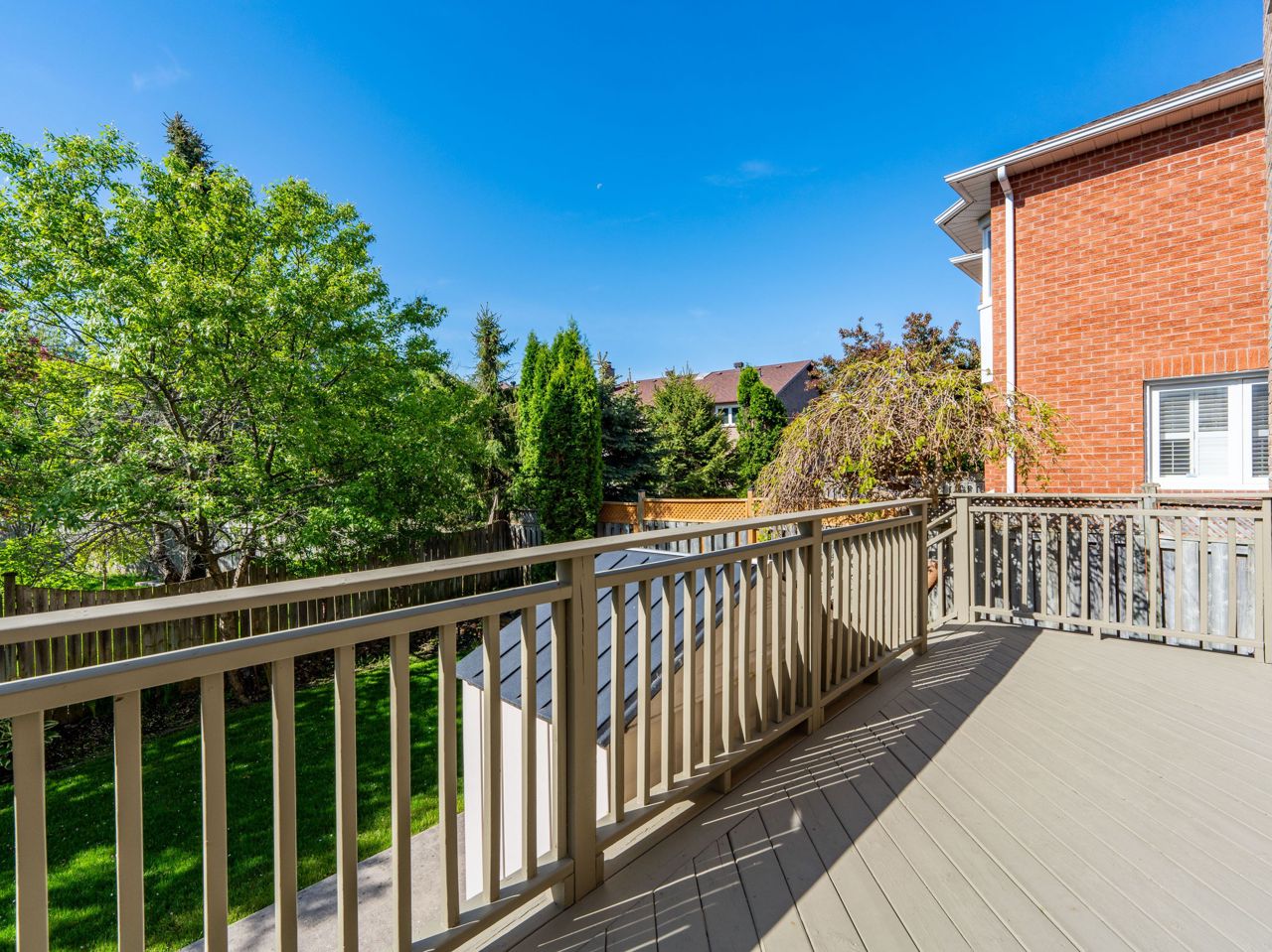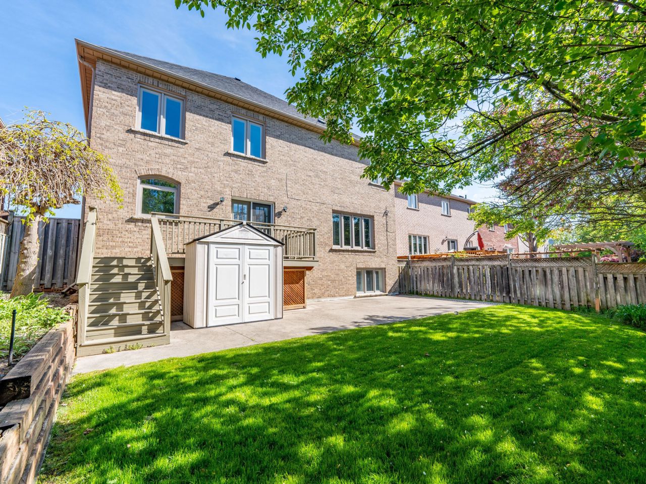 后院夏季可欣赏成荫绿树美景,主卧与庭院皆能观赏日出日落。其他亮点包括:燃气烧烤专用管线、中央吸尘器预装接口、自动灌溉系统、砖砌车道及宽敞露台。