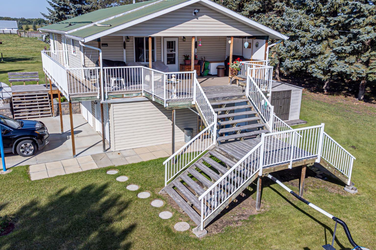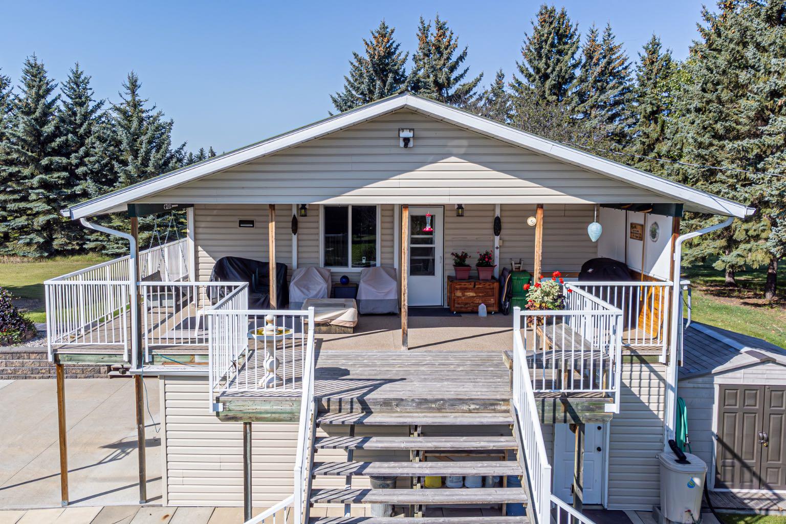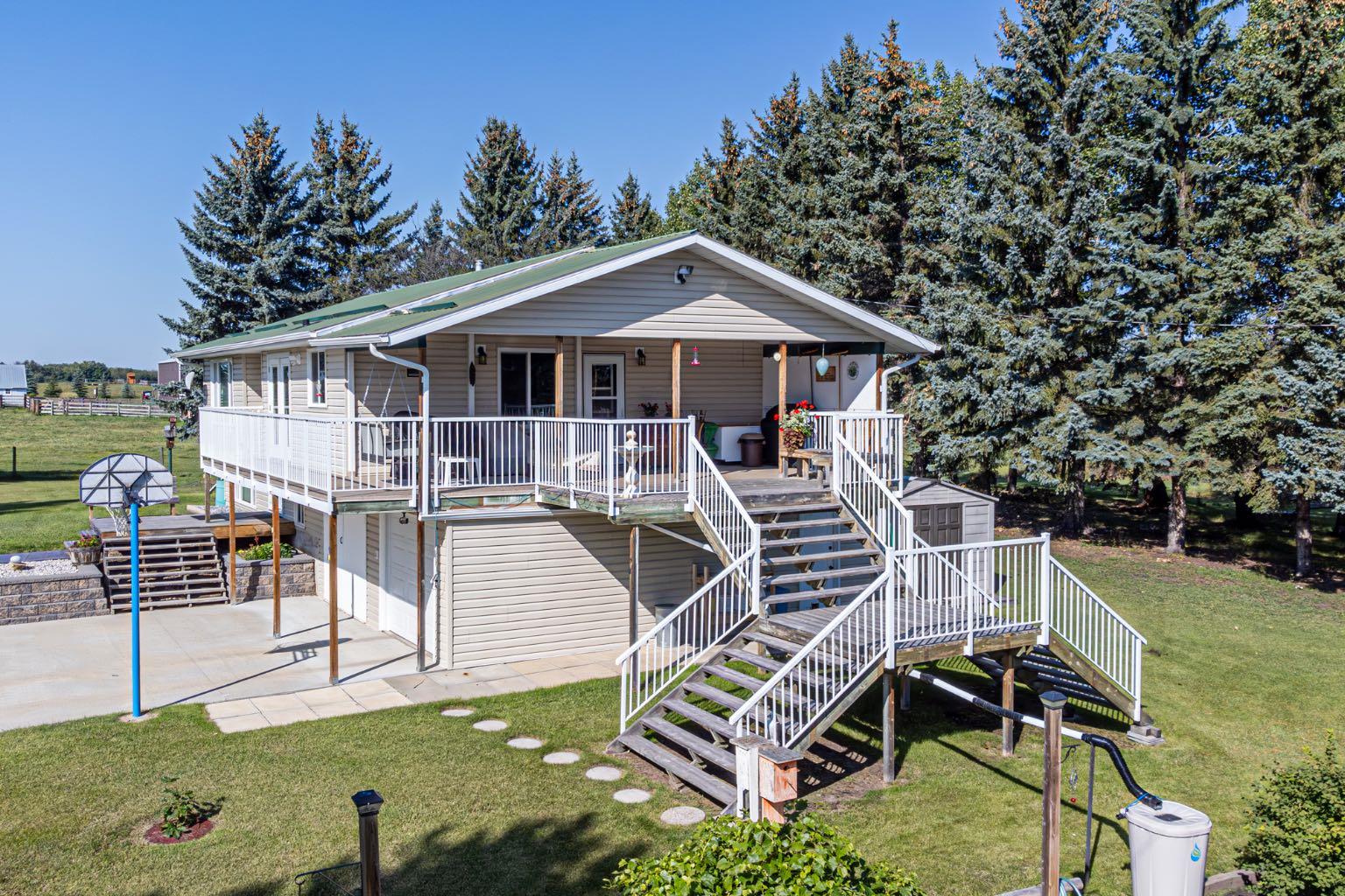 This beautiful acreage home is set on a 3.08 acre lot with full privacy from neighbors, with a quick 3 minute drive to Bashaw for convenience.This stunning home features 3 bedrooms, 3 bathrooms, and a spacious rec room, with tons of natural light. The 200-ft deep drilled well with a newer well pump provides excellent drinking water. Watch the sunrise, the different birds fly by or host gatherings, the huge patio provides you with endless options and will surely be your favourite part of the home.The double attached garage offers flexibility, with one bay temporarily converted into a workshop (easily switched back). With lots of updates such as a metal roof, vinyl windows, resurfaced deck and railings and more. Complete with a huge garden this house has everything that you need. If you’re looking for the perfect blend of privacy, nature, and convenience—this is it!