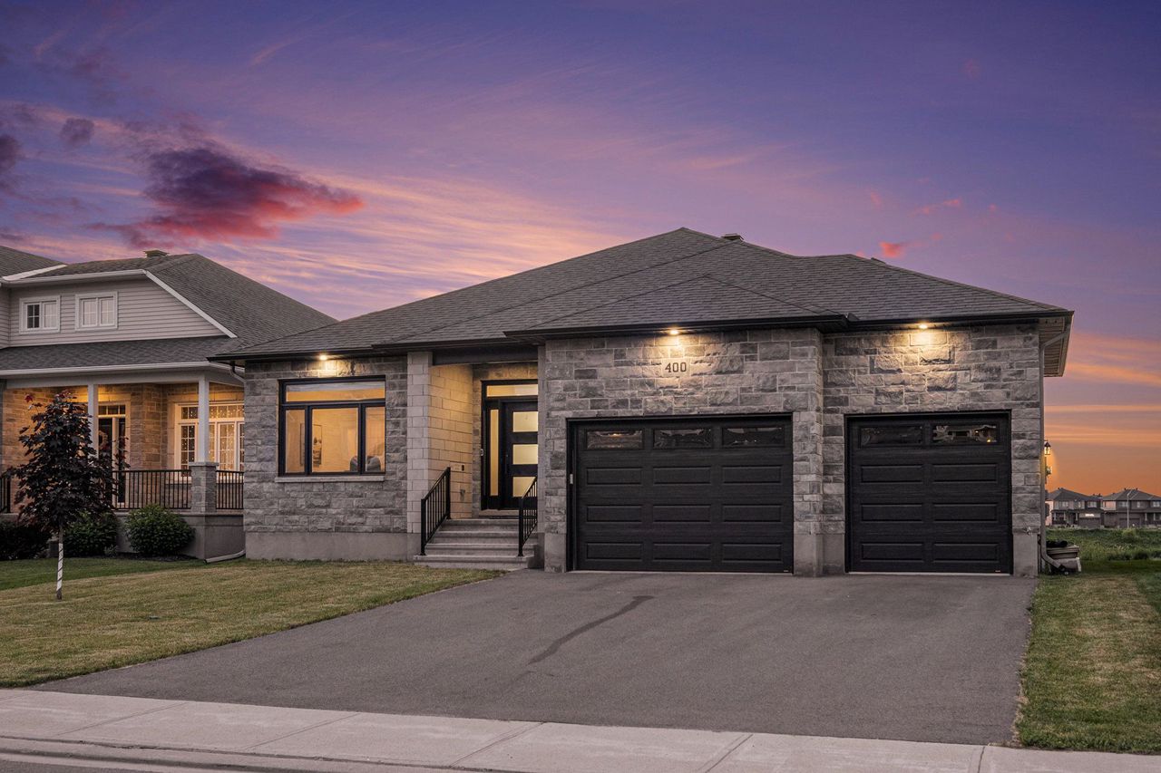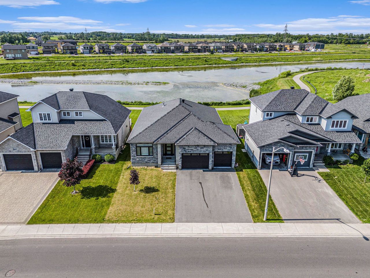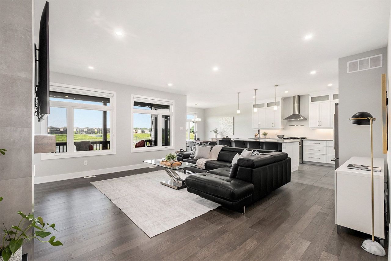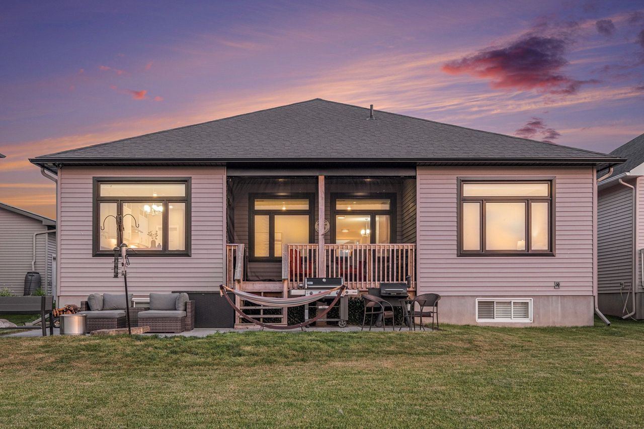 Welcome to this 3+2 bedroom, 3 bath bungalow on a PREMIUM LOT with a water view, located in the sought-after community of Russell Trails. Just steps from top-rated schools, conservation areas, scenic walking trails, parks this turnkey property, built by Corvinelli Homes, checks all the boxes for comfort and convenience. Step inside to a spacious entryway leading to an open-concept layout blending style and function, with a bright living room, sun-soaked dining area, and modern kitchen featuring a breakfast bar island, ample cabinetry and quality stainless steel appliances; perfect for everyday living or entertaining. A covered upper deck extends your living space outdoors, offering the ideal spot to relax, entertain, or unwind with a view overlooking the pond. The main level goes on to include a primary bedroom with walk-through closet and 5-piece ensuite, two additional bedrooms, a full bathroom and a practical main floor laundry room. The lower level adds even more space with two more bedrooms, another full bathroom and a large recreation room ideal for a growing family, guests, or work-from-home flexibility. Hardwood flooring throughout, tile in wet areas. Outside the backyard is a blank canvas with patio and green space, backing onto a pond ready with space for your dream garden or outdoor oasis. Triple car garage. Built in 2021. 200Amp service. Book a viewing today!