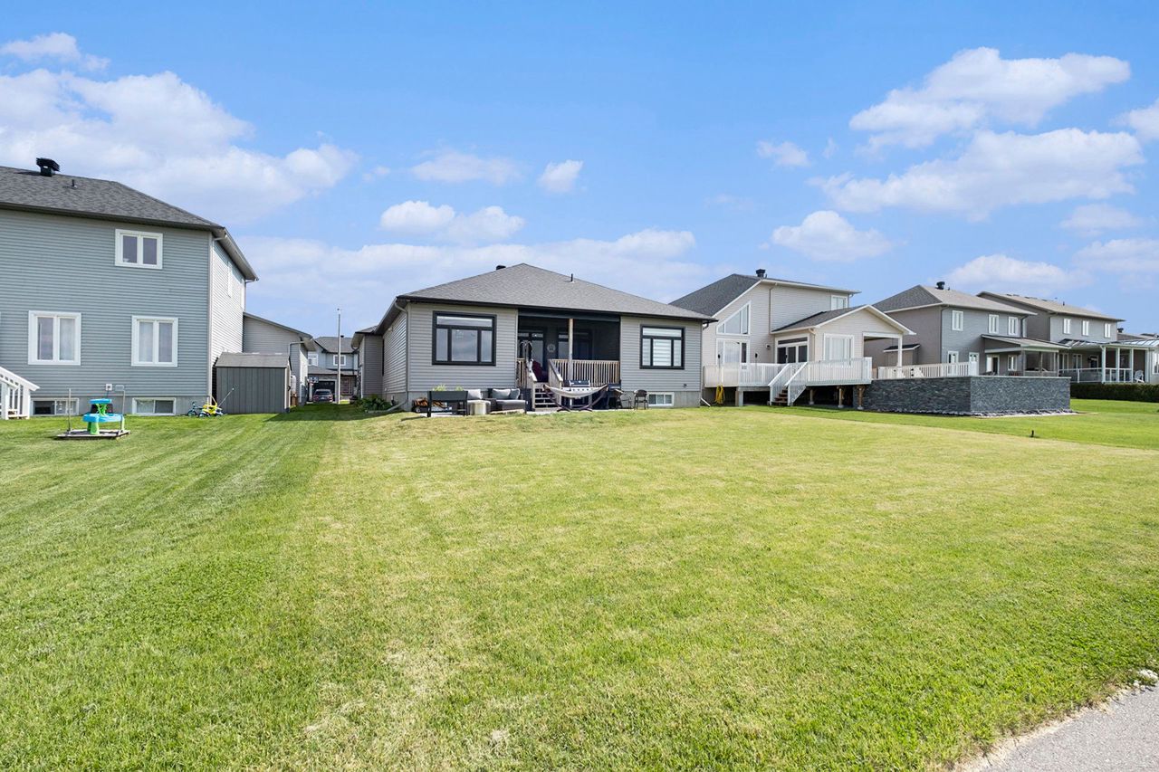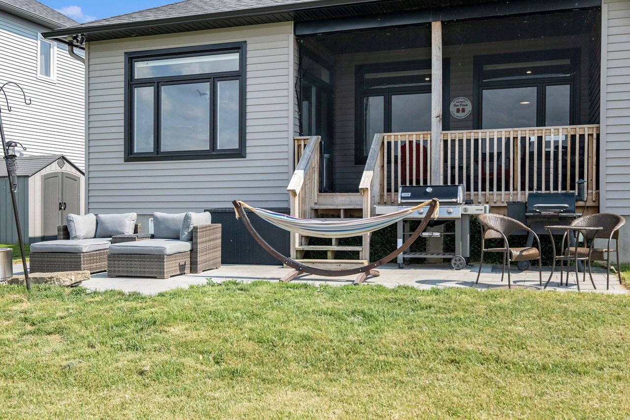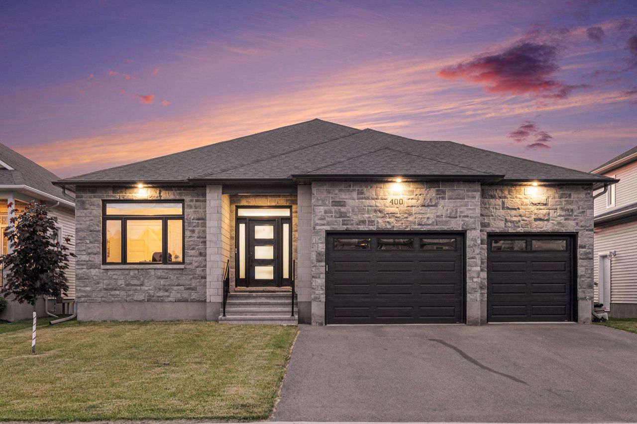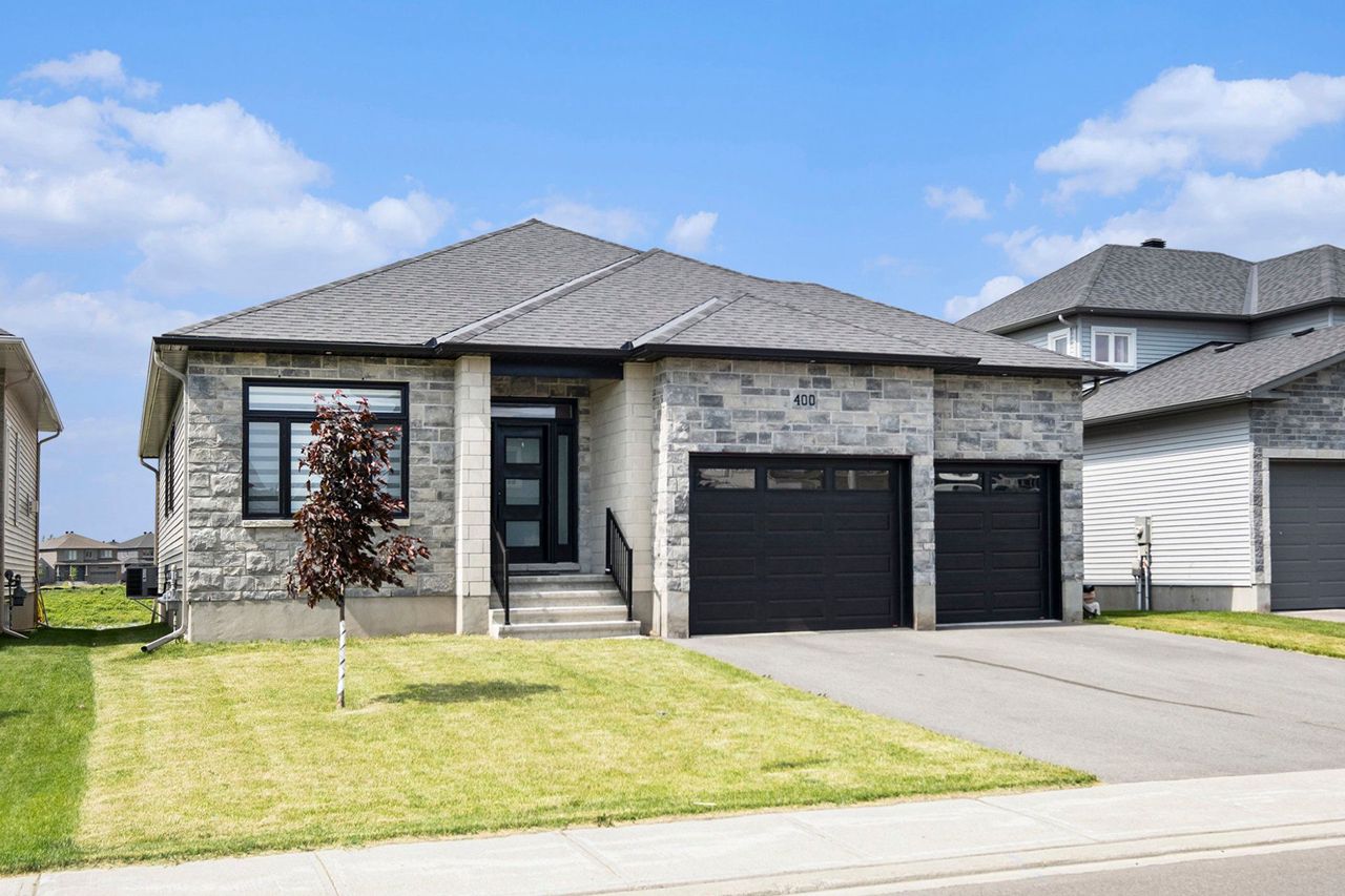 Welcome to this 3+2 bedroom, 3 bath bungalow on a PREMIUM LOT with a water view, located in the sought-after community of Russell Trails. Just steps from top-rated schools, conservation areas, scenic walking trails, parks this turnkey property, built by Corvinelli Homes, checks all the boxes for comfort and convenience. Step inside to a spacious entryway leading to an open-concept layout blending style and function, with a bright living room, sun-soaked dining area, and modern kitchen featuring a breakfast bar island, ample cabinetry and quality stainless steel appliances; perfect for everyday living or entertaining. A covered upper deck extends your living space outdoors, offering the ideal spot to relax, entertain, or unwind with a view overlooking the pond. The main level goes on to include a primary bedroom with walk-through closet and 5-piece ensuite, two additional bedrooms, a full bathroom and a practical main floor laundry room. The lower level adds even more space with two more bedrooms, another full bathroom and a large recreation room ideal for a growing family, guests, or work-from-home flexibility. Hardwood flooring throughout, tile in wet areas. Outside the backyard is a blank canvas with patio and green space, backing onto a pond ready with space for your dream garden or outdoor oasis. Triple car garage. Built in 2021. 200Amp service. Book a viewing today!