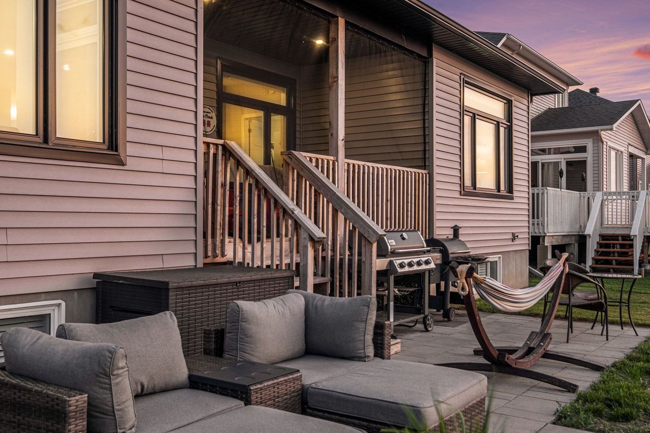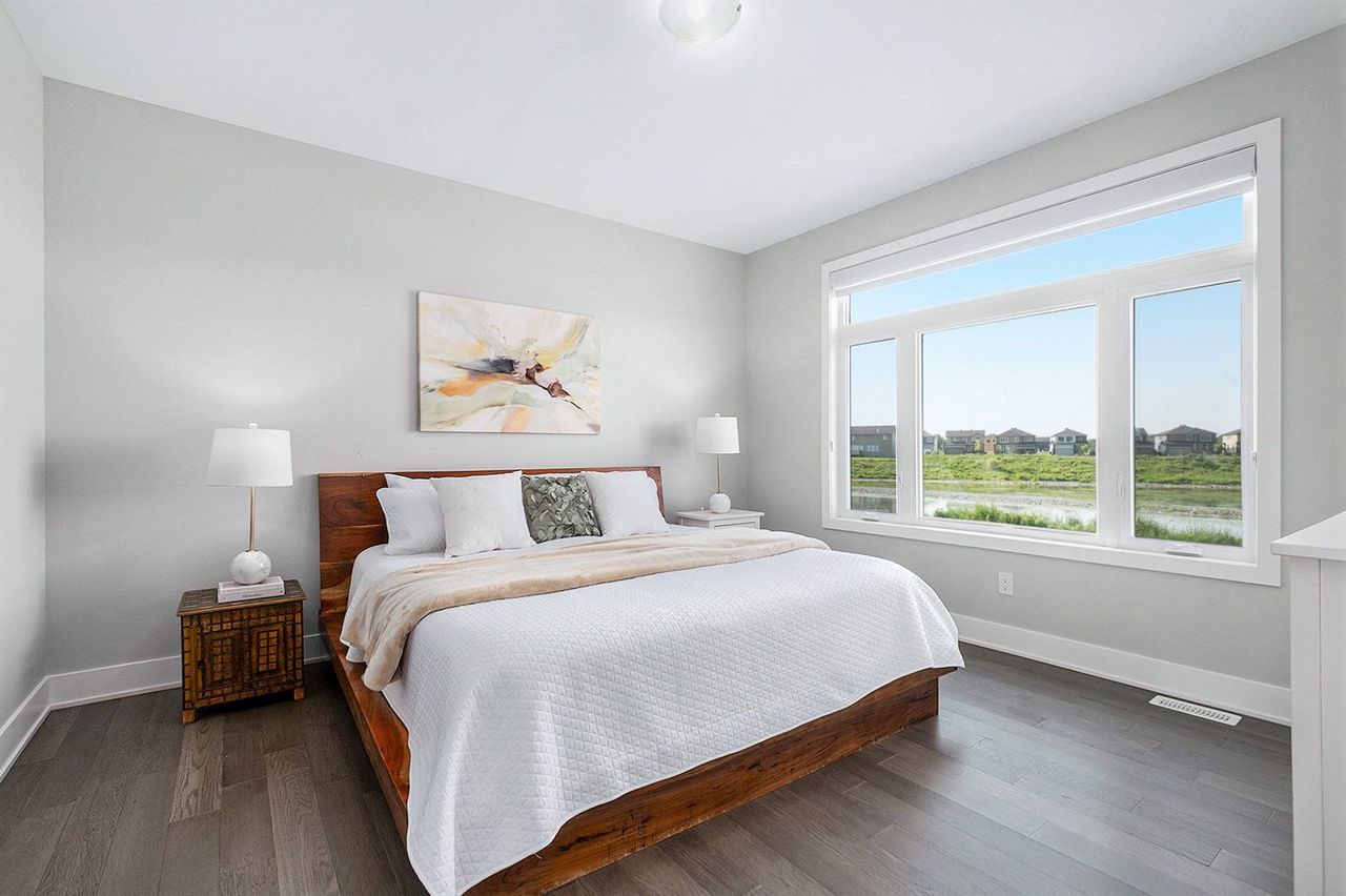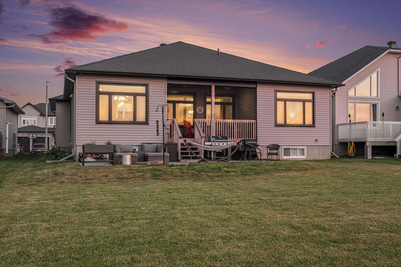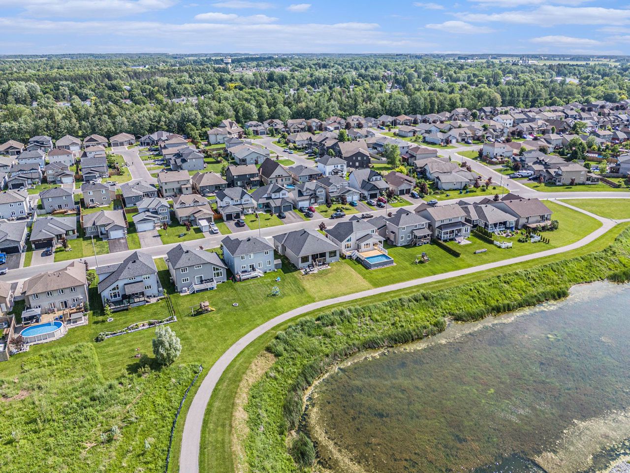 Welcome to this 3+2 bedroom, 3 bath bungalow on a PREMIUM LOT with a water view, located in the sought-after community of Russell Trails. Just steps from top-rated schools, conservation areas, scenic walking trails, parks this turnkey property, built by Corvinelli Homes, checks all the boxes for comfort and convenience. Step inside to a spacious entryway leading to an open-concept layout blending style and function, with a bright living room, sun-soaked dining area, and modern kitchen featuring a breakfast bar island, ample cabinetry and quality stainless steel appliances; perfect for everyday living or entertaining. A covered upper deck extends your living space outdoors, offering the ideal spot to relax, entertain, or unwind with a view overlooking the pond. The main level goes on to include a primary bedroom with walk-through closet and 5-piece ensuite, two additional bedrooms, a full bathroom and a practical main floor laundry room. The lower level adds even more space with two more bedrooms, another full bathroom and a large recreation room ideal for a growing family, guests, or work-from-home flexibility. Hardwood flooring throughout, tile in wet areas. Outside the backyard is a blank canvas with patio and green space, backing onto a pond ready with space for your dream garden or outdoor oasis. Triple car garage. Built in 2021. 200Amp service. Book a viewing today!