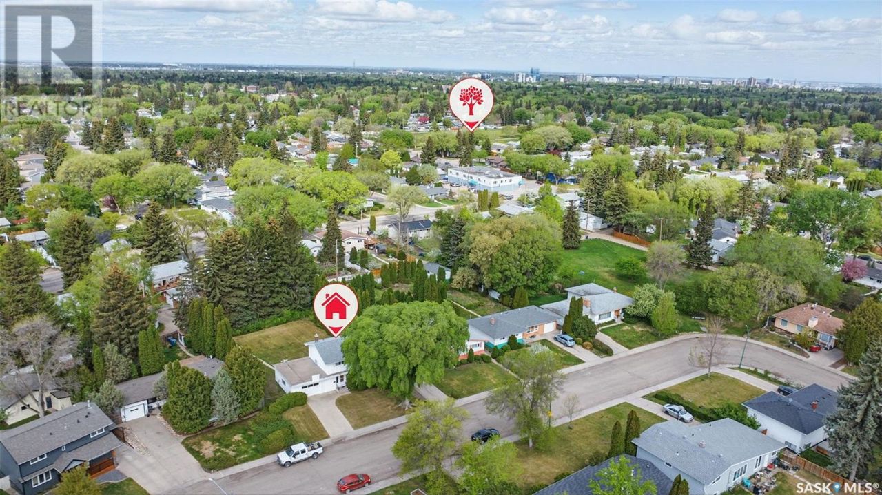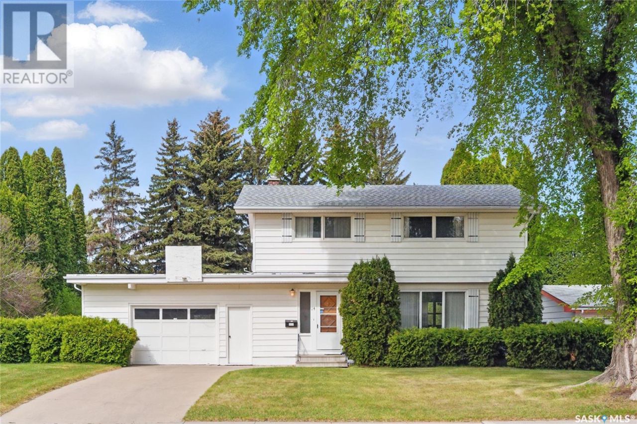 Welcome to 14 Porteous Crescent, nestled in Saskatoon’s mature and sought-after Holliston neighbourhood. Situated on a quiet crescent surrounded by well-kept homes and established trees, this property boasts one of Saskatoon’s premier residential lots—an impressive 12,900 sq. ft., nearly 3.5 times the size of a typical new build lot. Step into the backyard and you’ll instantly see the potential. With towering trees, expansive green space, and ultimate privacy, this yard offers a rare opportunity to create a true outdoor oasis—whether it’s a pool, garden, massive garage, play area, or the backyard of your dreams. The home itself features 4 bedrooms, 2 bathrooms, and a solid 20' x 25' attached garage with room for one vehicle and plenty of storage or workshop space. Inside, the layout remains primarily original and well-preserved, giving you the flexibility to move in as-is, refresh with minor updates, or launch a top-to-bottom renovation tailored to your style and needs. The unfinished basement offers even more potential to add value and space. The location is unbeatable: Schools: Just minutes from Holliston School, St. Phillip School, Aden Bowman Collegiate, École Canadienne Française, Holy Cross High School, Walter Murray Collegiate, and St. Frances Cree Bilingual School, making it ideal for families. Parks: Enjoy the nearby Wiggins Park, Holliston Park, and easy access to Lathey Outdoor Pool. Amenities: Quick access to 8th Street, downtown, and Circle Drive ensures everything you need—shopping, dining, and more—is close at hand. Properties like this don’t come along often. If you’re looking for a massive lot, an unbeatable location, and the freedom to create your dream home, this is the one. (id:61201)