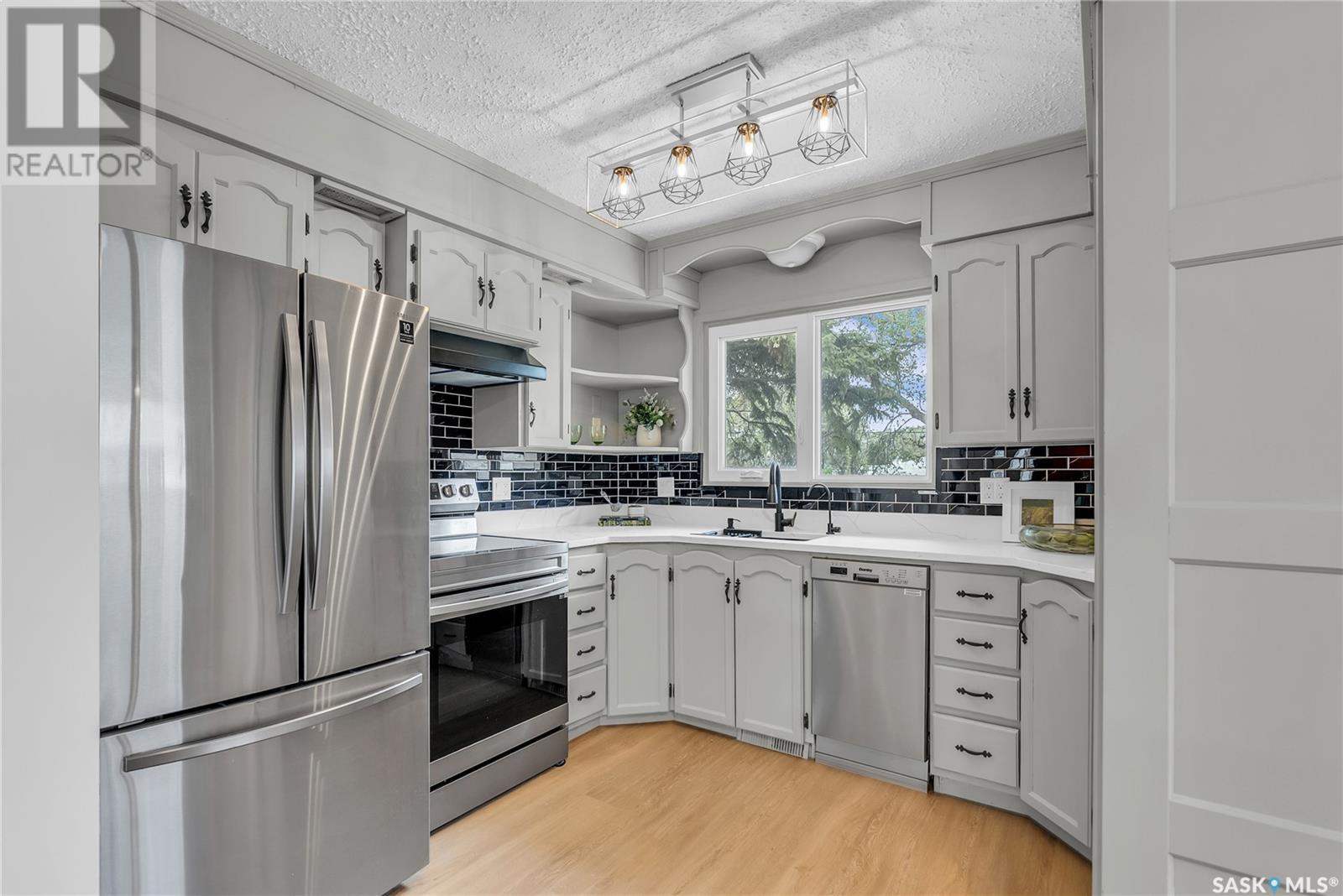 Welcome to 329 Avenue Y North — where charm, comfort, and convenience meet in one beautifully renovated package! This hidden gem sits in the heart of Mount Royal, one of Saskatoon's most underrated neighbourhoods. Friendly neighbours, tree-lined streets, and a whole lot of pride of ownership make this a place you'll be proud to call home. From the curb, this beauty makes a statement — the natural stone gives it standout style, while the matching manicured flower beds offer a cheerful welcome. Inside and you’ll instantly feel the light-filled warmth of the spacious living room, complete with a big picture window that begs for cozy sunrise coffees. The main floor features three generous bedrooms and a sparkling new bathroom. Downstairs? You’ll find another bedroom, another fully renovated bathroom, and a ton of extra living space plus a designated storage room (because you’ll be needing somewhere for your Costco hauls and holiday décor). The kitchen is an entertainer's dream — completely reimagined with a quartz island, tile backsplash, new appliances, and modern lighting to set the mood for everything from Sunday brunch to midnight snacks. Updates? Check. Comfort? Double check. We’re talking new windows, new flooring, fresh paint, windows, on-demand water heater, central A/C, and stylish neutral finishes that go with absolutely everything. But wait — there's more. The yard? It’s not just a yard... it’s a double-wide, fully fenced, park-like paradise. Think mature trees, lush landscaping, a pond (!!), patio for BBQs, fire pit for s’mores, multiple storage sheds, and an insulated single garage for your tools, toys, and projects. Whether you're upsizing, downsizing, or rightsizing — this home fits the bill with space to live, entertain, and unwind. You're just minutes from schools, parks, shopping, and transit. 329 Avenue Y North — the "Y" is for Yes, Please.... As per the Seller’s direction, all offers will be presented on 2025-05-21 at 6:00 PM (id:61201)