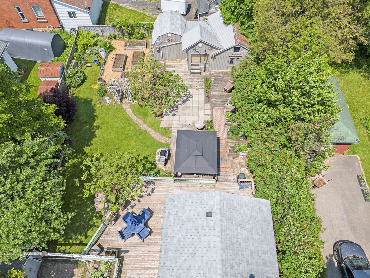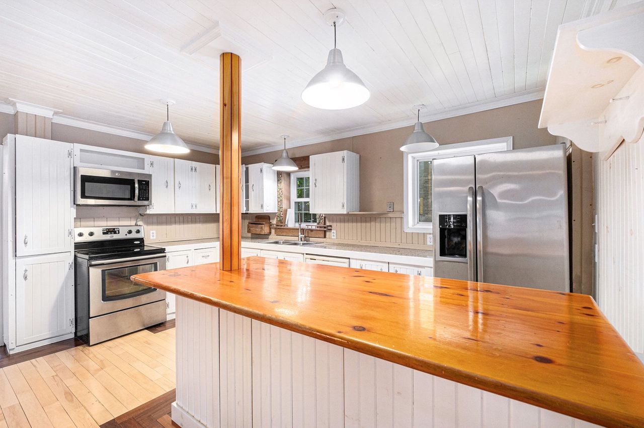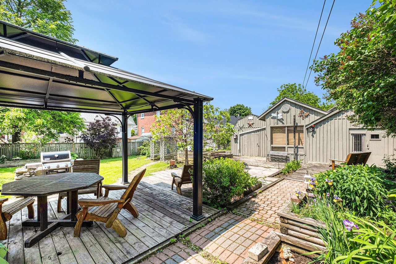 If you are looking for something different, with a flare for entertaining, check this customized home out. A former local woodworker has made many personal touches that his family and friends enjoyed. The main level includes a large kitchen with island, formal dining area, living room, enclosed foyer, mudroom with laundry and back entrance, 4-piece bathroom with a shower & jetted tub plus a family room that could easily be converted to main level bedroom. Upstairs there are 3 good sized bedrooms, a walk-in closet and a second 4-piece bathroom. Mostly hardwood and tile flooring throughout. Outside you will find an oasis of relaxation. A large wrap around deck (partially covered), a gazebo, patio area, raised garden beds, garden shed plus a two-room handyman workshop with power. There is a paved driveway suitable for 5 vehicles. Heated with a natural gas furnace. Gas on equal billing $144/m. Hydro $1293. Water & Sewer $1042. Hot water rental $24,70/m