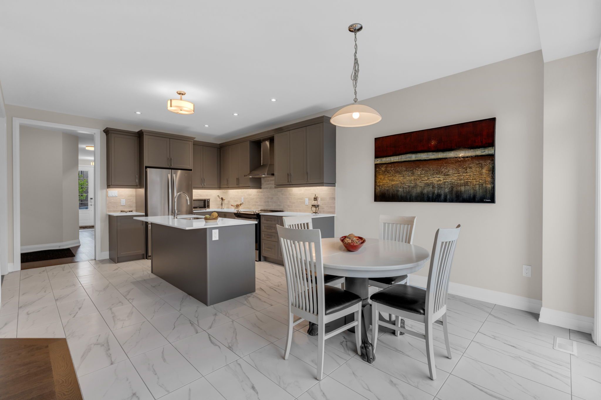 Welcome to 42 Periwinkle Road in the beautiful family friendly midhurst valley community of Midhurst Valley w/new state of art playgrounds, green open spaces, parks, walking paths, tennis courts & soccer fields. Ideally located near scenic hiking trails, top schools, the upcoming Springwater Recreation Centre, & emergency services. Enjoy nearby Vespra Hills Golf Club, Snow Valley Ski Resort, & quick access to Georgian Mall, Georgian College, RVH, & Lake Simcoe. Just under an hour to the GTA or head north to Georgian Bay & Blue Mountain. This beautifully upgraded 2,390 sqft. Saigeon model was built by renowned builder Brookfield Residential & has over $100K in upgrades. Highlights include a rare separate side entrance, 9 ceilings on all levels, grand 8 doors, wide baseboards, pot lights, hardwood floors, gas fireplace, & a striking oak staircase w/wrought iron spindles. A gourmet kitchen features quartz countertops, subway tile backsplash, 12x24 modern tiles, stainless steel appliances, under-cabinet lighting, & an oversized island w/a w/o to the upper deck. Enjoy the spacious living room, separate dining room, powder room w/pedestal sink, & a welcoming front porch w/double glass doors, a video doorbell, & keypad lock. The upper level offers 4 bright bedrooms w/oversized or dormer-style windows, including a serene primary suite w/walk-in closet & a luxurious 5-piece ensuite w/quartz counters, double sinks, a freestanding soaker tub, & glass/tile shower. The unfinished w/o basement includes a rough-in for a 4th bathroom, a large window, patio access, & fruit cellar. The pristine double car garage offers inside entry, 2 separate doors w/arched windows, & brand-new Lift Master Wi-Fi openers w/built-in cameras & keypad access. Hot & cold water taps make it easy to wash vehicles year-round. The freshly paved driveway fits four cars. All window coverings are included, & the Tarion warranty is in effect. This move-in ready home also offers excellent in-law potential.