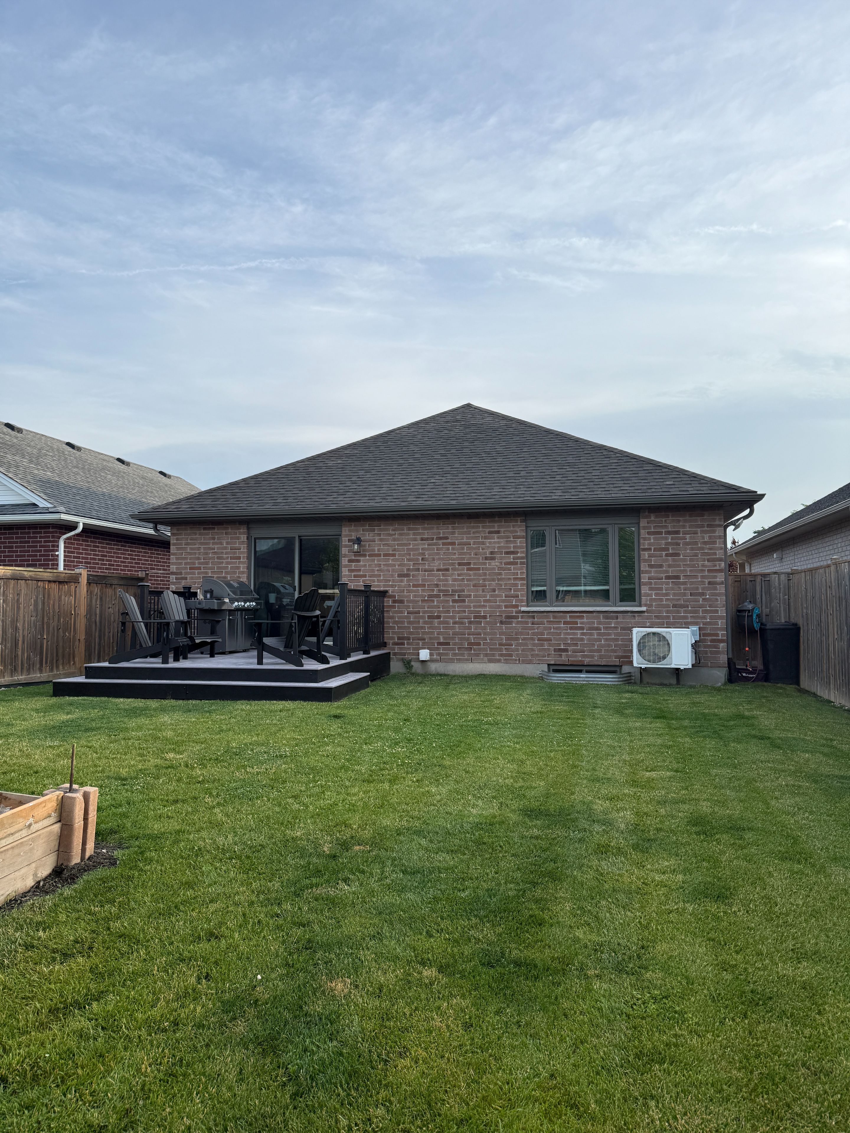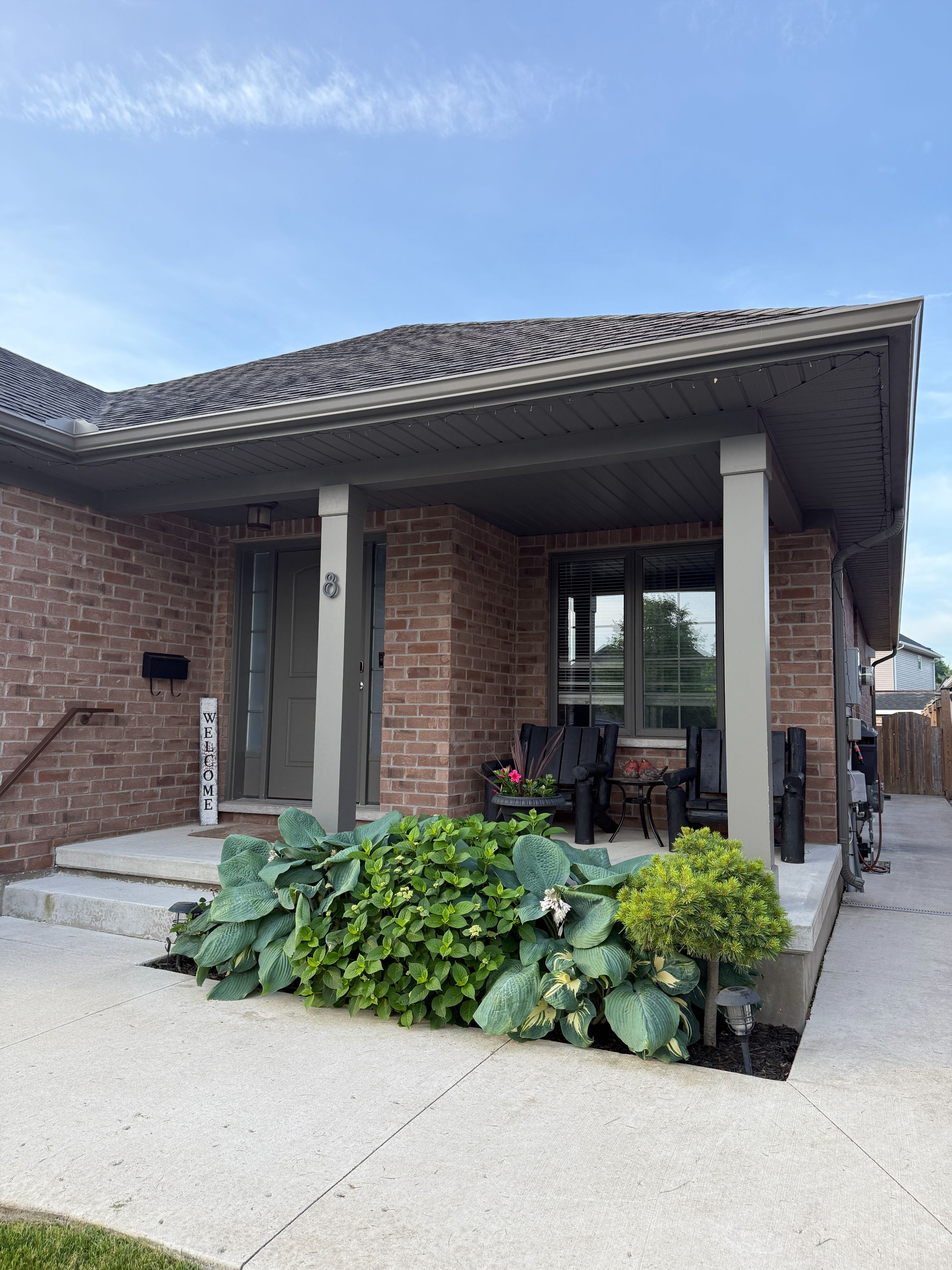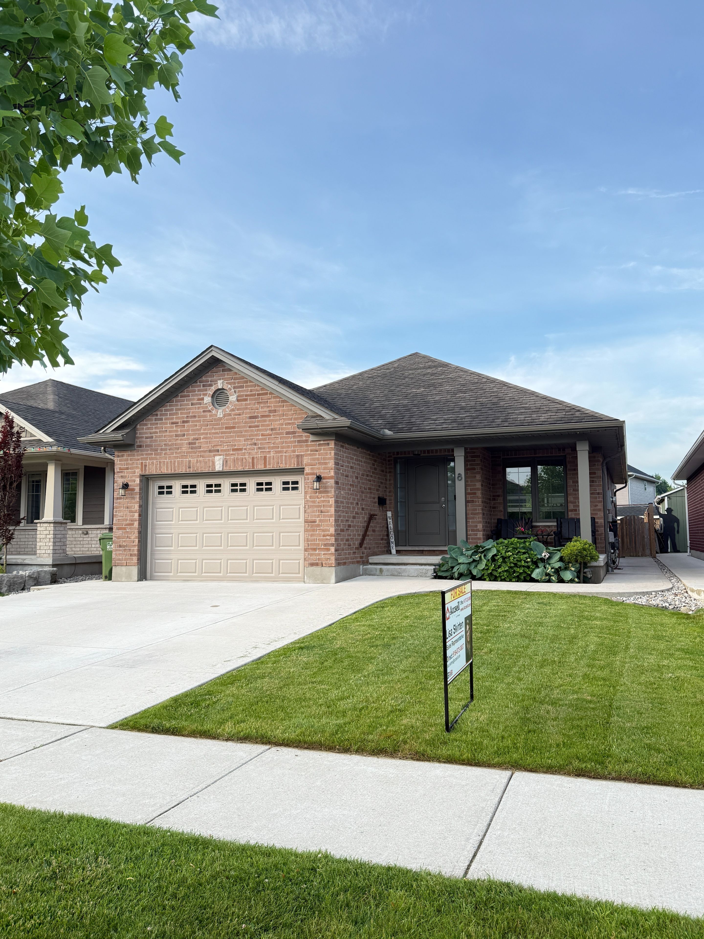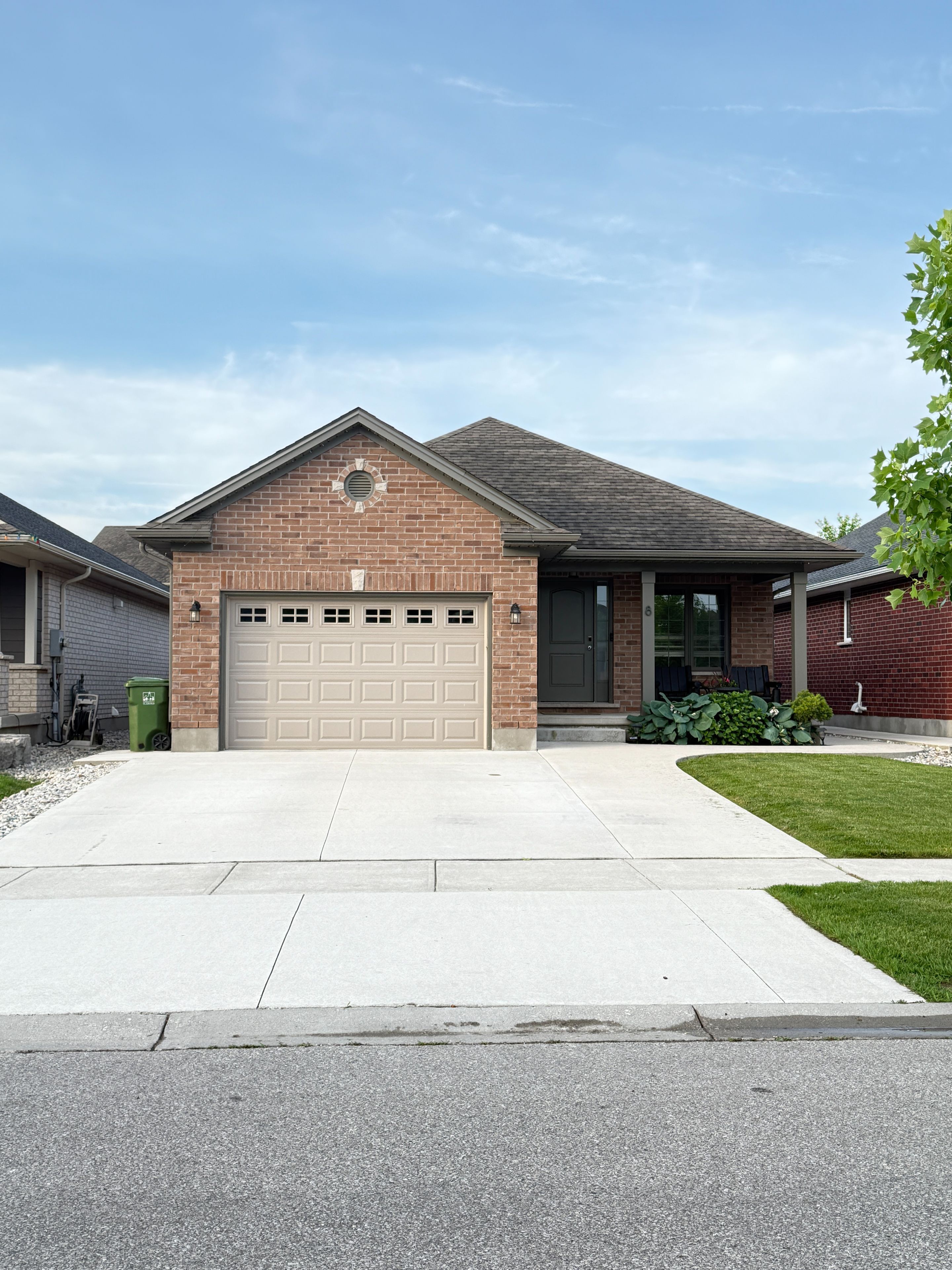 Beautiful 4-Bedroom Bungalow in Desirable School District. Impeccably maintained Doug Tarry-built home offering 4 bedrooms and 3 full bathrooms, located in the sought-after Mitchell Hepburn, St. Anne's and St. Joseph's School District. Perfect for families and those seeking a quiet, family-friendly neighborhood. Curb appeal starts with an oversized double-wide concrete driveway (2020) and low-maintenance river rock landscaping. A concrete pathway leads to a fully fenced backyard ideal for those looking for minimal outdoor upkeep. Inside, the bright foyer opens into a spacious open-concept living and dining area. The kitchen features a double sink with new faucet (2025), modern countertops, tile backsplash, and updated appliances: Frigidaire Professional Series dishwasher (2024) and Whirlpool fridge with ice maker and water dispenser (2025).Enjoy entertaining on your brand-new PVC deck (Spring 2025) overlooking the private backyard. The main floor includes two bedrooms and two full bathrooms, including a large primary suite with walk-in closet and ensuite. Laundry is conveniently located in the hallway between the bedrooms. The finished lower level offers a generous family room, two more bedrooms with closets, and a third full bathroom. One lower bedroom includes an oversized window for extra natural light. A 1.5-car garage easily fits a full-size SUV with space for storage or workbenches on either side. Move-in ready and ideally located near schools, parks, and all amenities. Don't miss this fantastic opportunity!