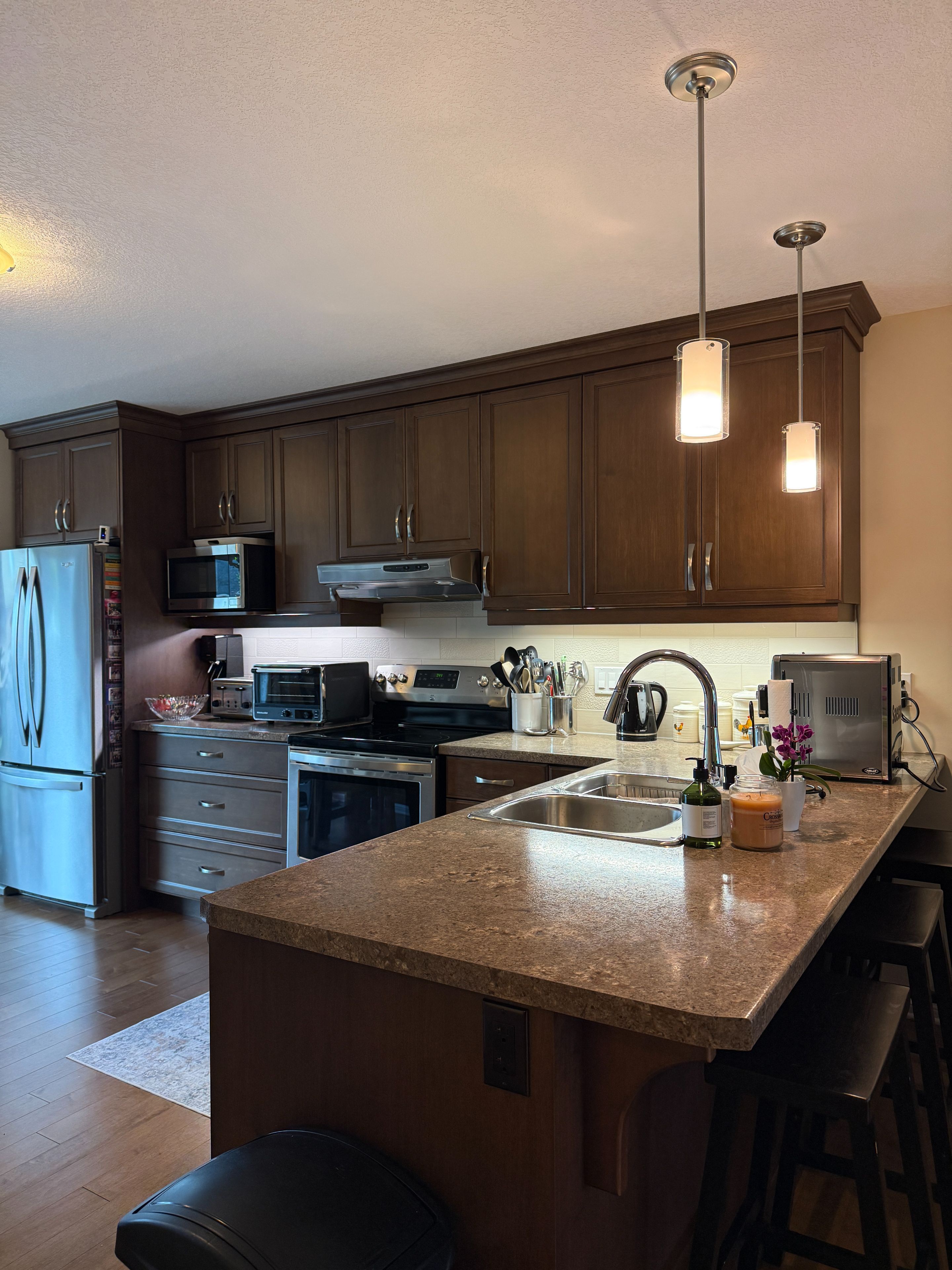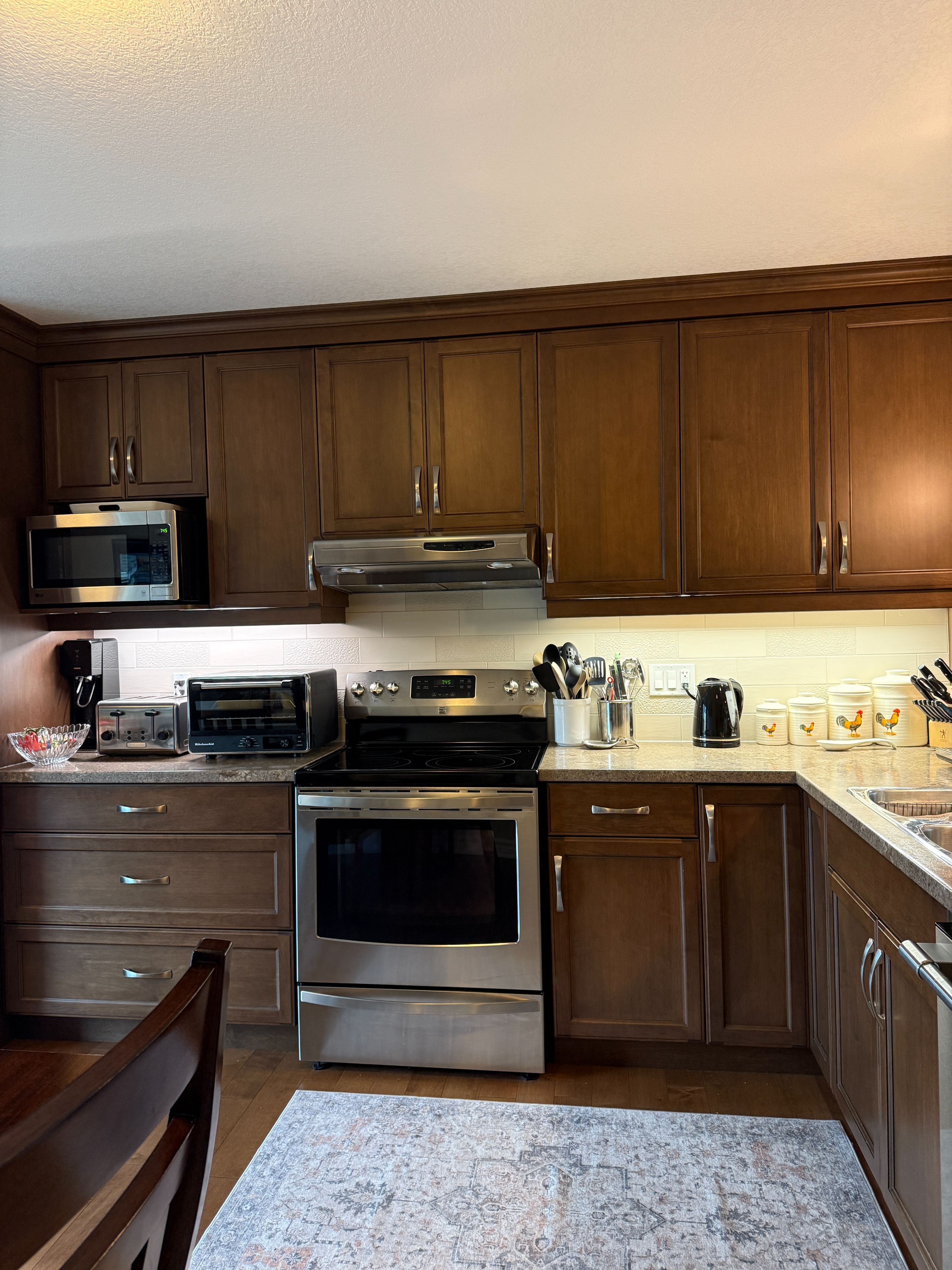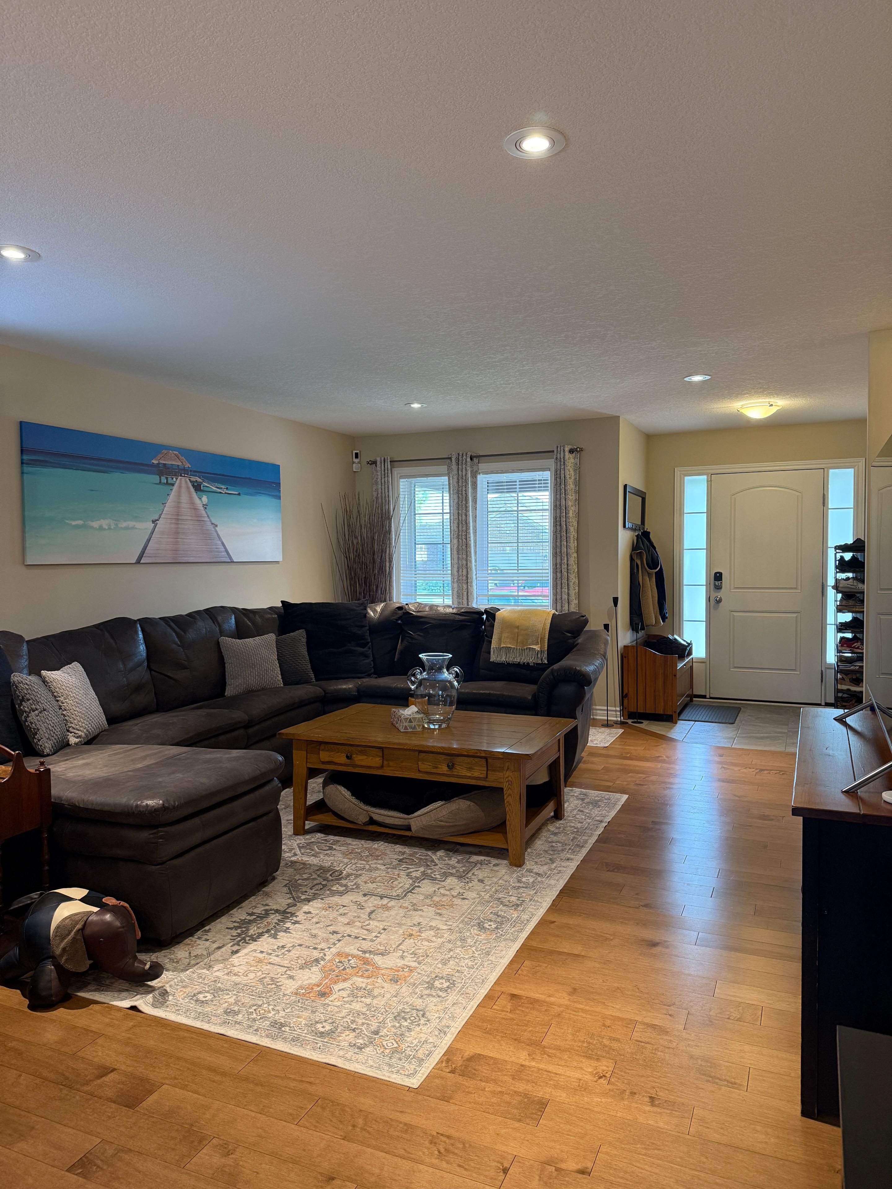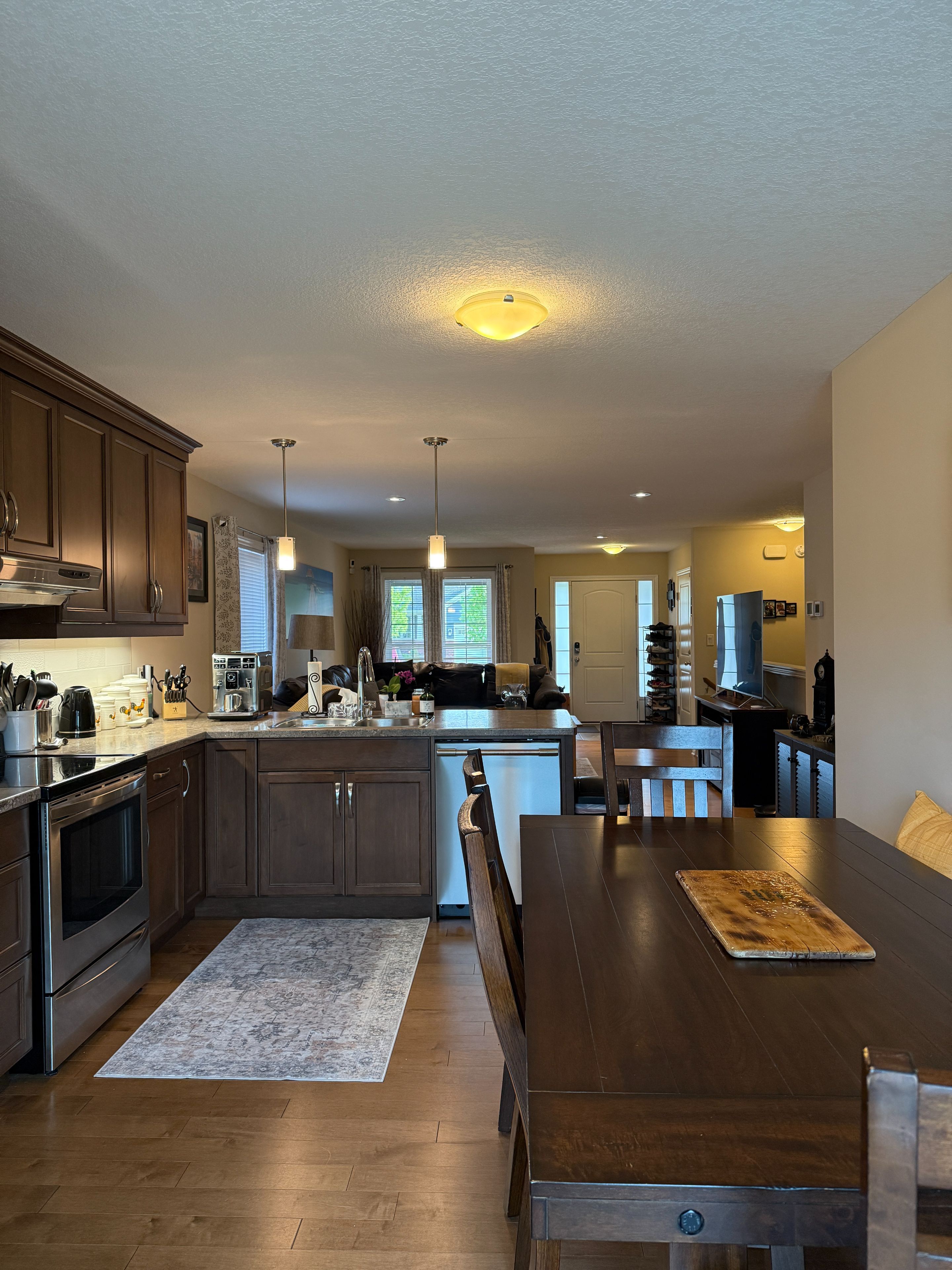 Beautiful 4-Bedroom Bungalow in Desirable School District. Impeccably maintained Doug Tarry-built home offering 4 bedrooms and 3 full bathrooms, located in the sought-after Mitchell Hepburn, St. Anne's and St. Joseph's School District. Perfect for families and those seeking a quiet, family-friendly neighborhood. Curb appeal starts with an oversized double-wide concrete driveway (2020) and low-maintenance river rock landscaping. A concrete pathway leads to a fully fenced backyard ideal for those looking for minimal outdoor upkeep. Inside, the bright foyer opens into a spacious open-concept living and dining area. The kitchen features a double sink with new faucet (2025), modern countertops, tile backsplash, and updated appliances: Frigidaire Professional Series dishwasher (2024) and Whirlpool fridge with ice maker and water dispenser (2025).Enjoy entertaining on your brand-new PVC deck (Spring 2025) overlooking the private backyard. The main floor includes two bedrooms and two full bathrooms, including a large primary suite with walk-in closet and ensuite. Laundry is conveniently located in the hallway between the bedrooms. The finished lower level offers a generous family room, two more bedrooms with closets, and a third full bathroom. One lower bedroom includes an oversized window for extra natural light. A 1.5-car garage easily fits a full-size SUV with space for storage or workbenches on either side. Move-in ready and ideally located near schools, parks, and all amenities. Don't miss this fantastic opportunity!